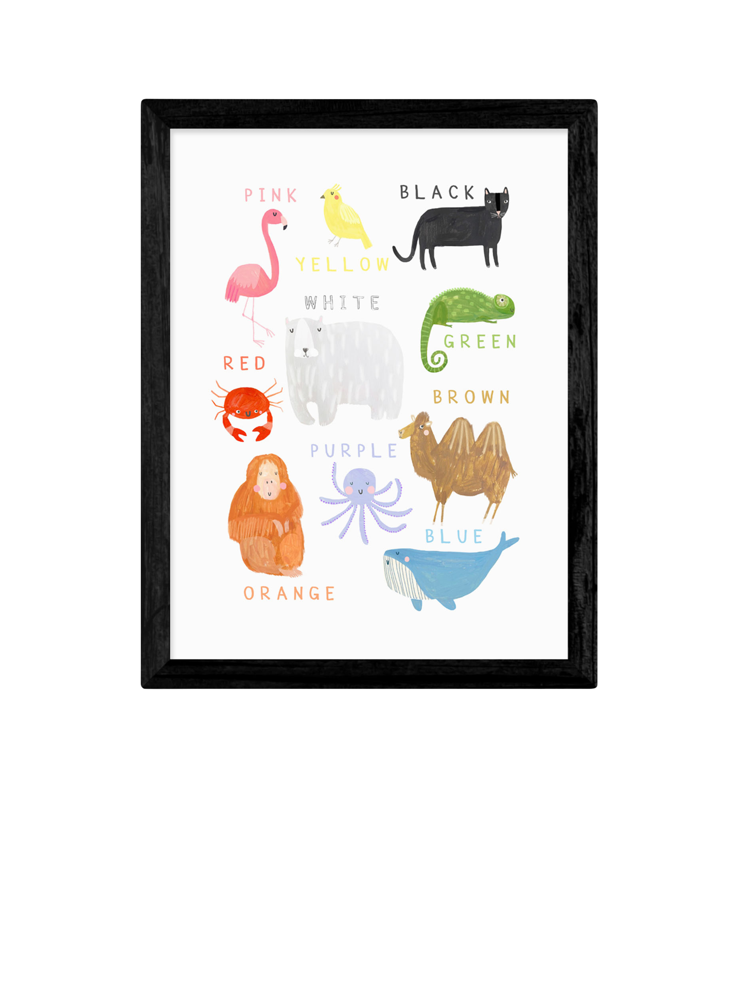Learn to love animals with this cute and colourful illustrative print by Darcie Olley.