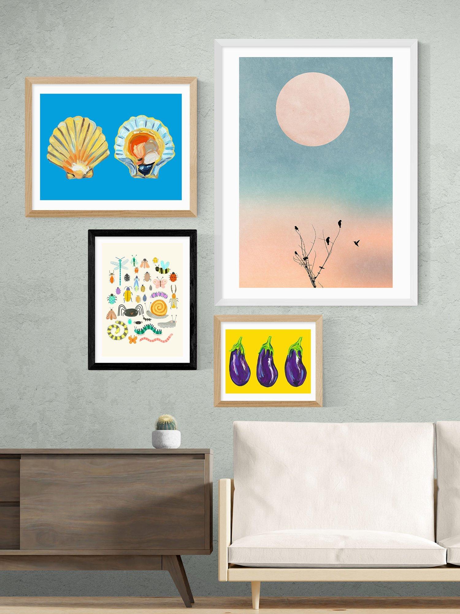 The giclée art printing process and 210gsm acid-free archival paper create an exhibition-quality art print with long-lasting colours that more closely resemble the artist's materials and tones. A digital form of the original work is stored and then printed using a commercial printer and pigment-based inks. The print is presented with an acrylic glaze that's optically the same as glass yet lighter in weight, making it easier and safer to hang. Ready to hang on your wall, it's made in the UK and framed in obeche wood in a choice of finishes.