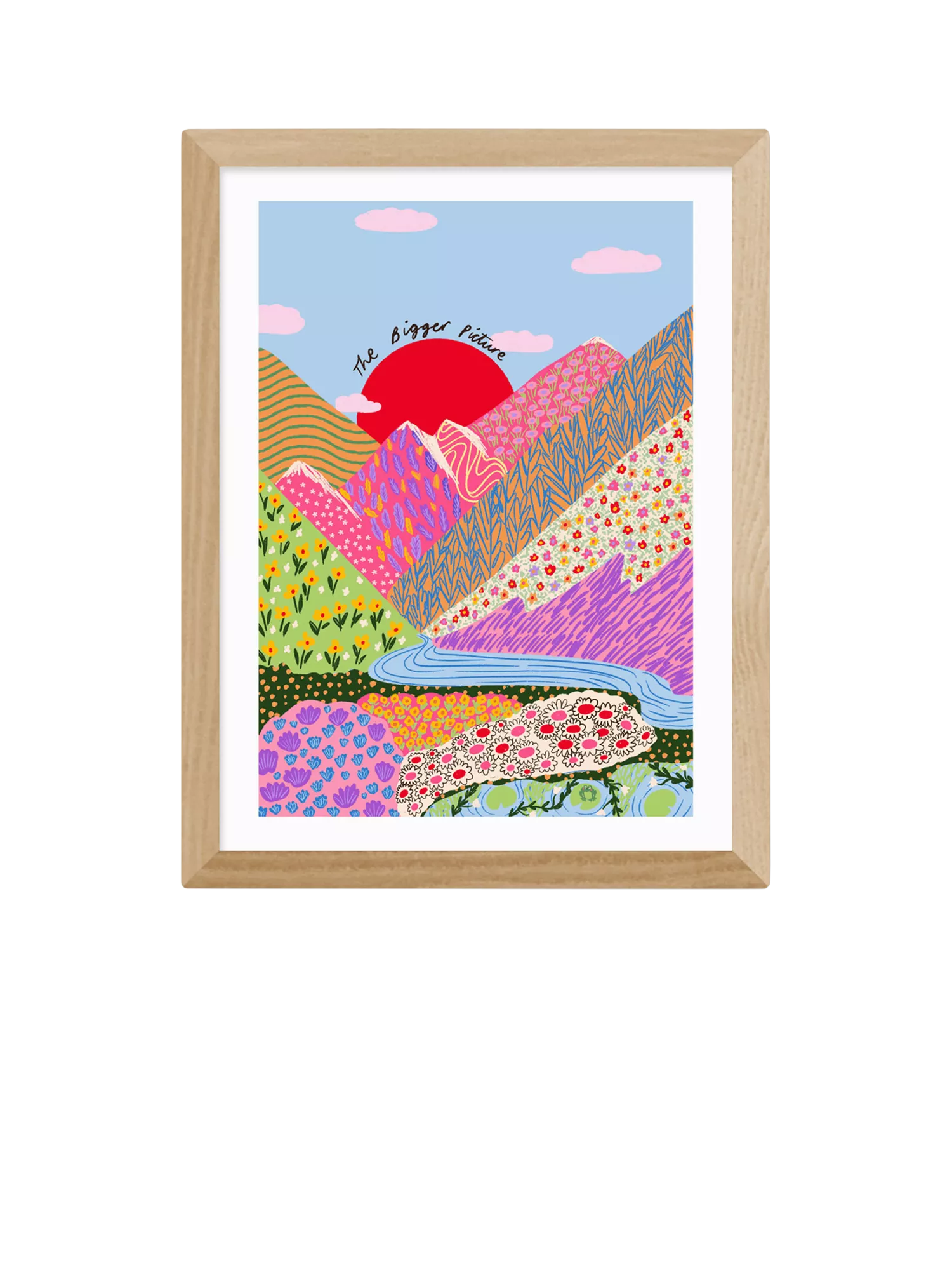 Focus on the bigger picture with this colour-popping graphic landscape print by Emmy Lupin Studio.