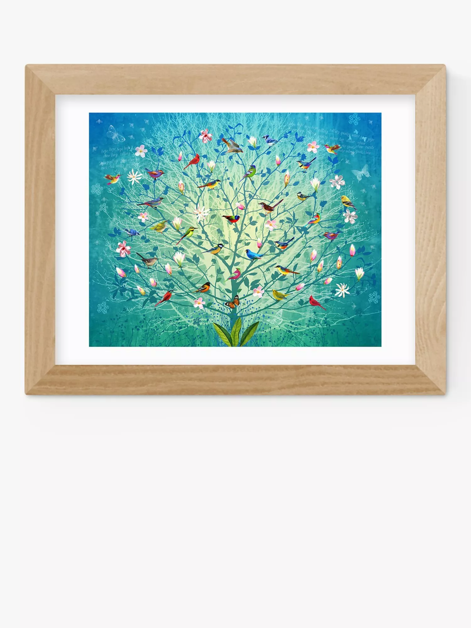 A vibrant print of a tree filled with birds and song, 'The Singing Tree' by Fiona Watson.