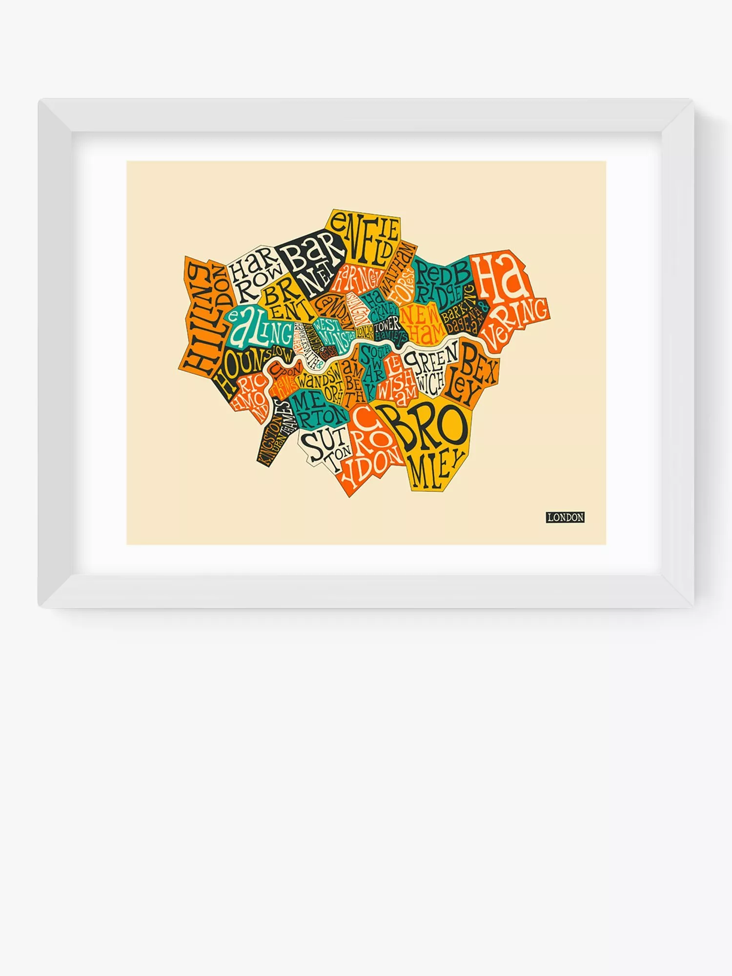 EAST END PRINTSJazzberry Blue 'London Boroughs' Framed Print, White Frame