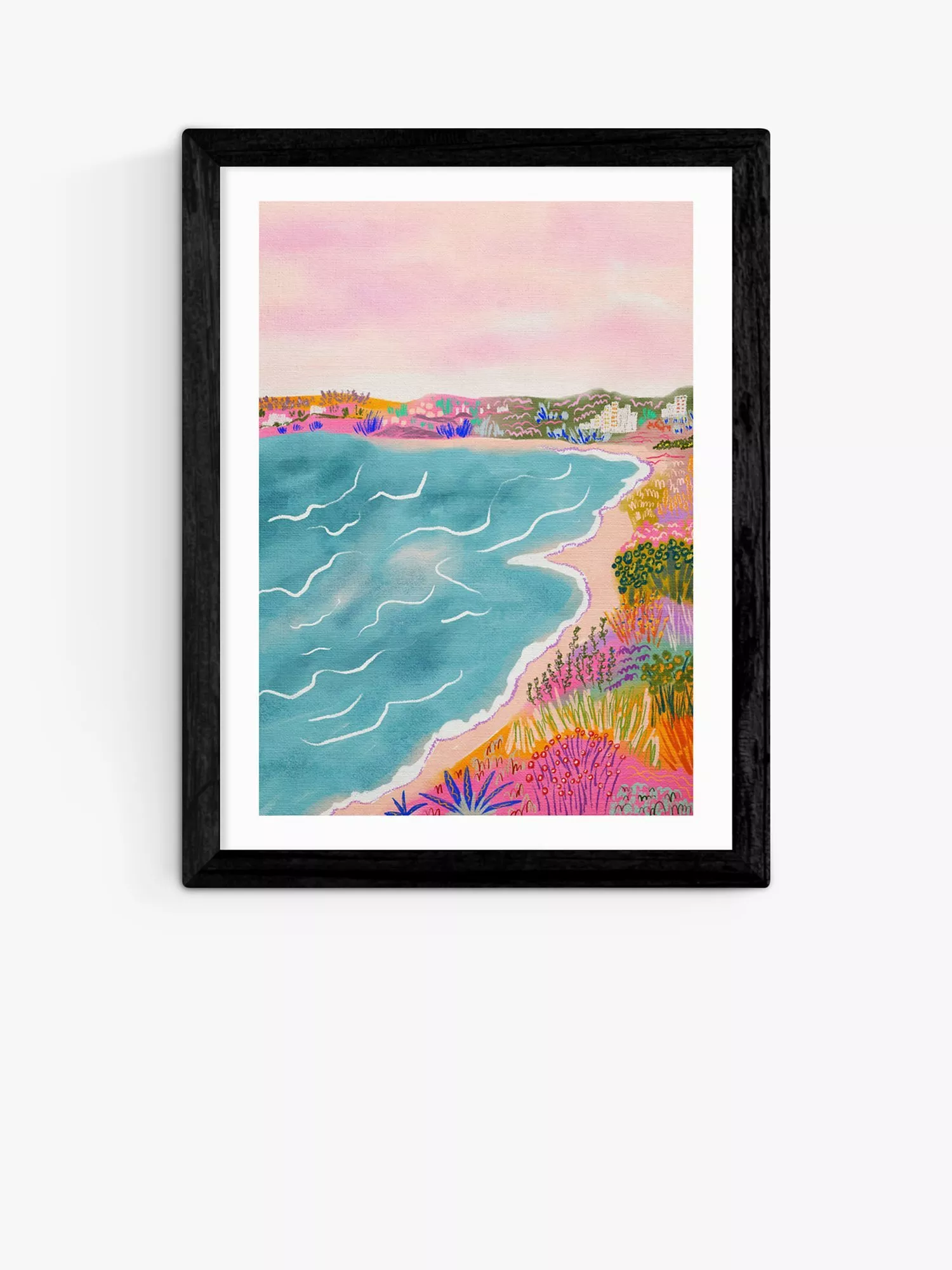 The giclée art printing process and 210gsm acid-free archival paper create an exhibition-quality art print with long-lasting colours that more closely resemble the artist's materials and tones. A digital form of the original work is stored and then printed using a commercial printer and pigment-based inks. Made in the UK, each print is presented with an acrylic glaze that's optically the same as glass yet lighter in weight making it easier and safer to hang. Ready to hang on your wall, it's framed in obeche wood in a choice of finishes.