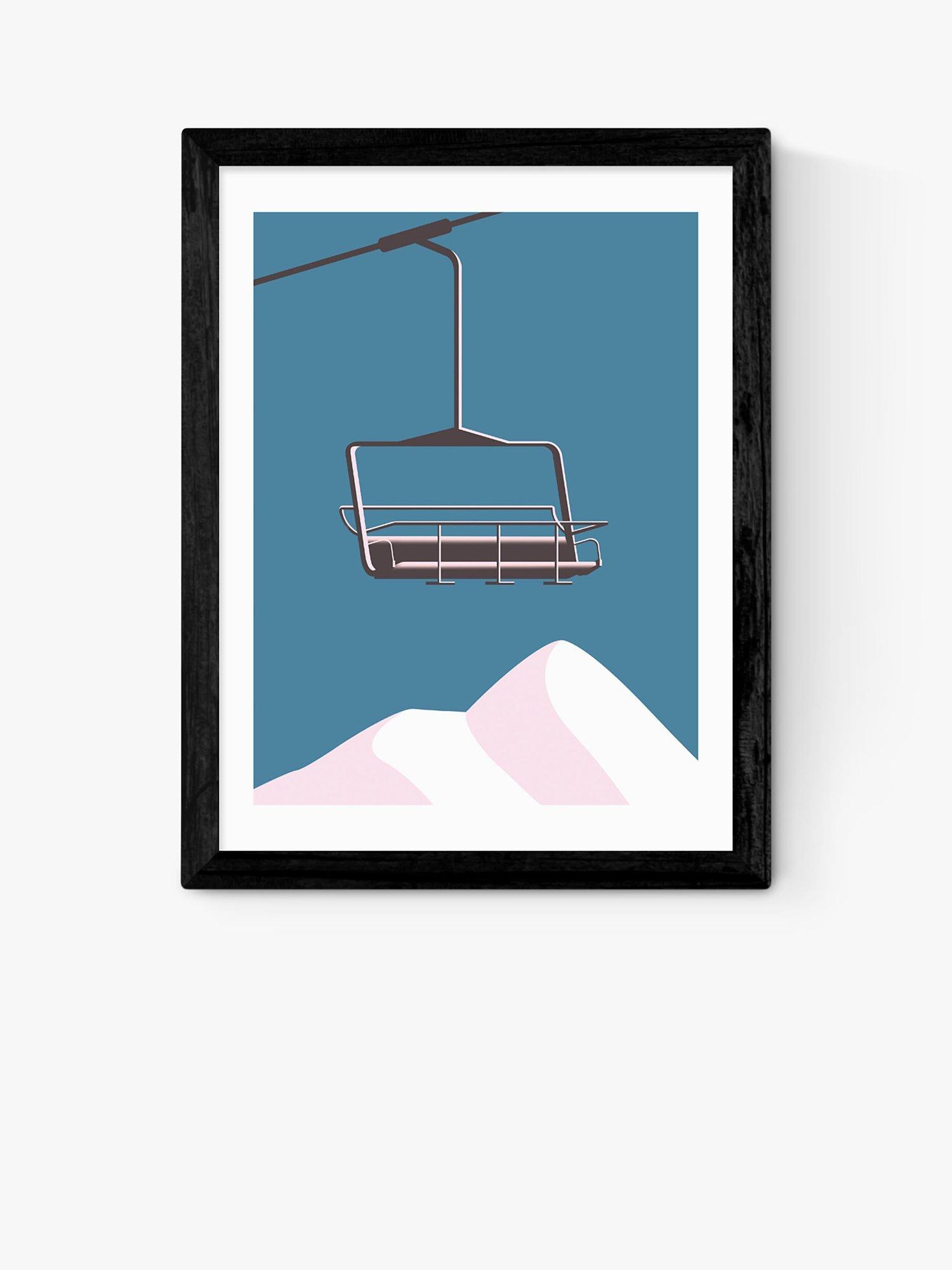 Bringing the ski slopes home, this minimalist Keeler & Sidaway print depicts a chair lift and mountains.