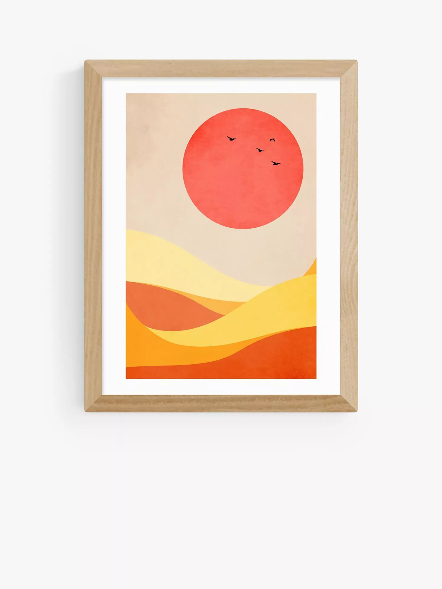 The giclée art printing process and 210gsm acid-free archival paper create an exhibition-quality art print with long-lasting colours that more closely resemble the artist's materials and tones. A digital form of the original work is stored and then printed using a commercial printer and pigment-based inks. The print is presented with an acrylic glaze that's optically the same as glass yet lighter in weight making it easier and safer to hang. Ready to hang on your wall, it's framed in obeche wood in a choice of finishes.