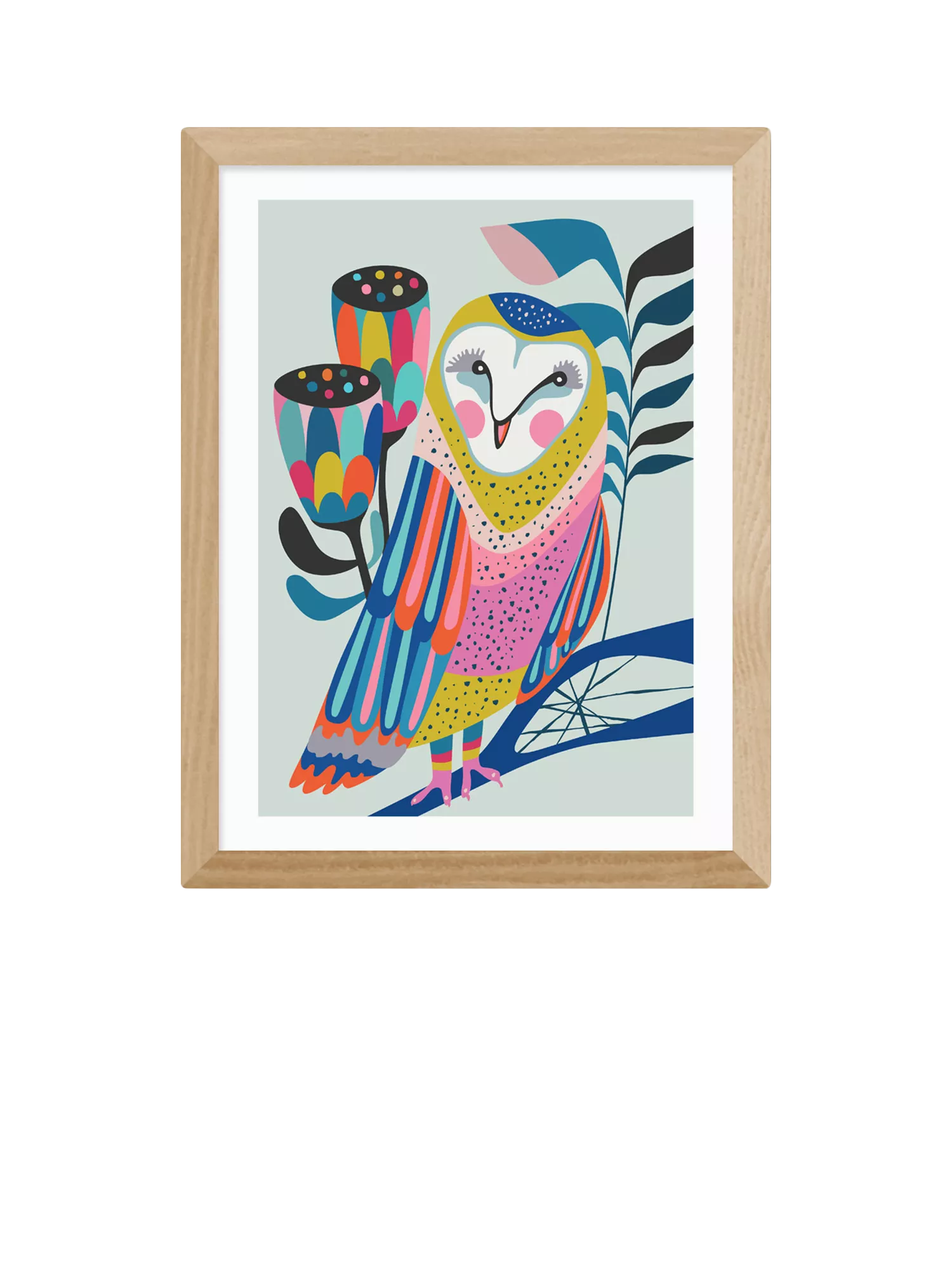 Fall in love with the colourful majesty of Rachel Lee's 'Owl' print, perfect for your living room, hallway or bedroom space.