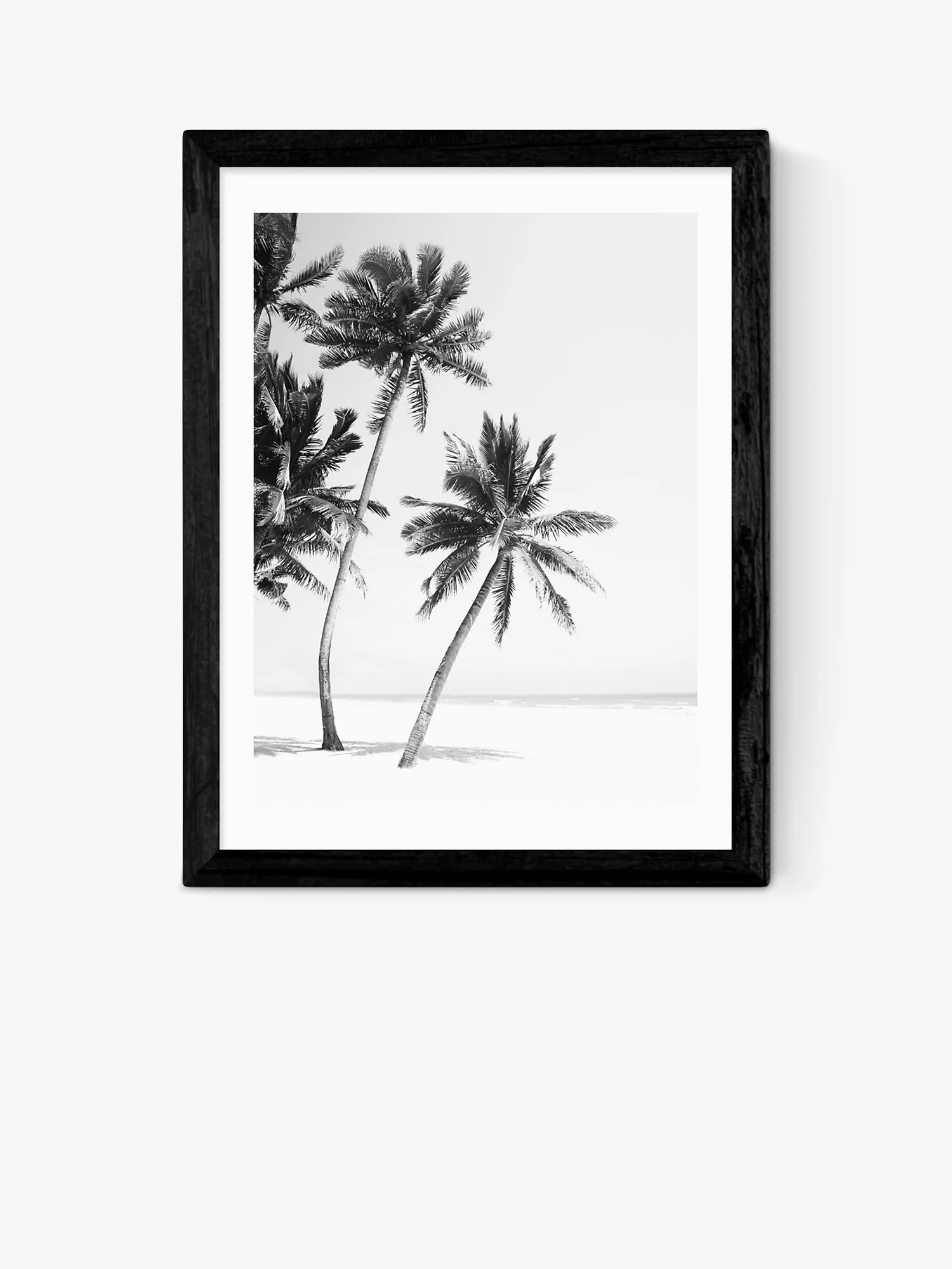 A monochrome photography print of palm trees on a deserted island beach, by Sisi and Seb.