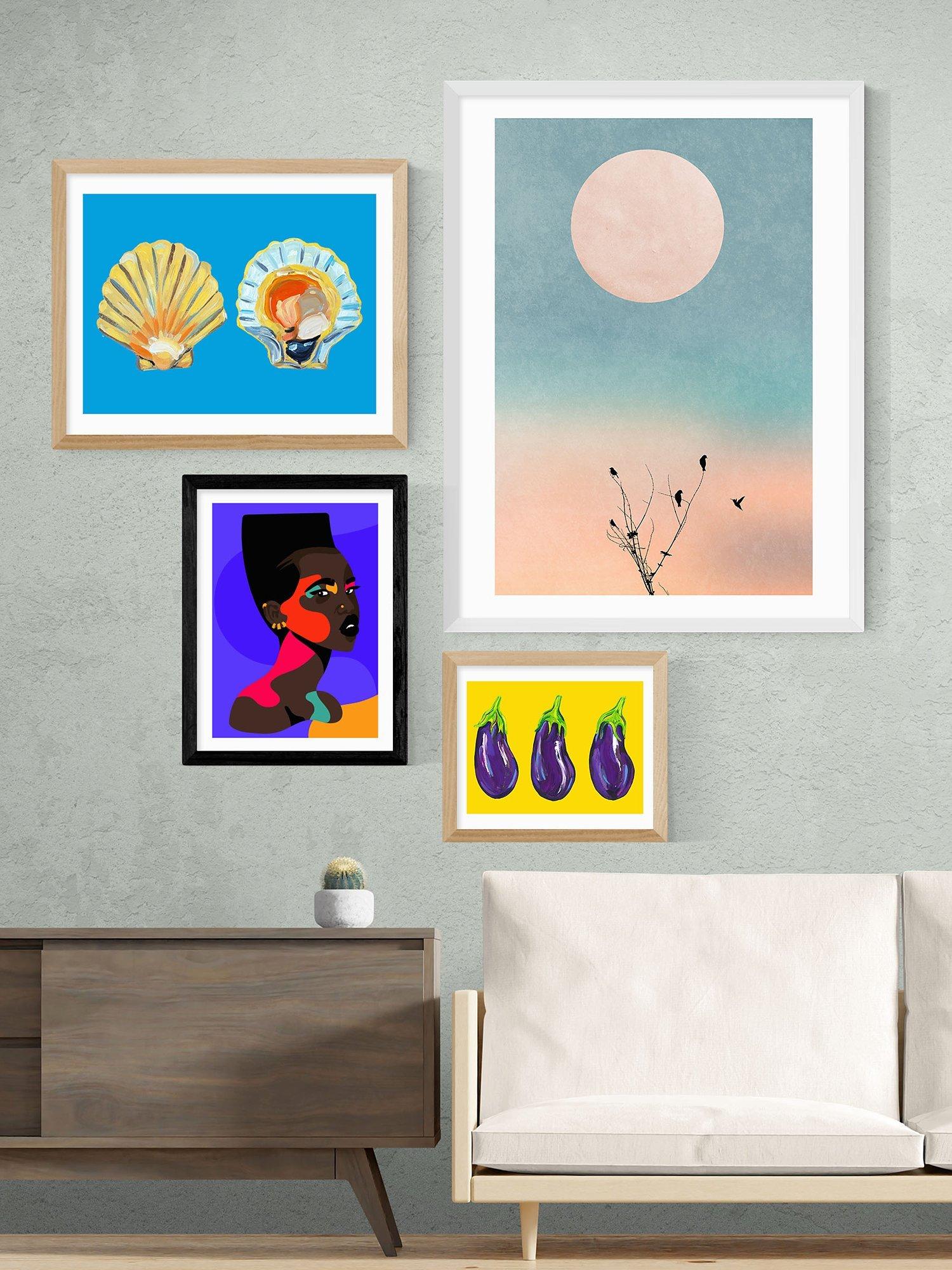 The giclée art printing process and 210gsm acid-free archival paper create an exhibition-quality art print with long-lasting colours that more closely resemble the artist's materials and tones. A digital form of the original work is stored and then printed using a commercial printer and pigment-based inks. The print is presented with an acrylic glaze that's optically the same as glass yet lighter in weight making it easier and safer to hang. Ready to hang on your wall, it's framed in obeche wood in a choice of finishes.