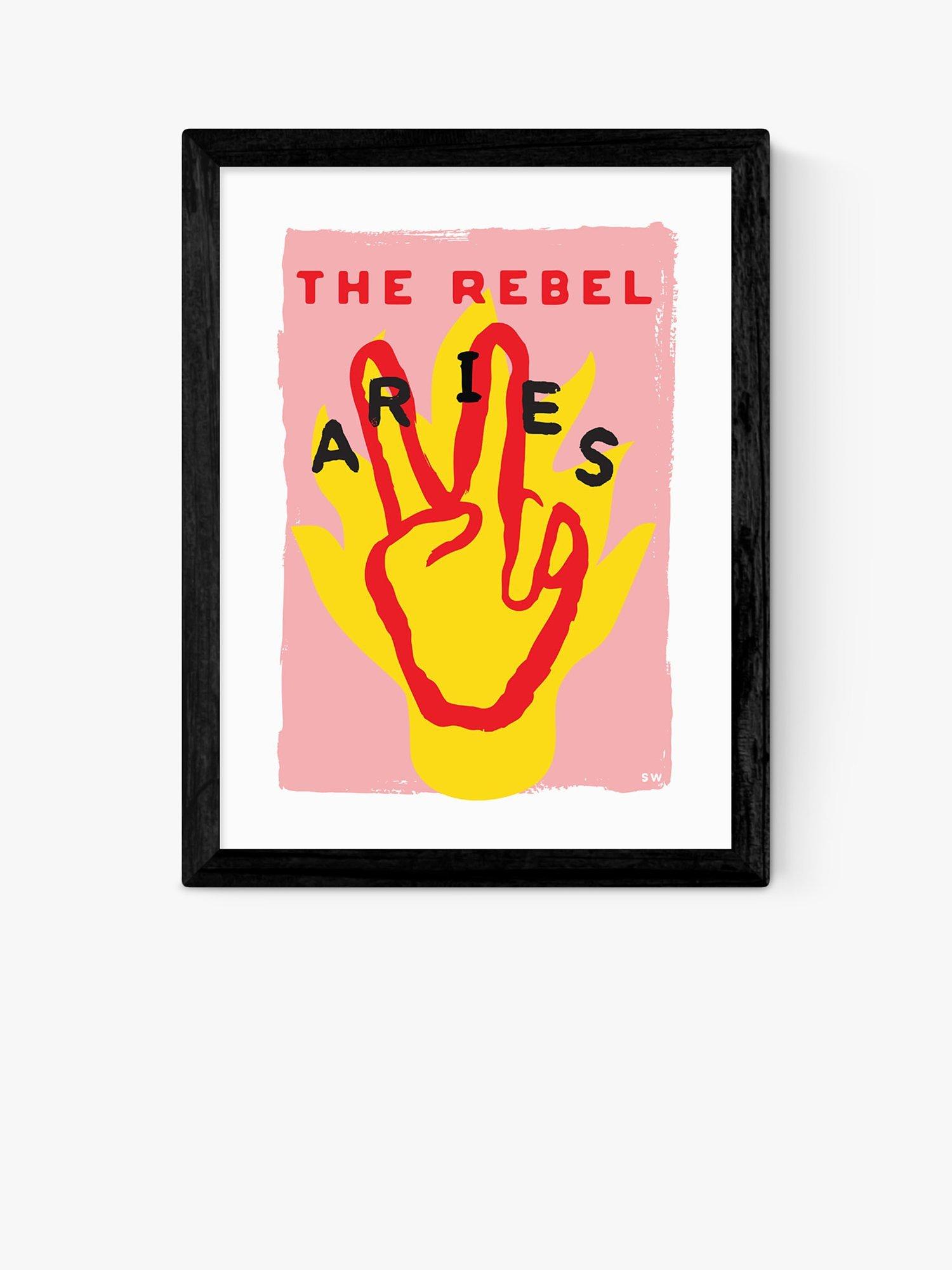 Part of an astrology series by artist Sophie Ward, this print depicts Aries as The Rebel, in bold colours.