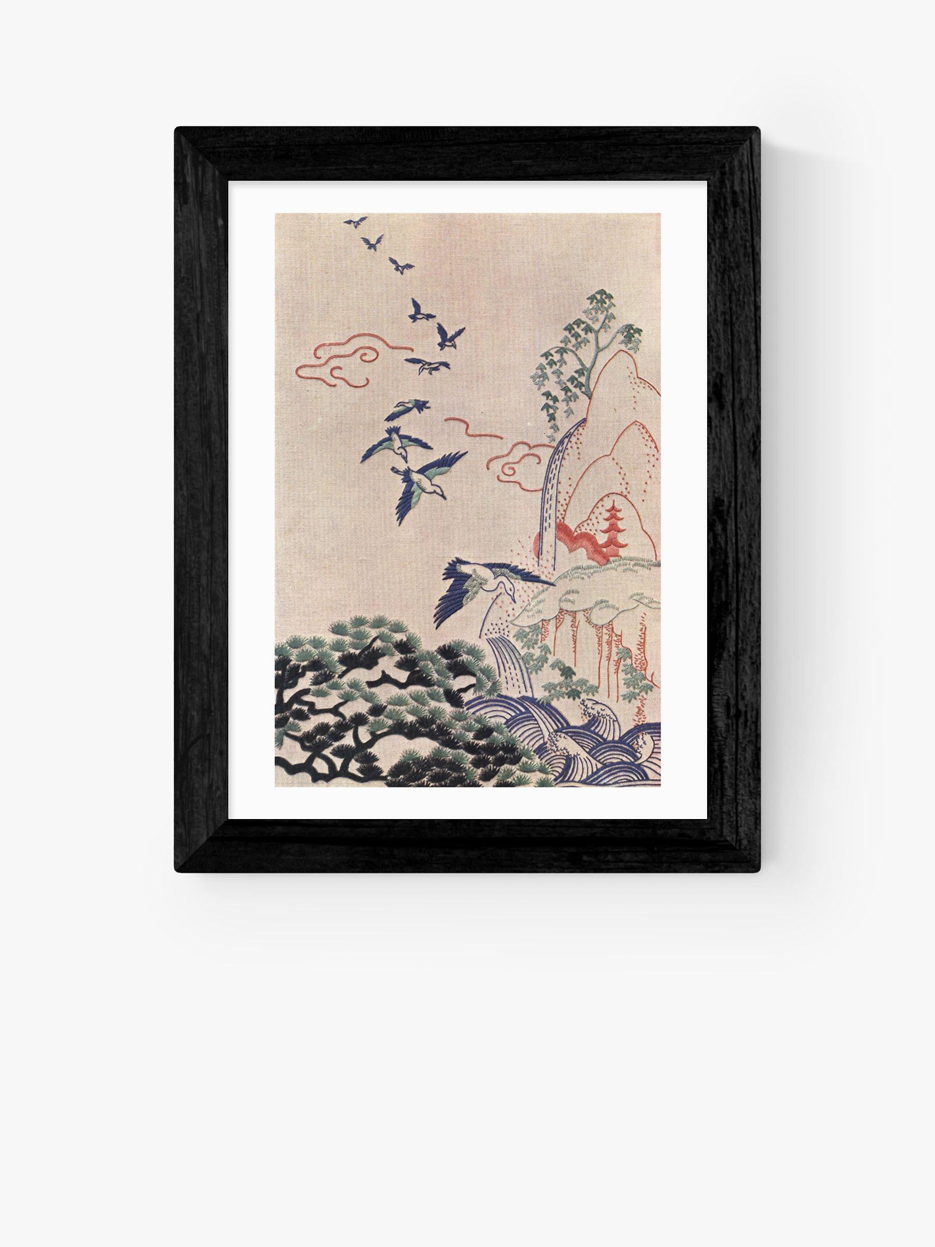 A peaceful stitch-craft landscape inspired by nineteenth-century Japanese artist Andō Hiroshige, from the Vintage by Hemingway archives.