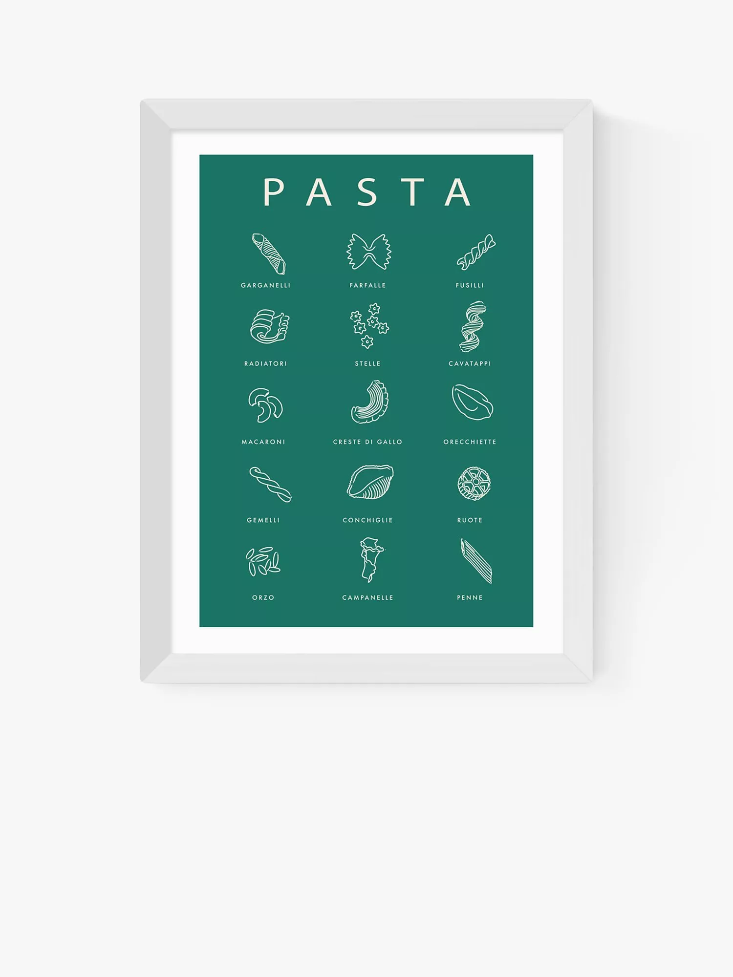 Do you know your farfalle from your fusilli? This typographic print 'Pasta Guide' from Violet Studio gives you the answers in visual form, an homage to pasta in all its tasty shapes, for the kitchen wall.