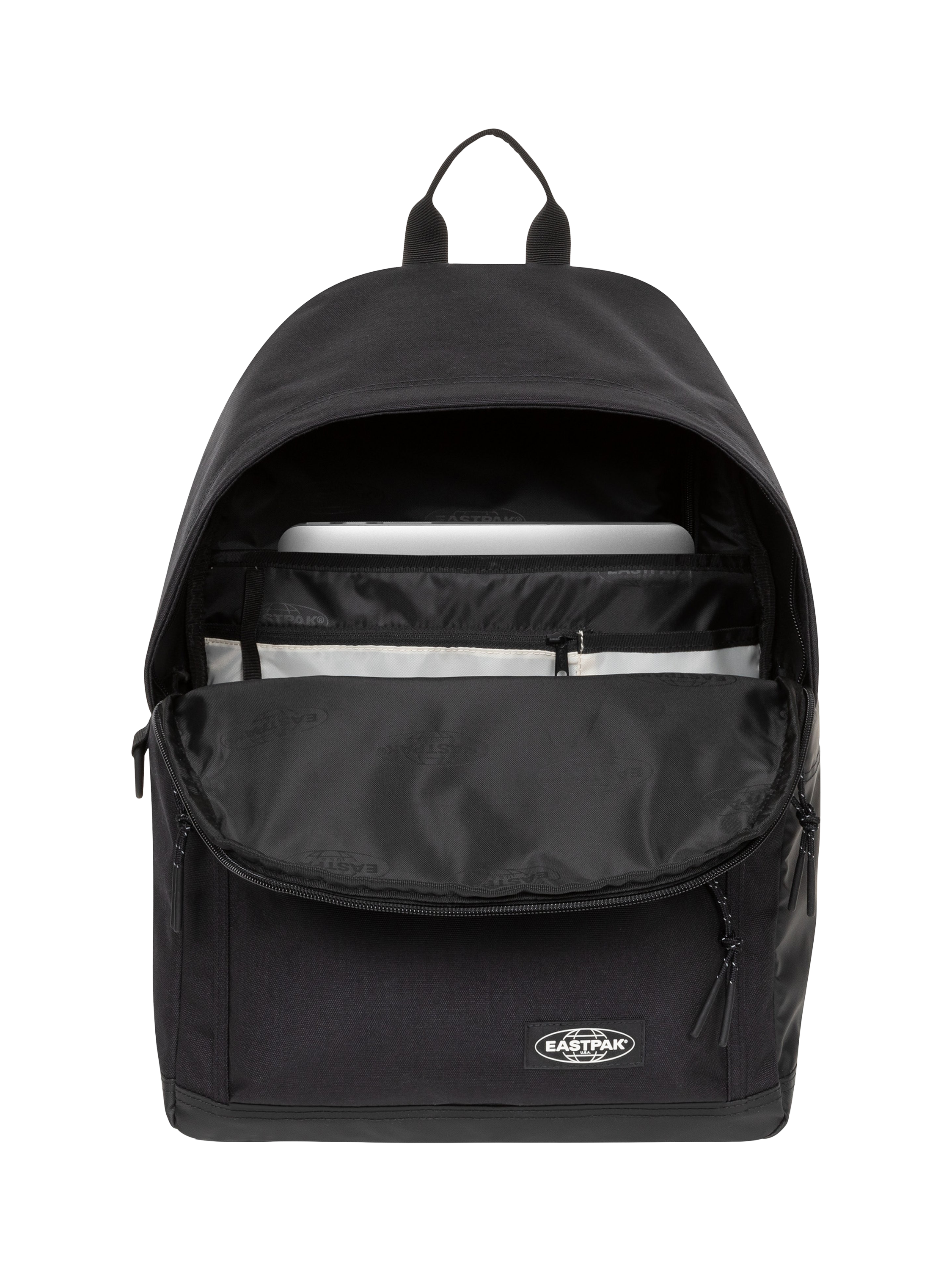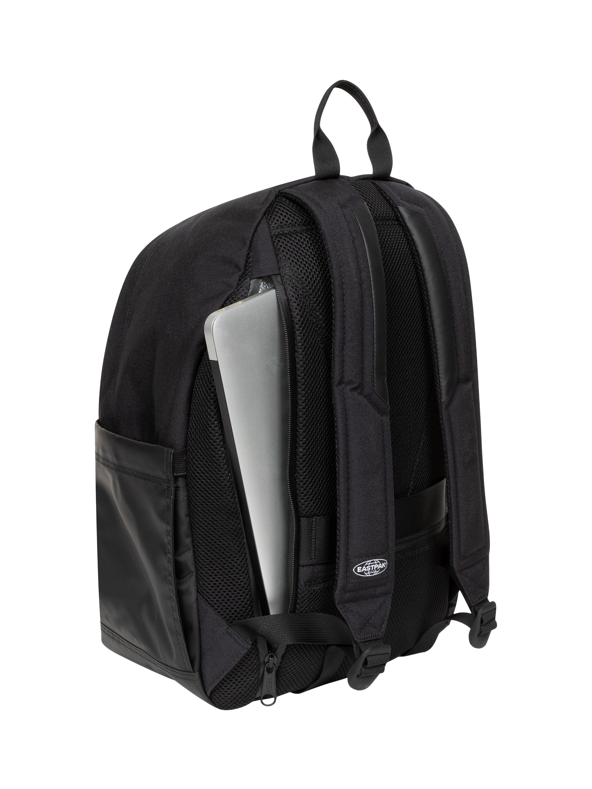The classic Eastpak backpack is reimagined with a built-in padded laptop sleeve best suited for 14" devices, a bottle holder, and a trolley loop for attaching it to your luggage. It's crafted from top-coated nylon with matching water-repellent zips, coated pullers, and rubberised buckles. The main compartment comes complete with zip-fastening front, back and internal pockets.