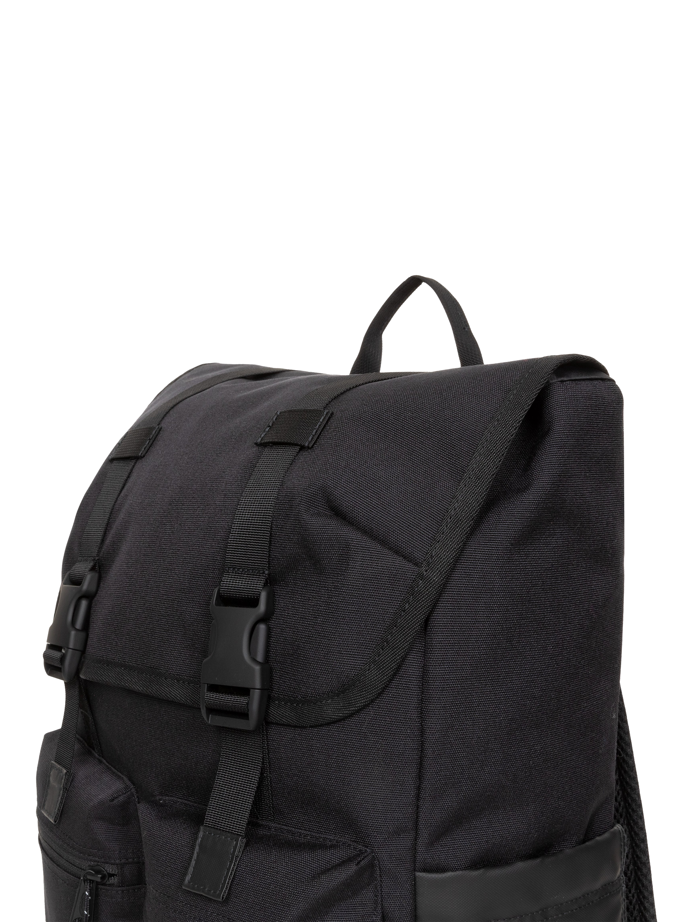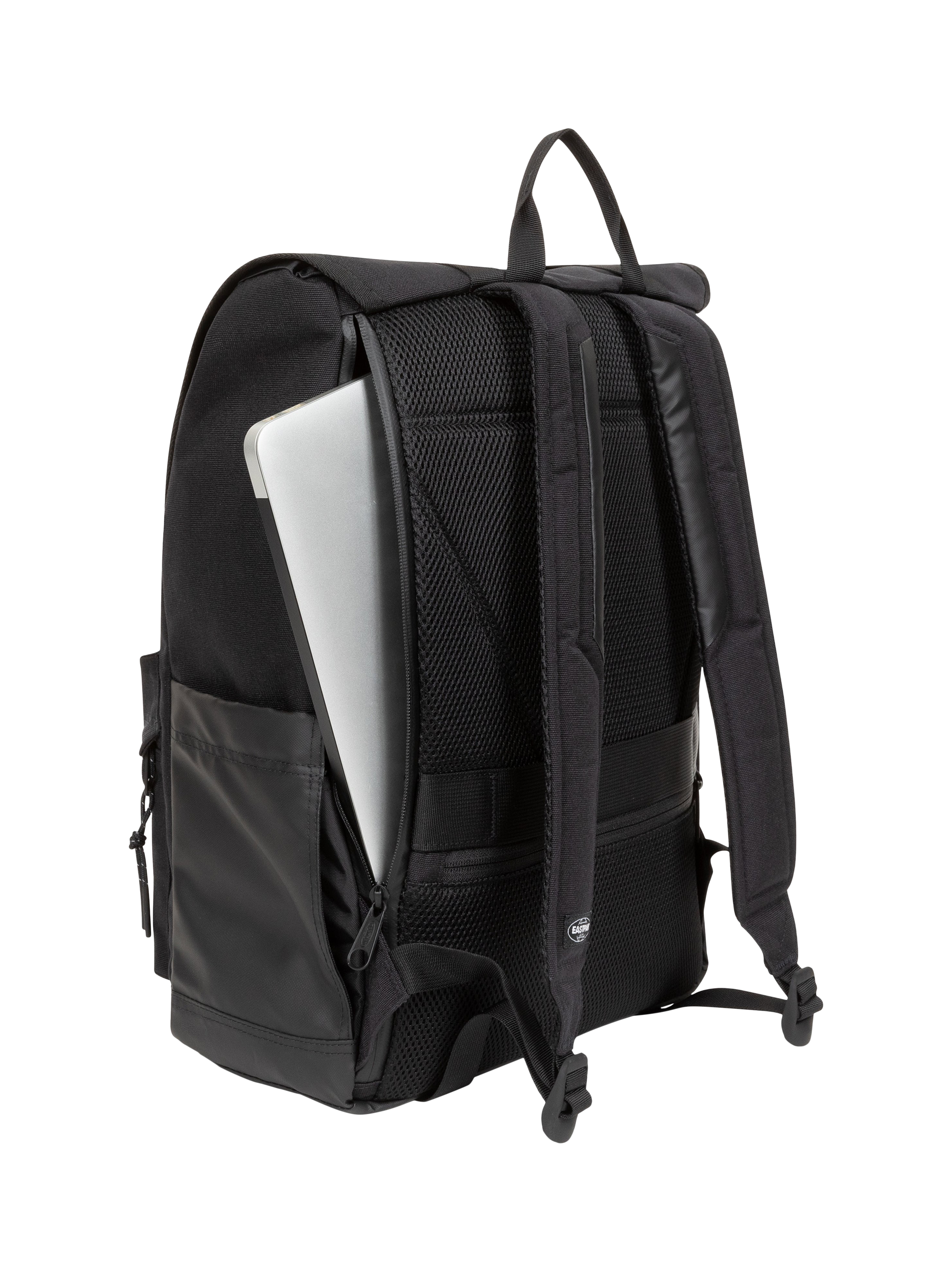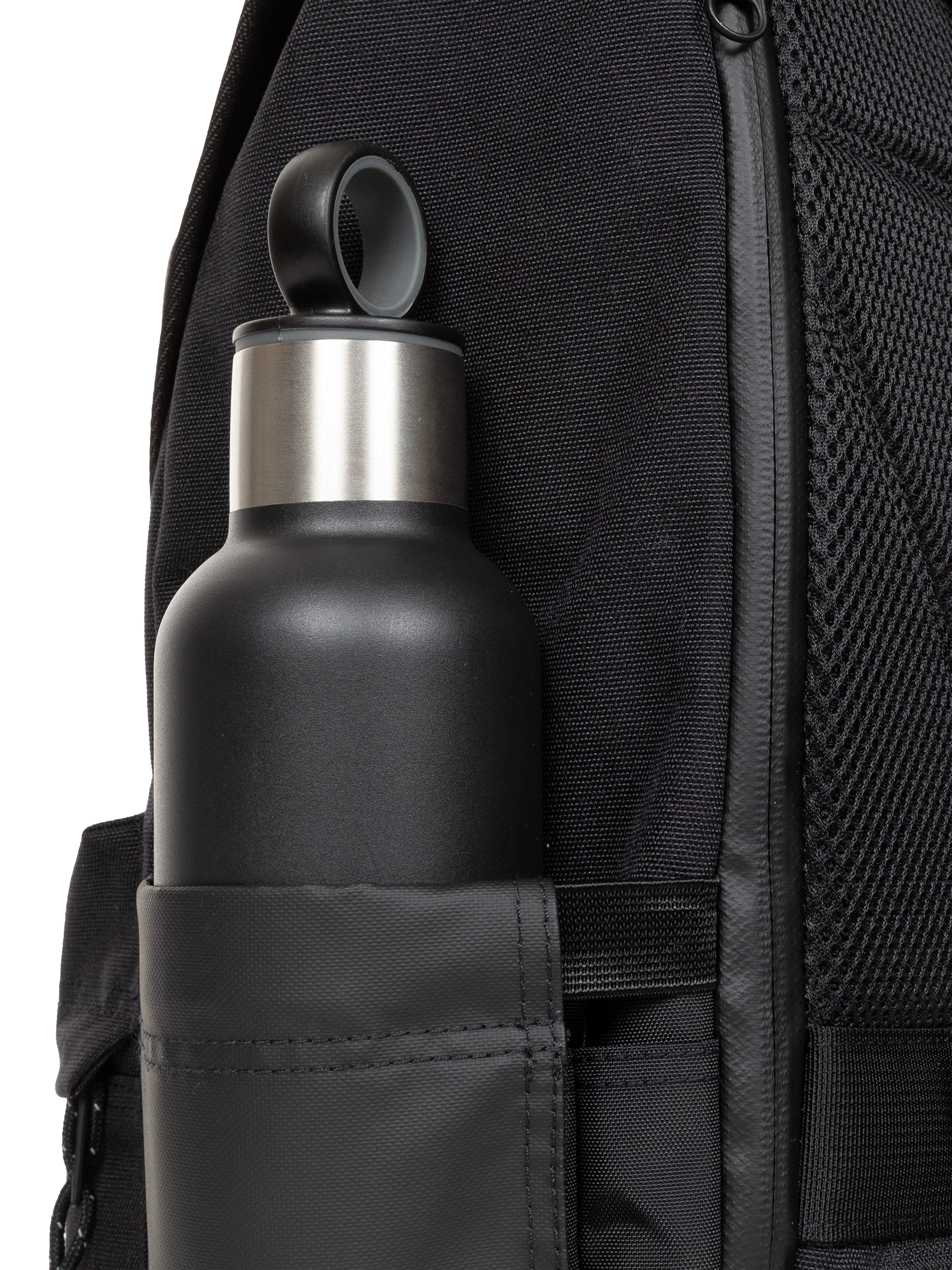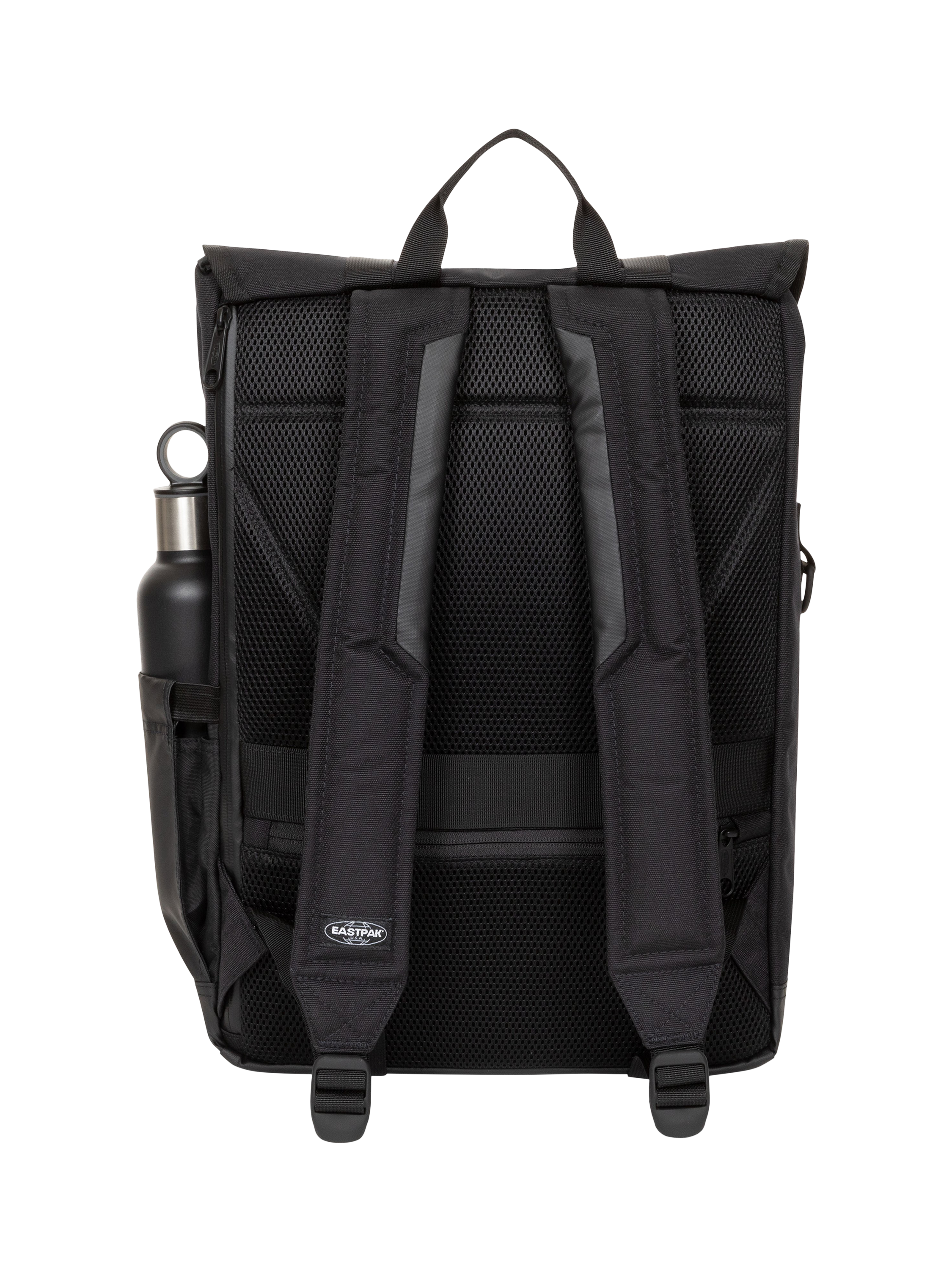 The top-loading backpack is reimagined with a built-in padded laptop sleeve for 16" devices, a bottle holder, an organizer, a security pocket, and a trolley loop for attaching it to your luggage. This monochrome day pack with padded back panel and adjustable shoulder straps is crafted from top-coated nylon with matching water-repellent zips, coated pullers, and rubberised buckles. The main compartment comes complete with two front pockets.