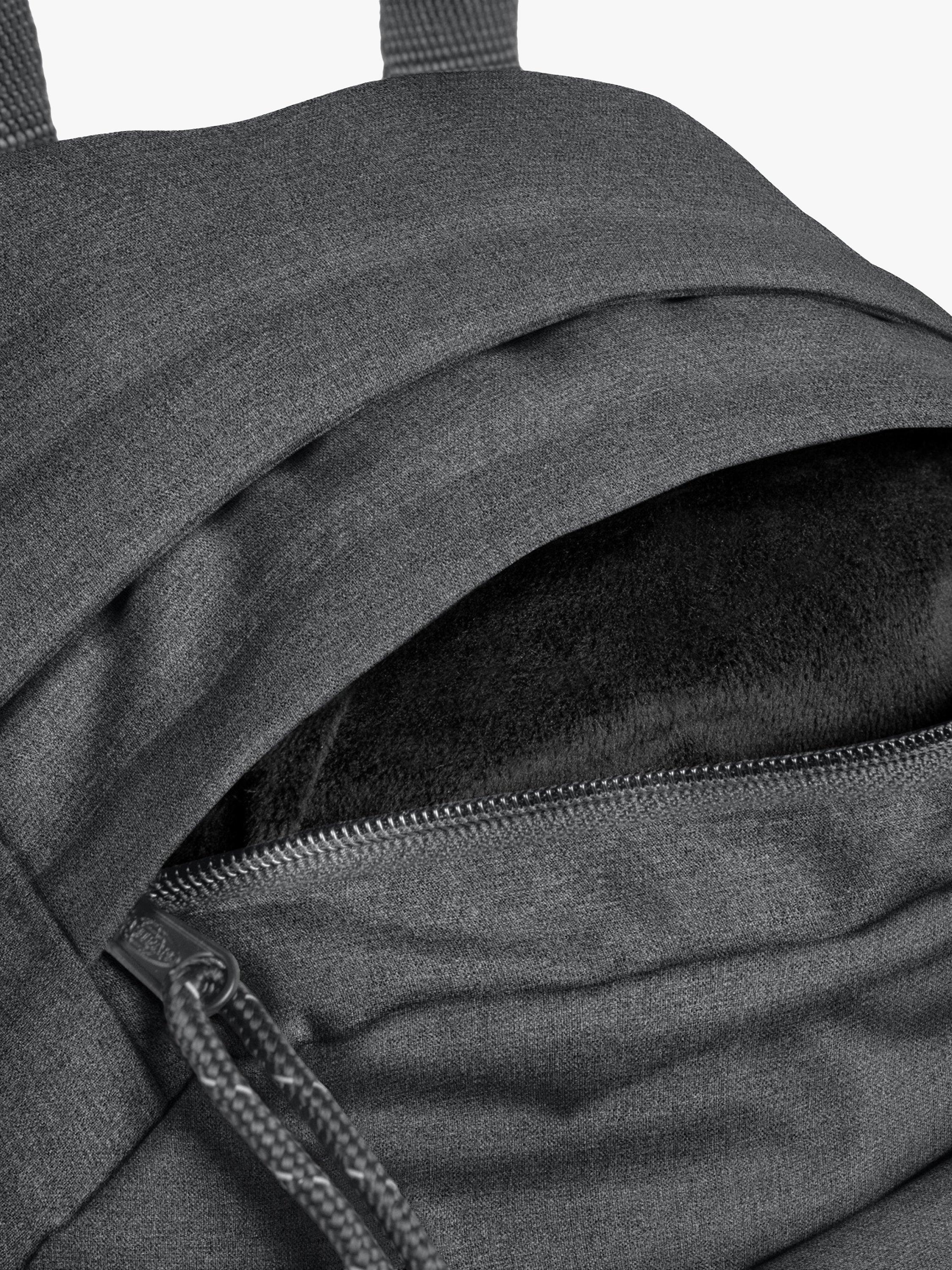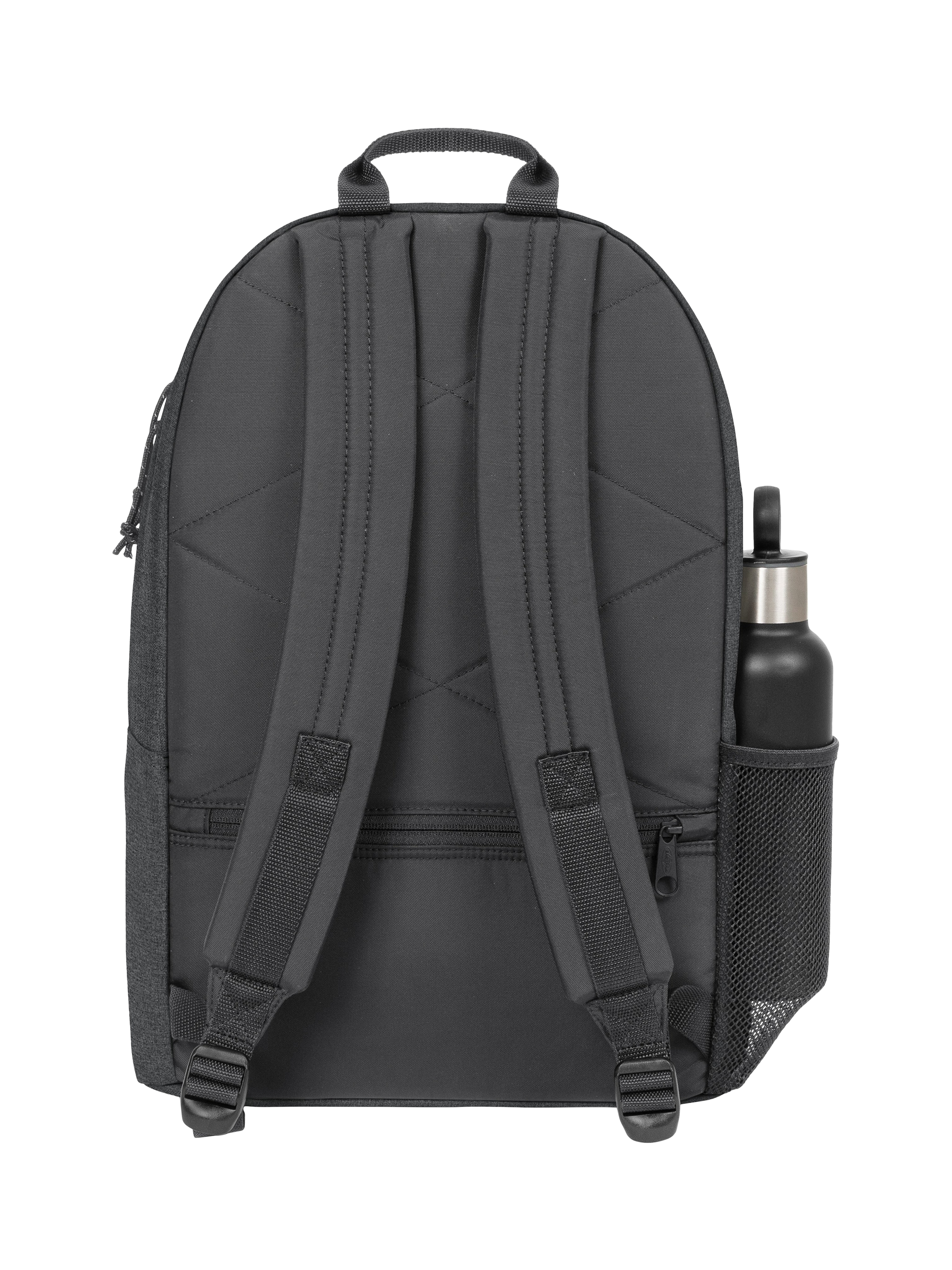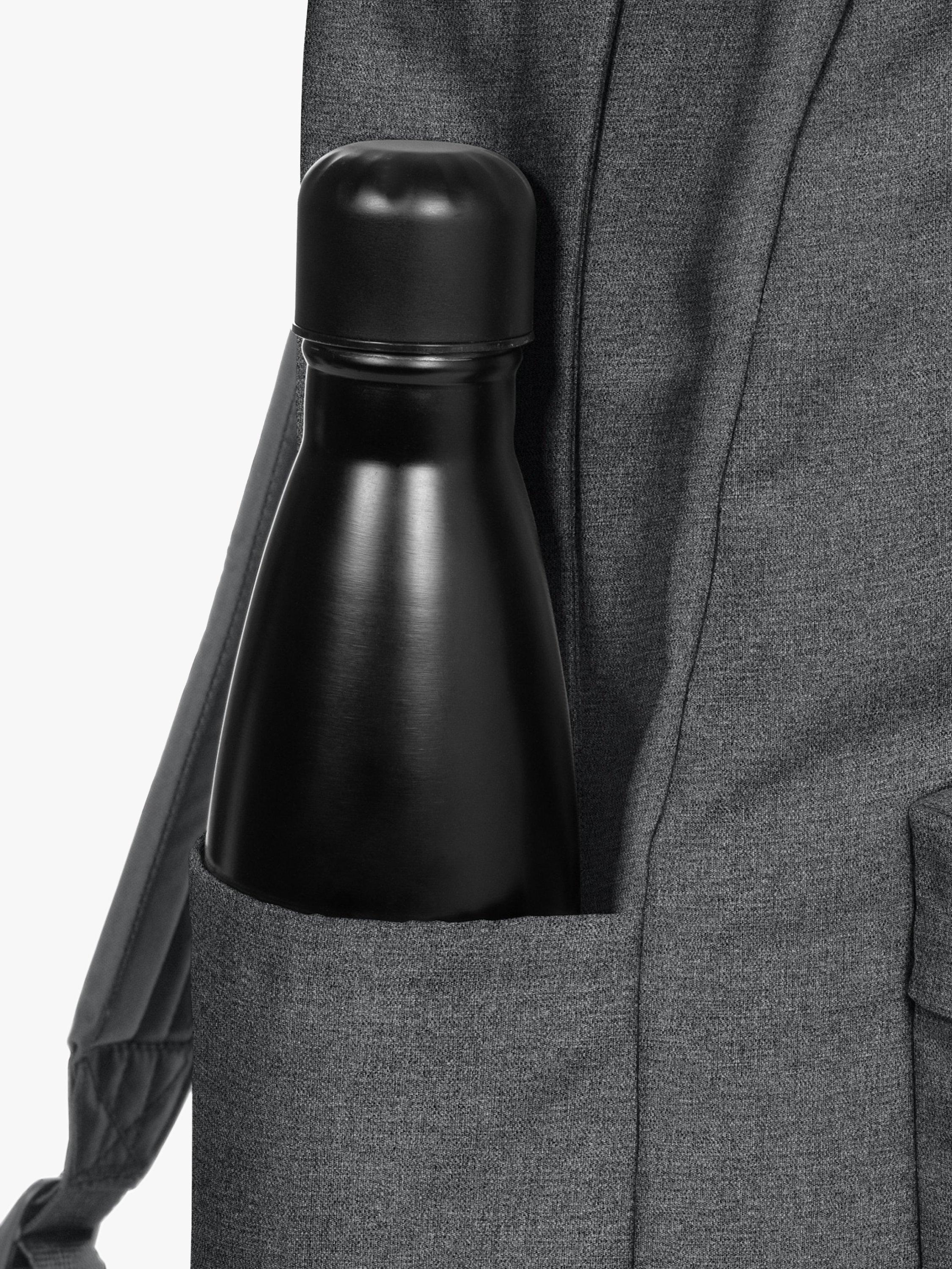 Eastpak's iconic backpack is reimagined as a squared-off shape with two functional front pockets. This monochrome design leaves space for the essentials in the main compartment, padded 13" laptop sleeve, and bottle holder.
