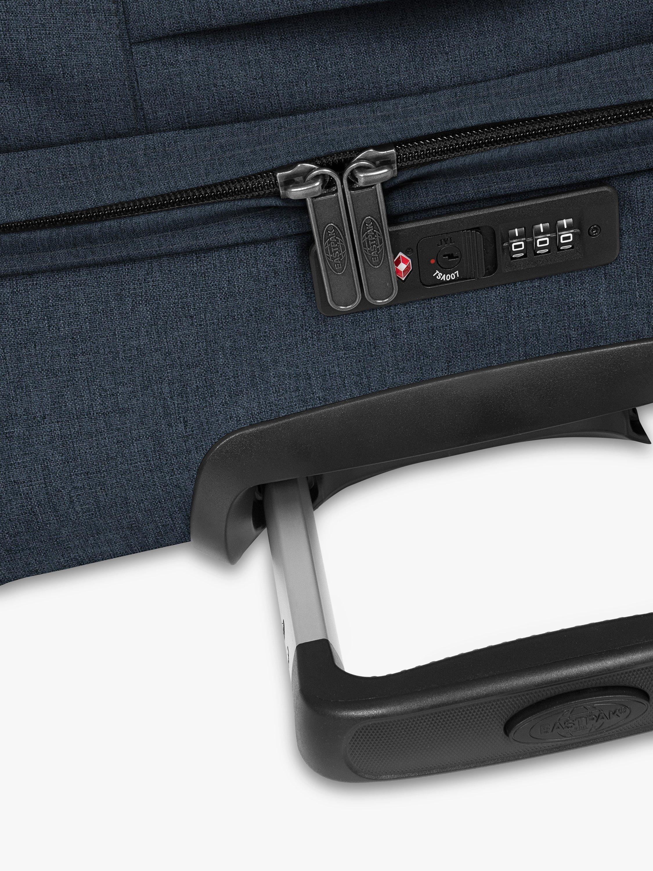 The sleek and smart update of Eastpak's wheeled luggage. Load up the double compartments and secure your belongings with the integrated lock.