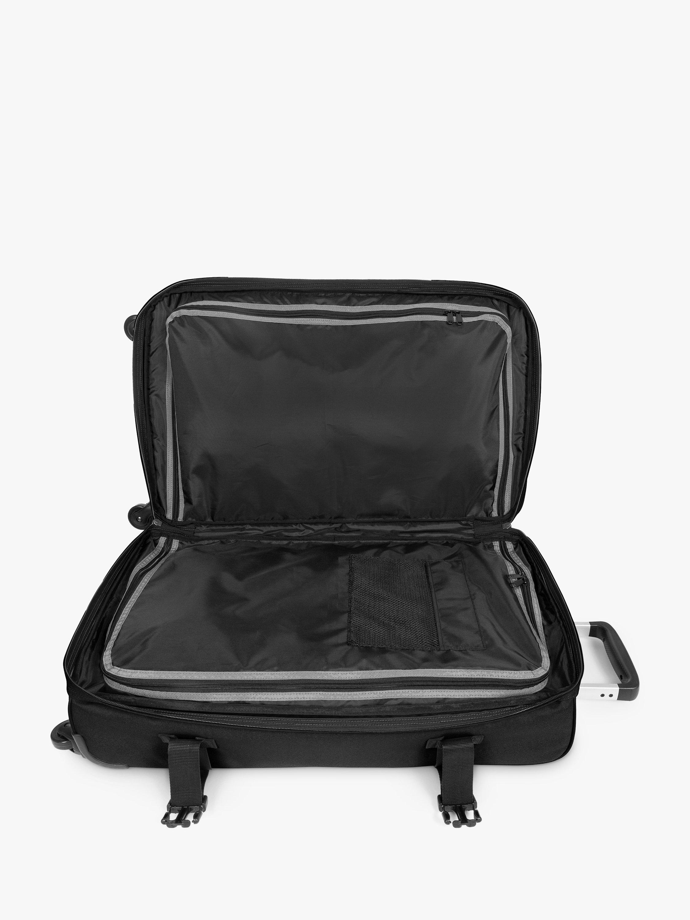 The sleek and smart update of Eastpak's wheeled luggage, this time upgraded with a 4 wheel system for extra comfort. Load up the double compartments and secure your belongings with the integrated lock.
