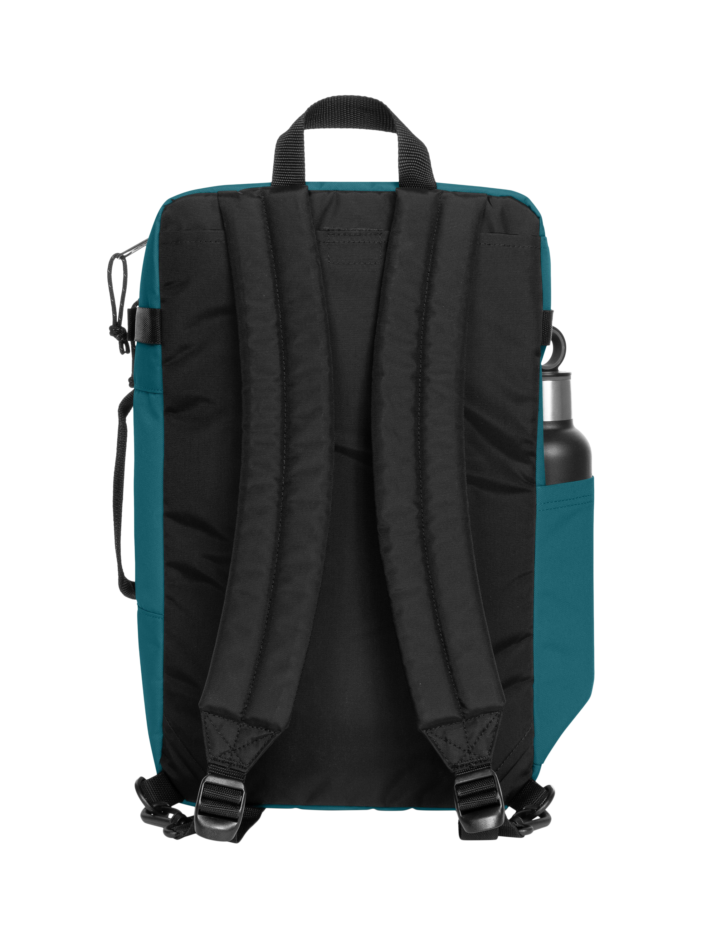 A versatile travel bag features a spacious 16" laptop sleeve, convenient side bottle holder, and practical tuck-away shoulder straps. Our 2-in-1 cabin bag can be carried as a backpack or duffel bag.