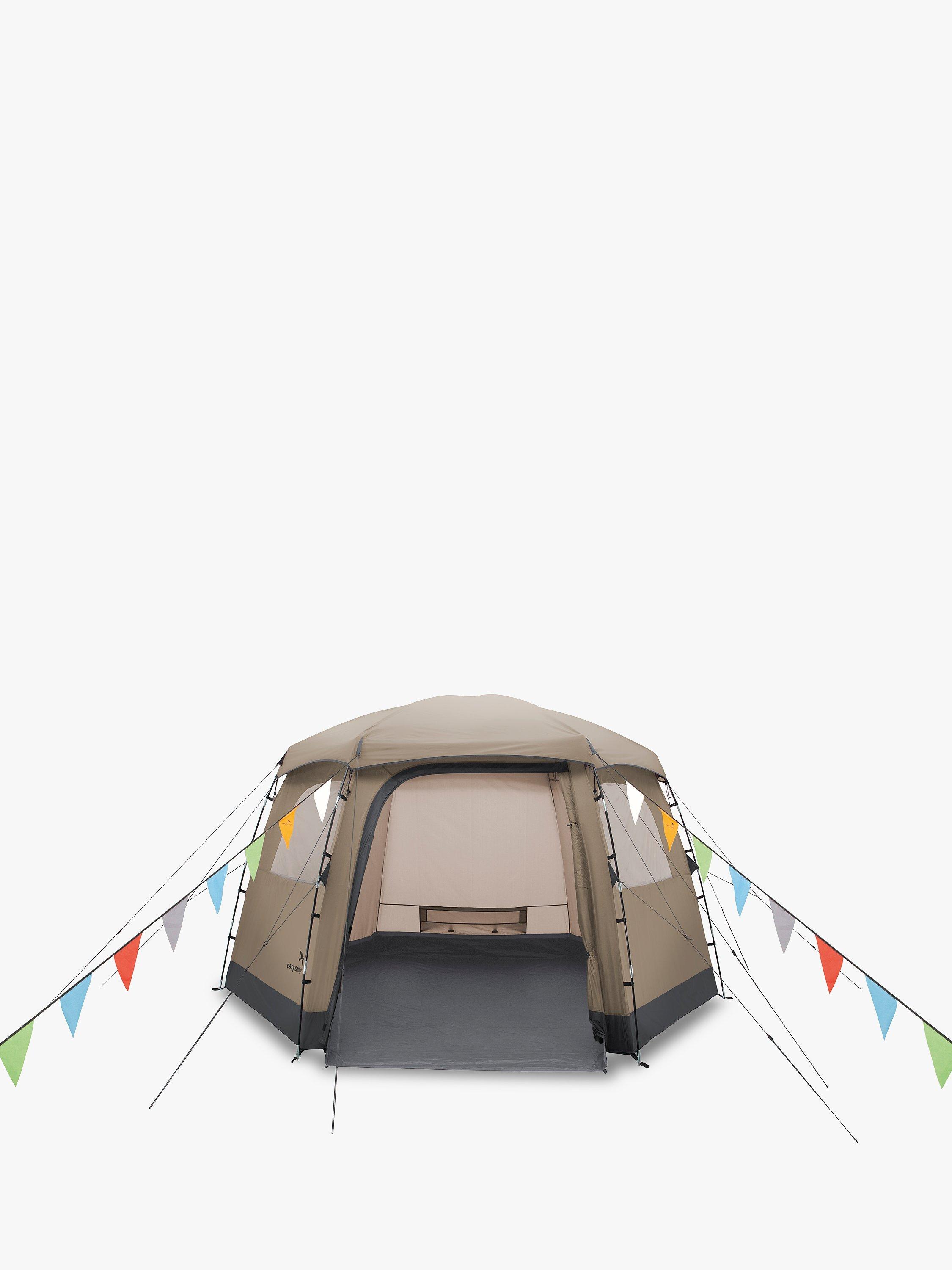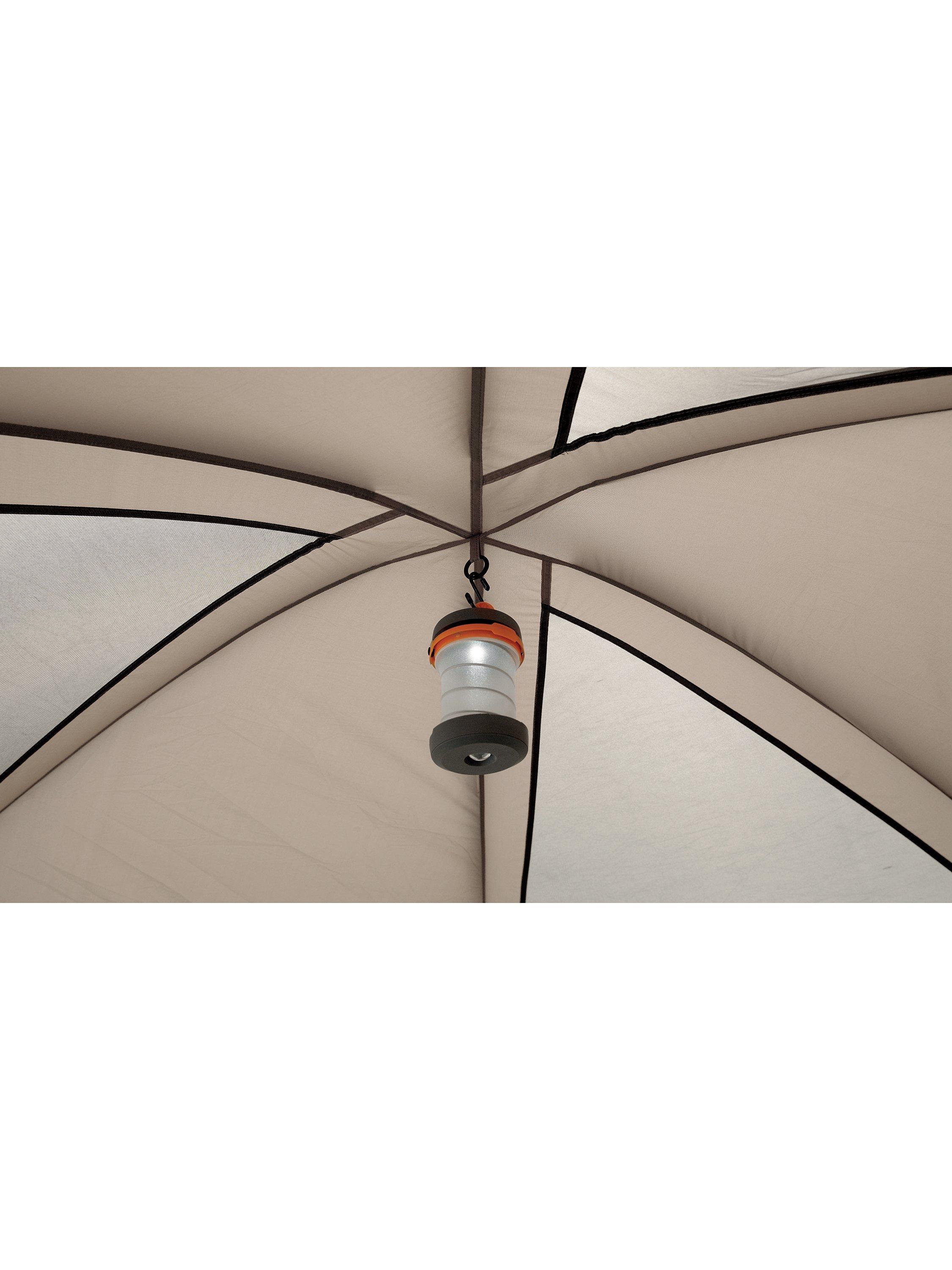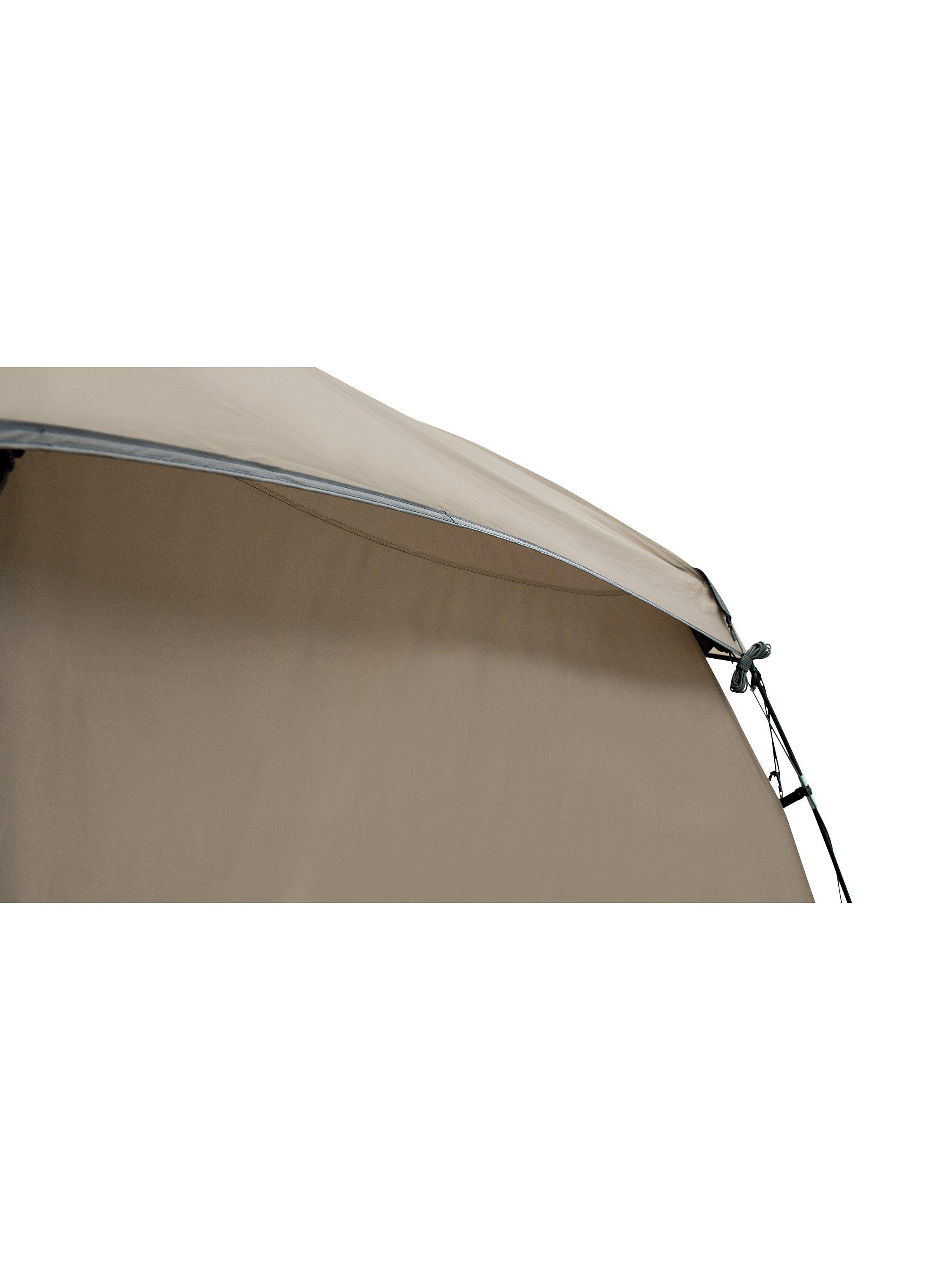 PVC windows deliver internal light, with toggle-up curtains for privacy, whilst easy access is guaranteed through the wide, fold-flat entrance with double slider zippers on the door for flexible opening.