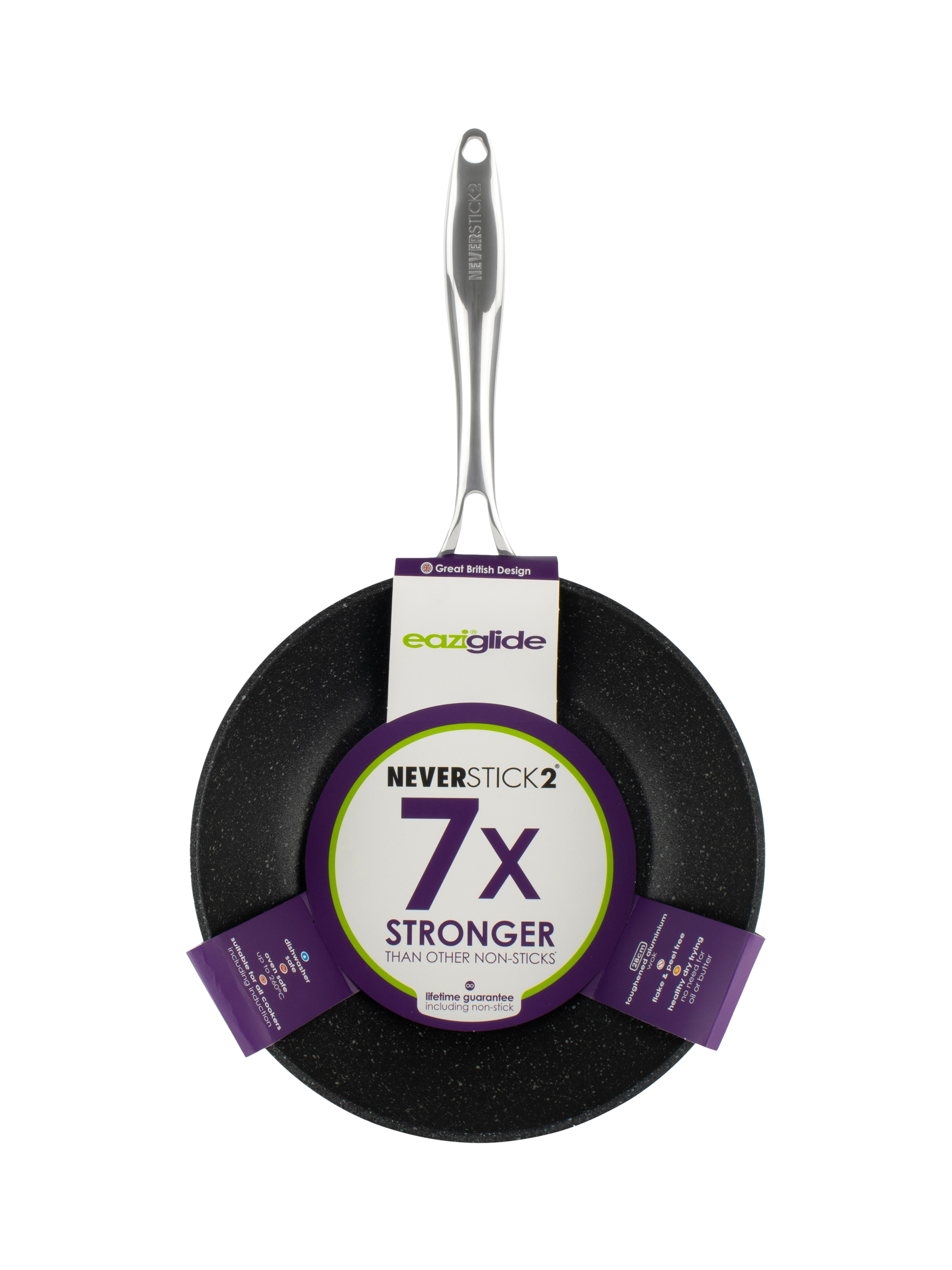 Made from toughened die-cast aluminium, the Eaziglide Neverstick2 range is specifically designed to make your life easier. The exclusive Neverstick2 coating lasts much longer than conventional systems and features a truly spectacular cooking surface that allows you to cook without oil or butter.