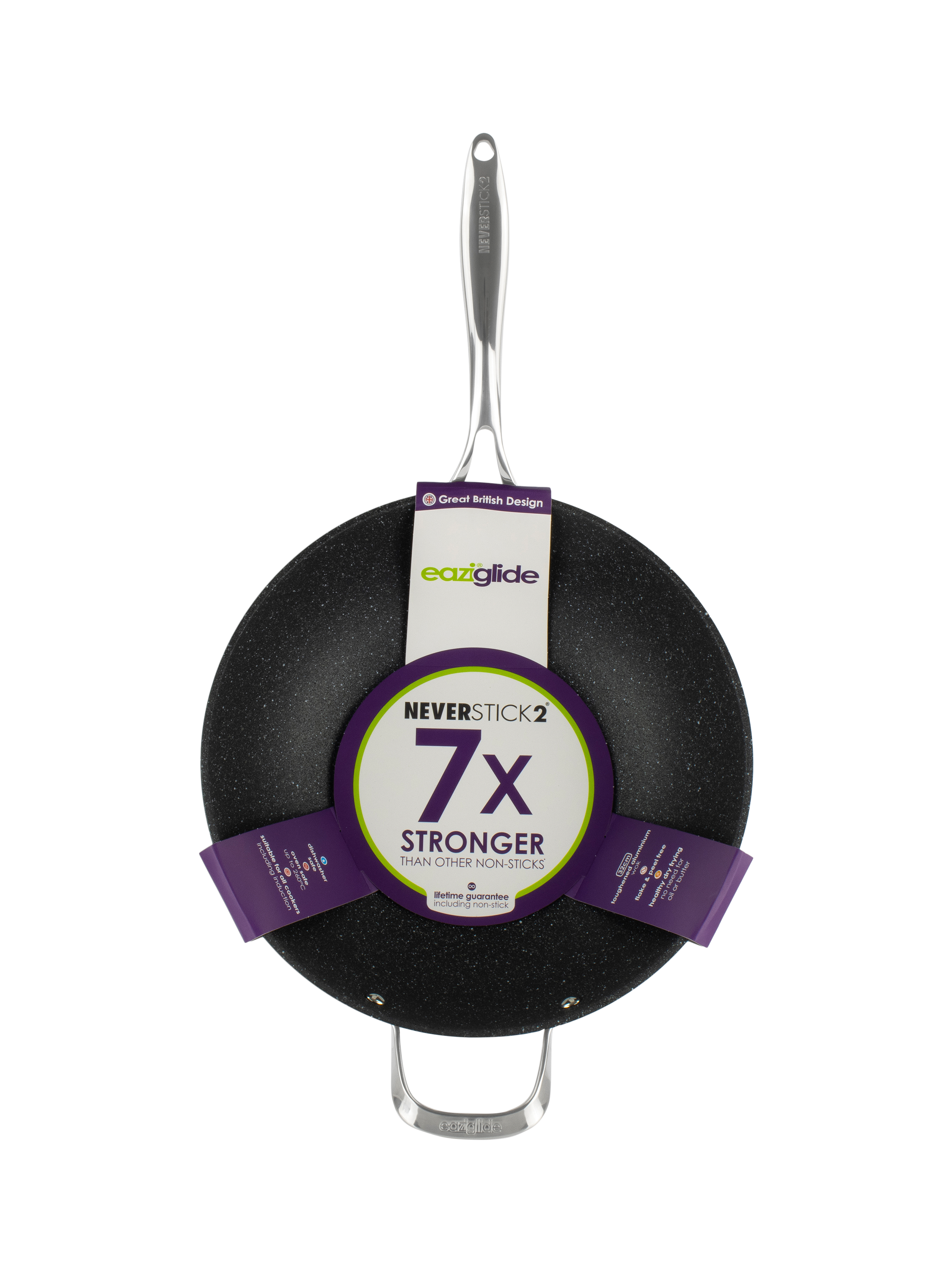 Made from toughened die-cast aluminium, the Eaziglide Neverstick2 range is specifically designed to make your life easier. The exclusive Neverstick2 coating lasts much longer than conventional systems and features a truly spectacular cooking surface that allows you to cook without oil or butter.