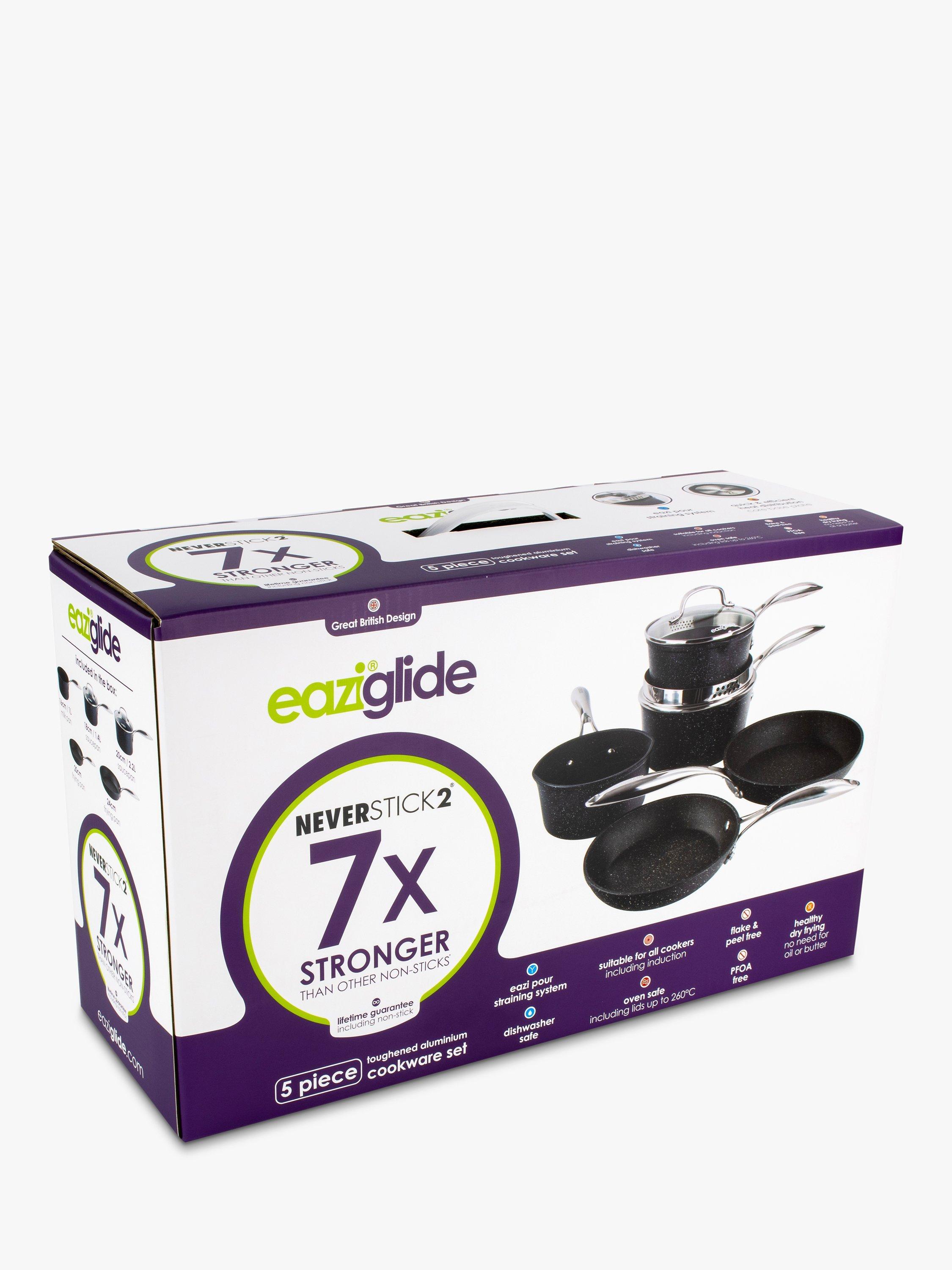 Made from toughened die-cast aluminium the Eaziglide Neverstick2 range is designed to make cooking easier. The exclusive Neverstick2 coating is highly scratch-resistant, lasting much longer than conventional non-stick and allows you to cook without oil or butter.