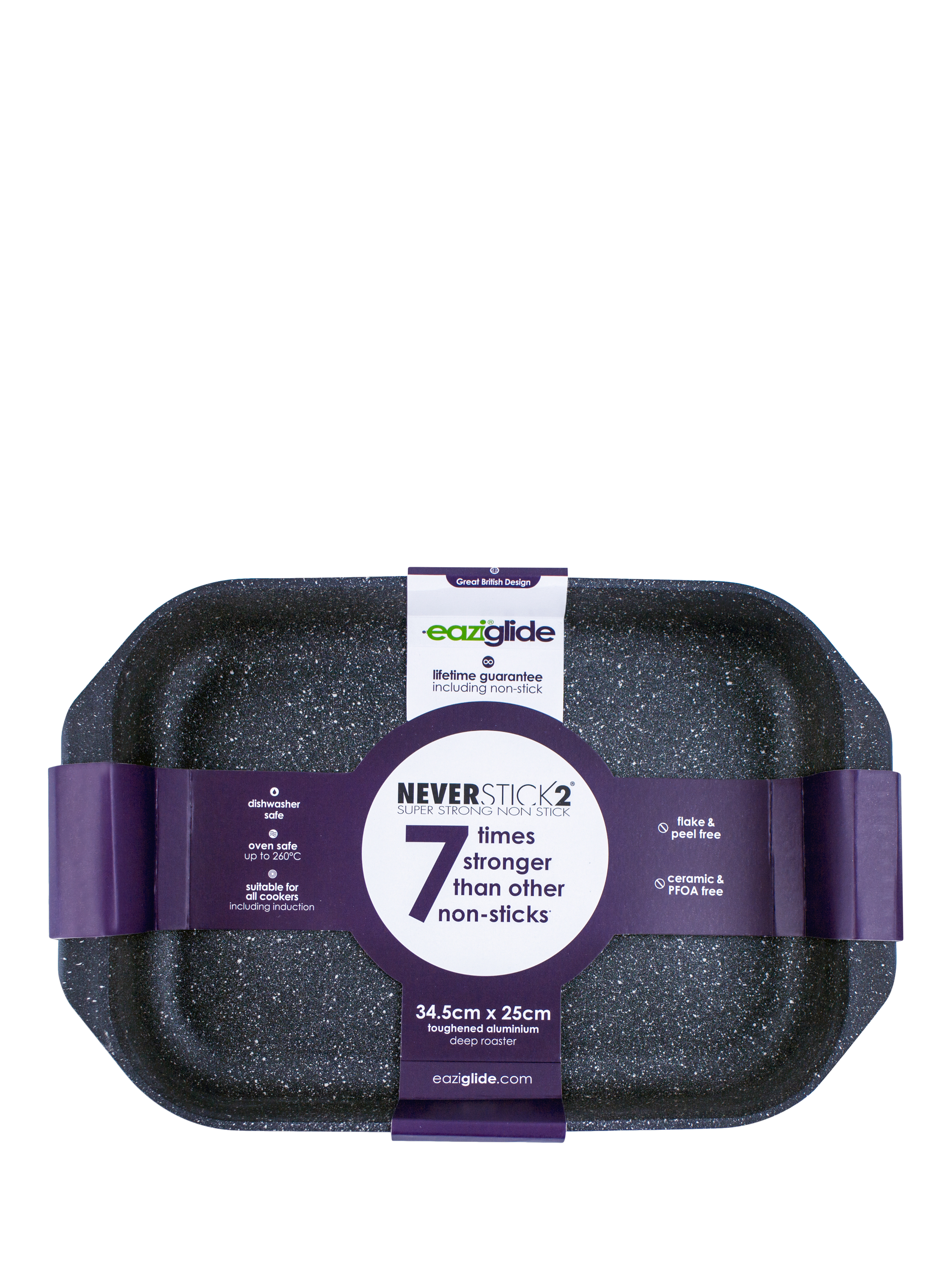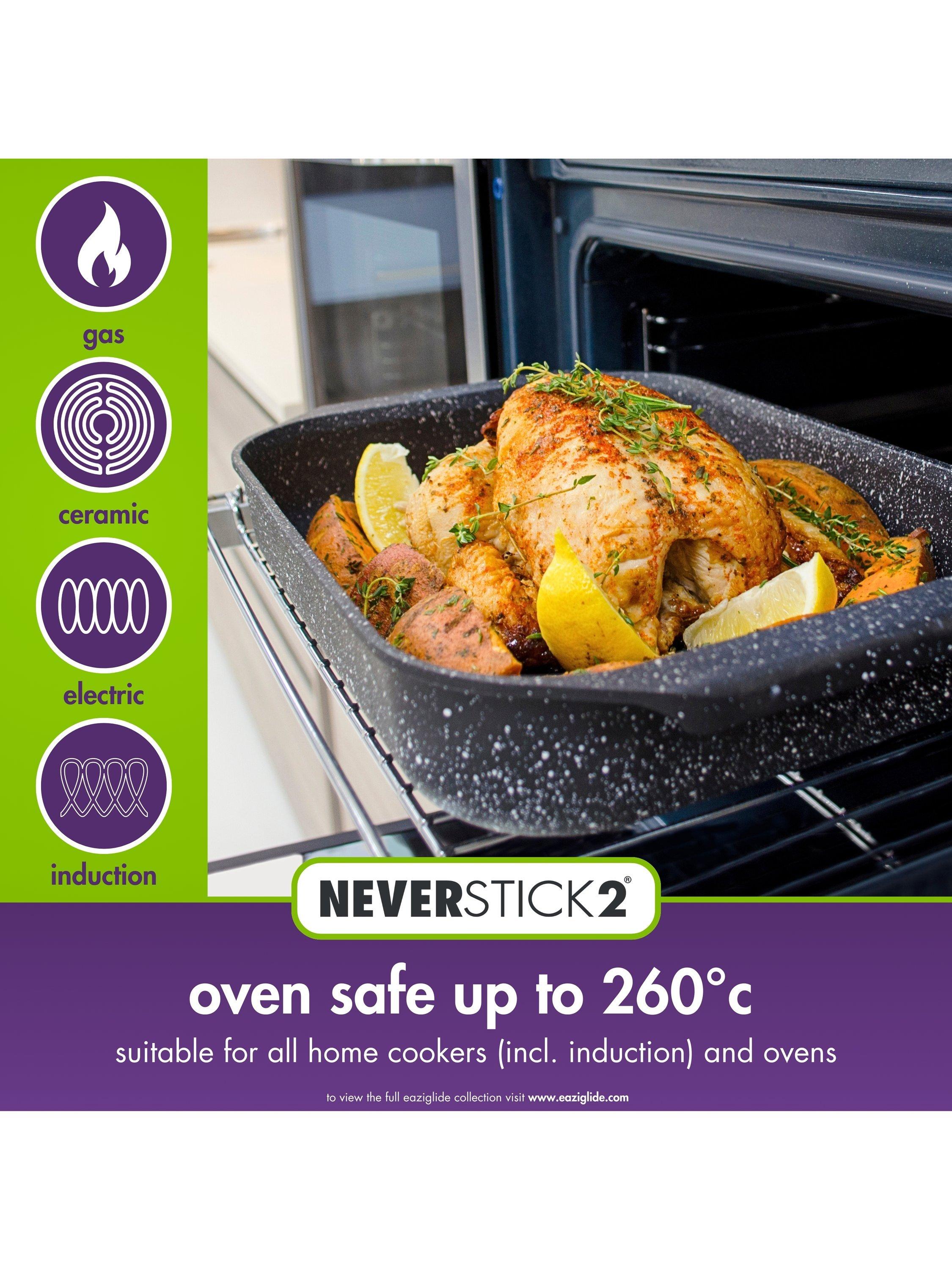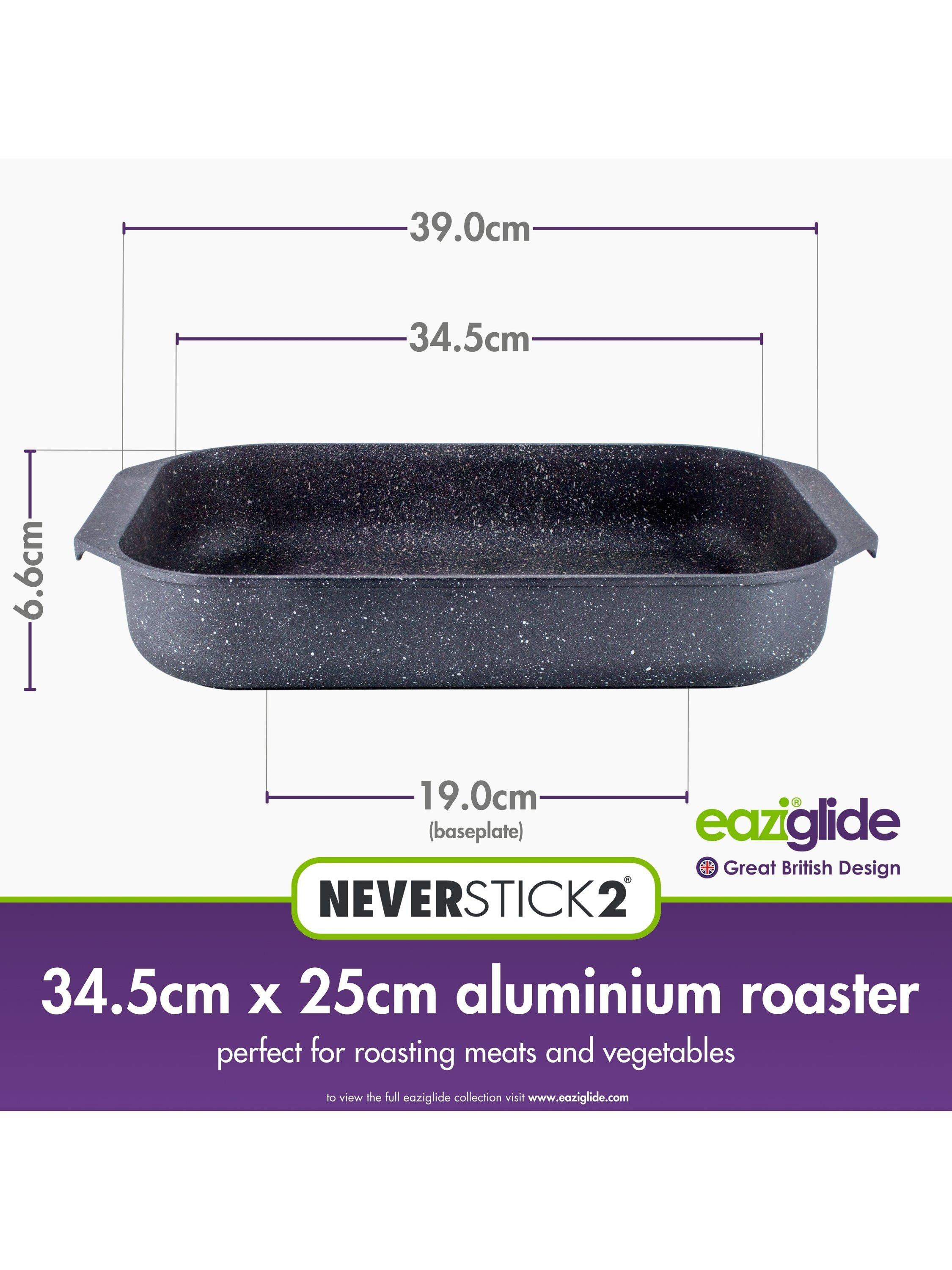 Made from toughened aluminium the Eaziglide Neverstick2 range is specifically designed to make your life easier with an exclusive Neverstick2 coating that lasts much longer than conventional systems and features a cooking surface that allows you to cook without oil or butter (called 'dry frying') and is just so incredibly easy to clean. No more scraping off burnt meats or sauces.