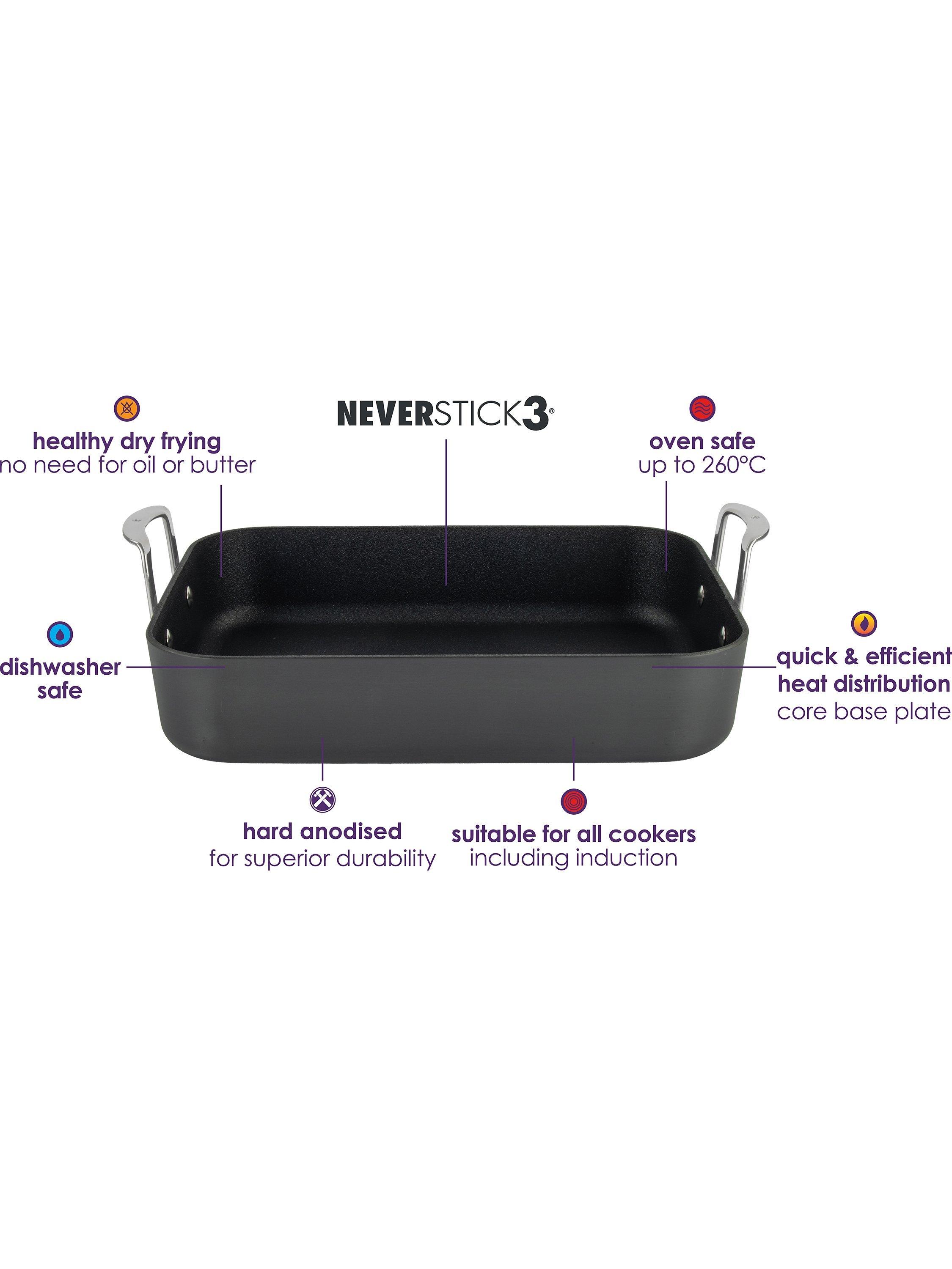 It features the latest and upgraded Neverstick3 non-stick coating, surpassing all previous results to become the brand's best ever performing non-stick. It's also been advanced with an unparalleled hard-anodising process for superior durability, perfect for culinary professionals.