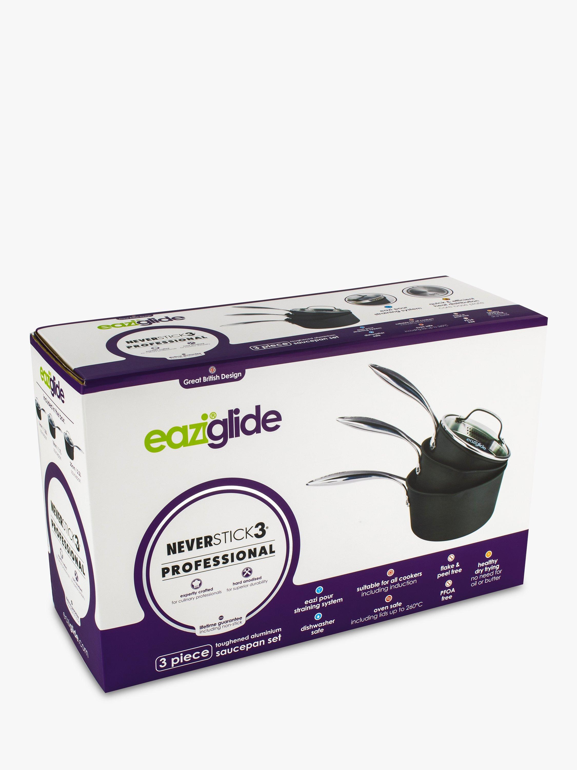This expertly crafted set of three saucepans can be used in the oven up to 260°C, cleaned in the dishwasher (although hand washing is easy and preferable) and features the Eaziglide lifetime guarantee. They can be used on all hob types, although heating up takes a little longer for these pans with induction hobs.