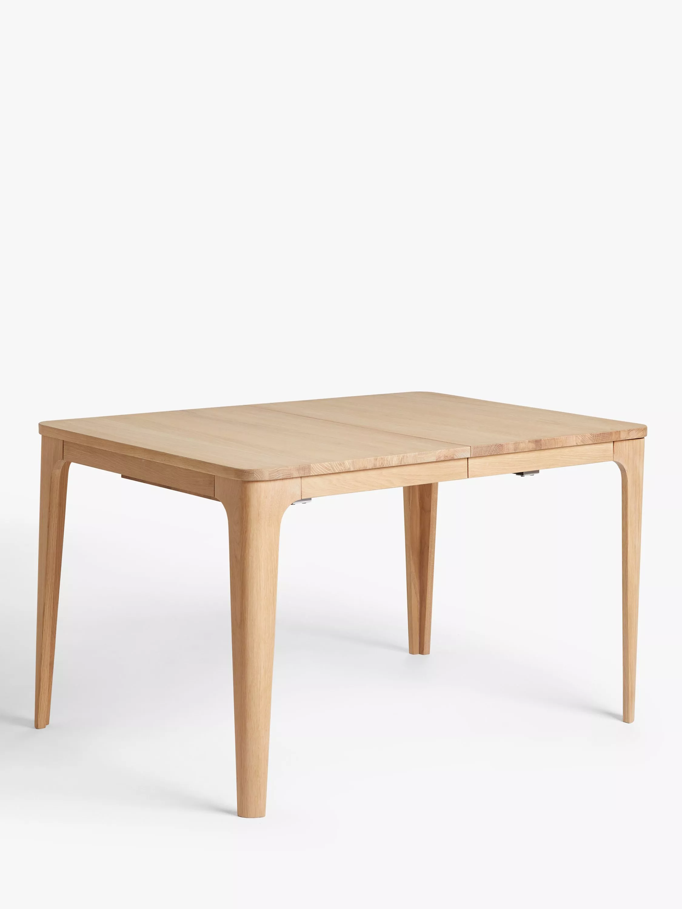Built from solid oak and high quality oak veneers, this dining table has a distinctly modern look. We've designed it with tapered legs and round edges for a sleek finish and there's seating for a total of eight people when fully extended. The extension leaves can be neatly stored inside the table when not in use.