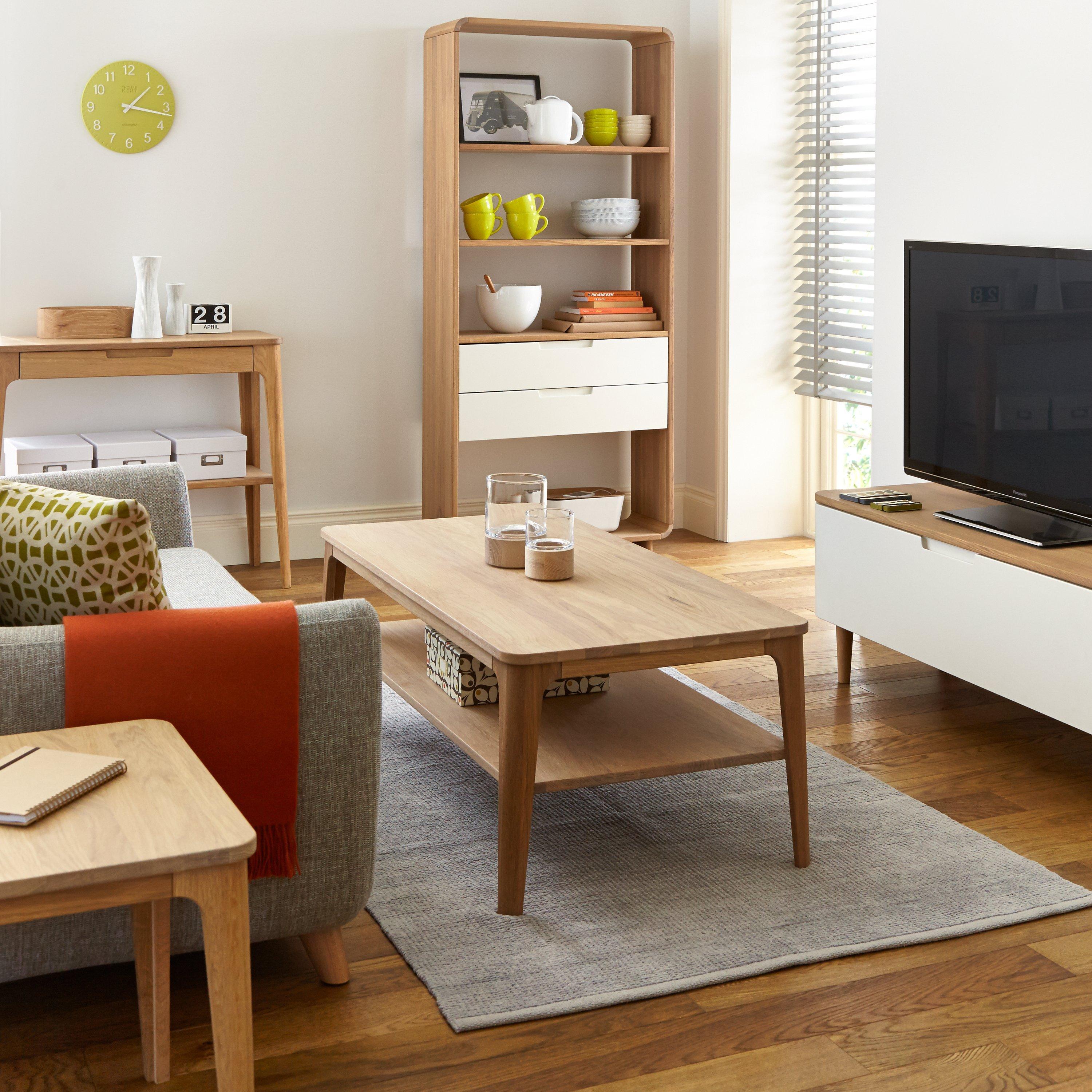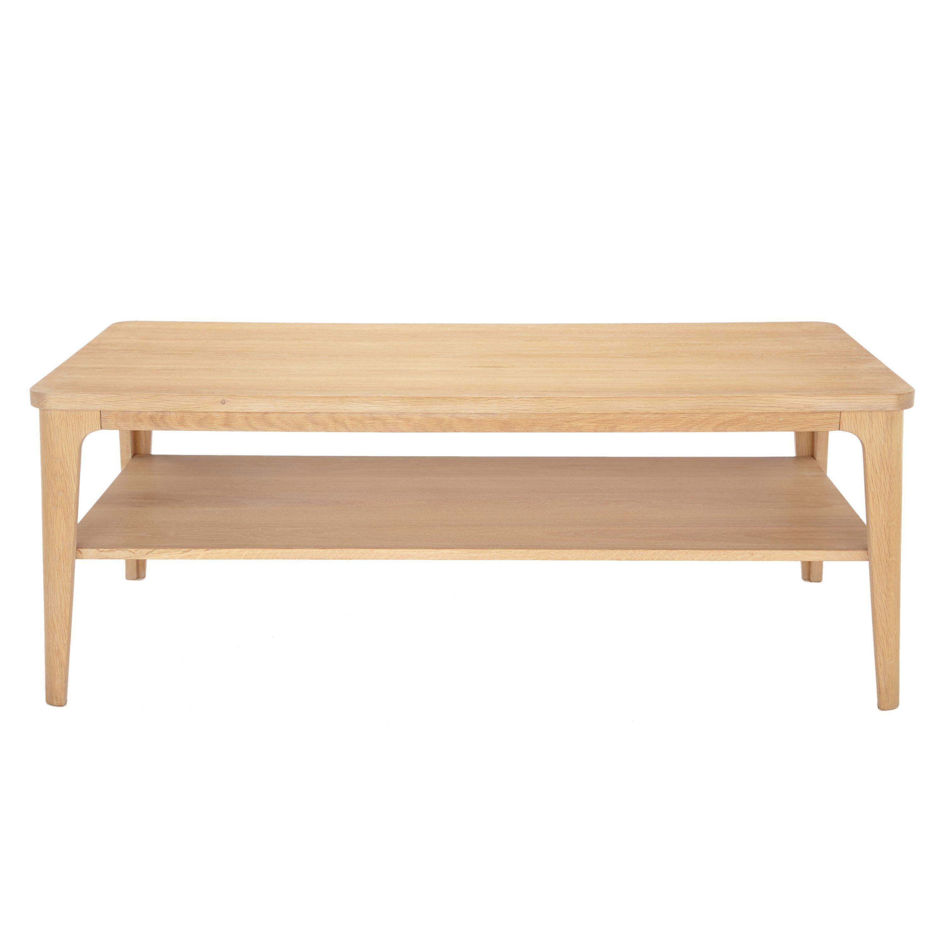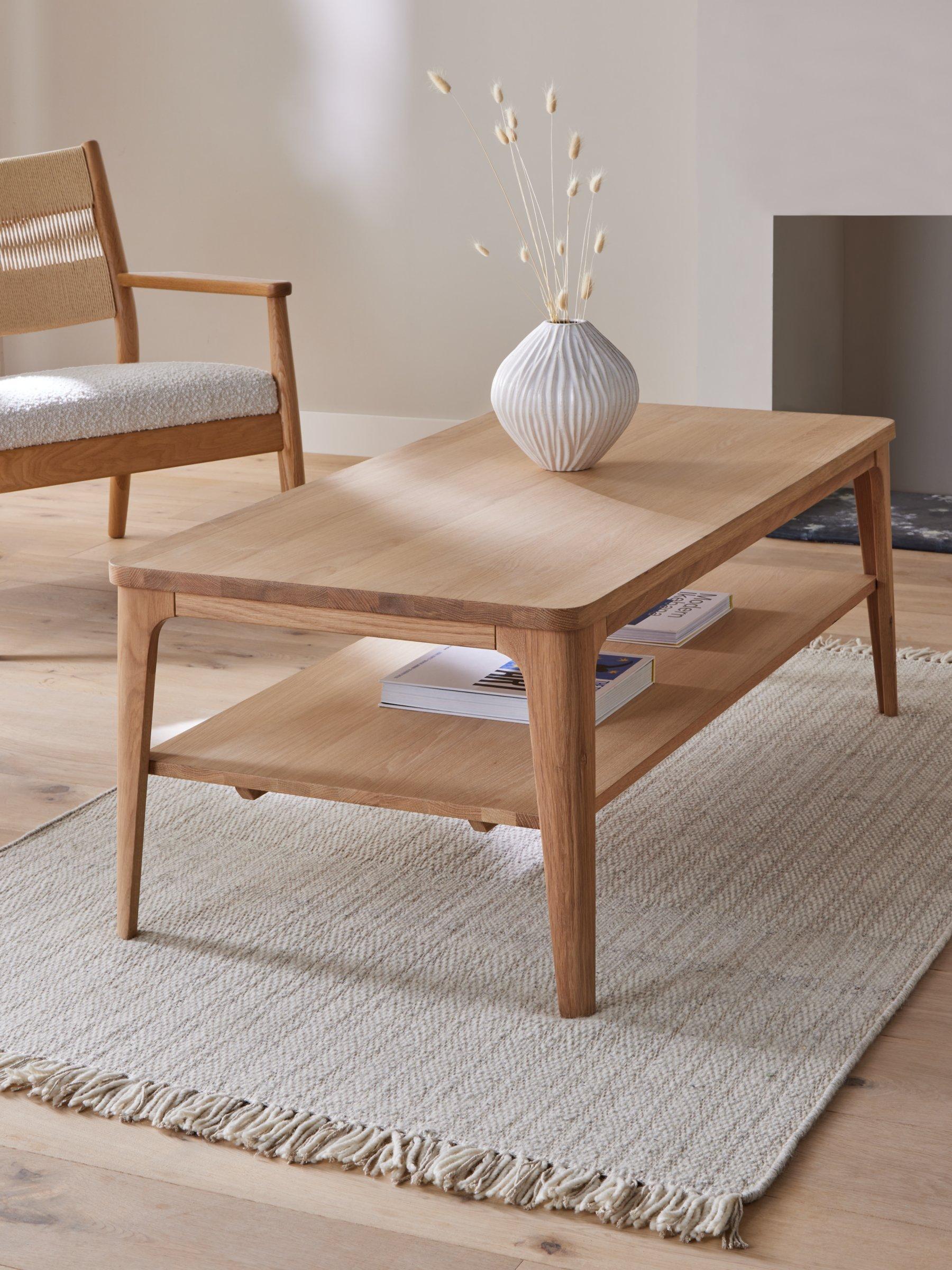 This practical, two-tiered coffee table is a celebration of modern, Scandinavian-inspired design and natural materials. It's made from solid oak, with the addition of oak veneers in the darker wood, and features subtly tapered legs and rounded edges. Perfect for introducing a softer styling touch to the centre of your living room.