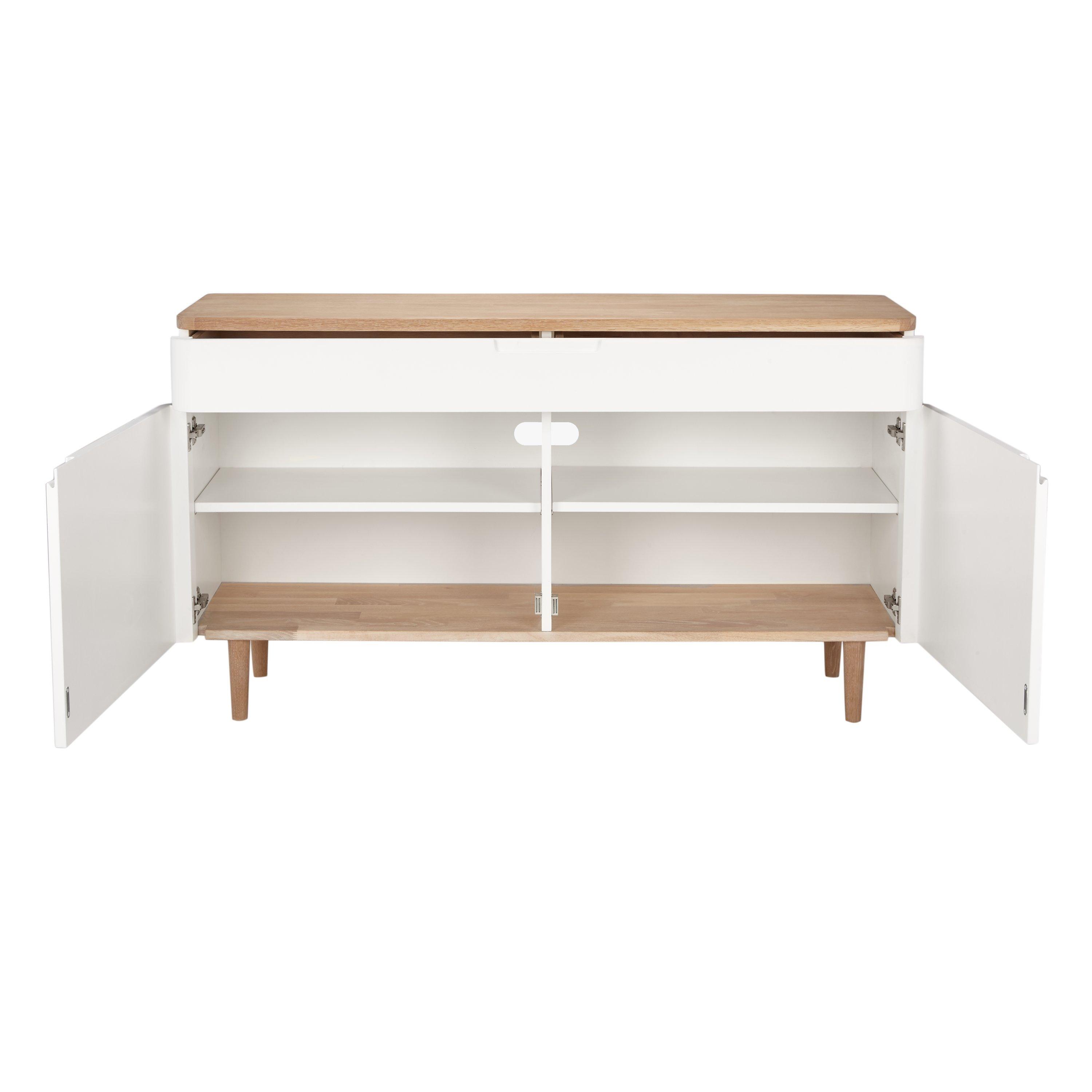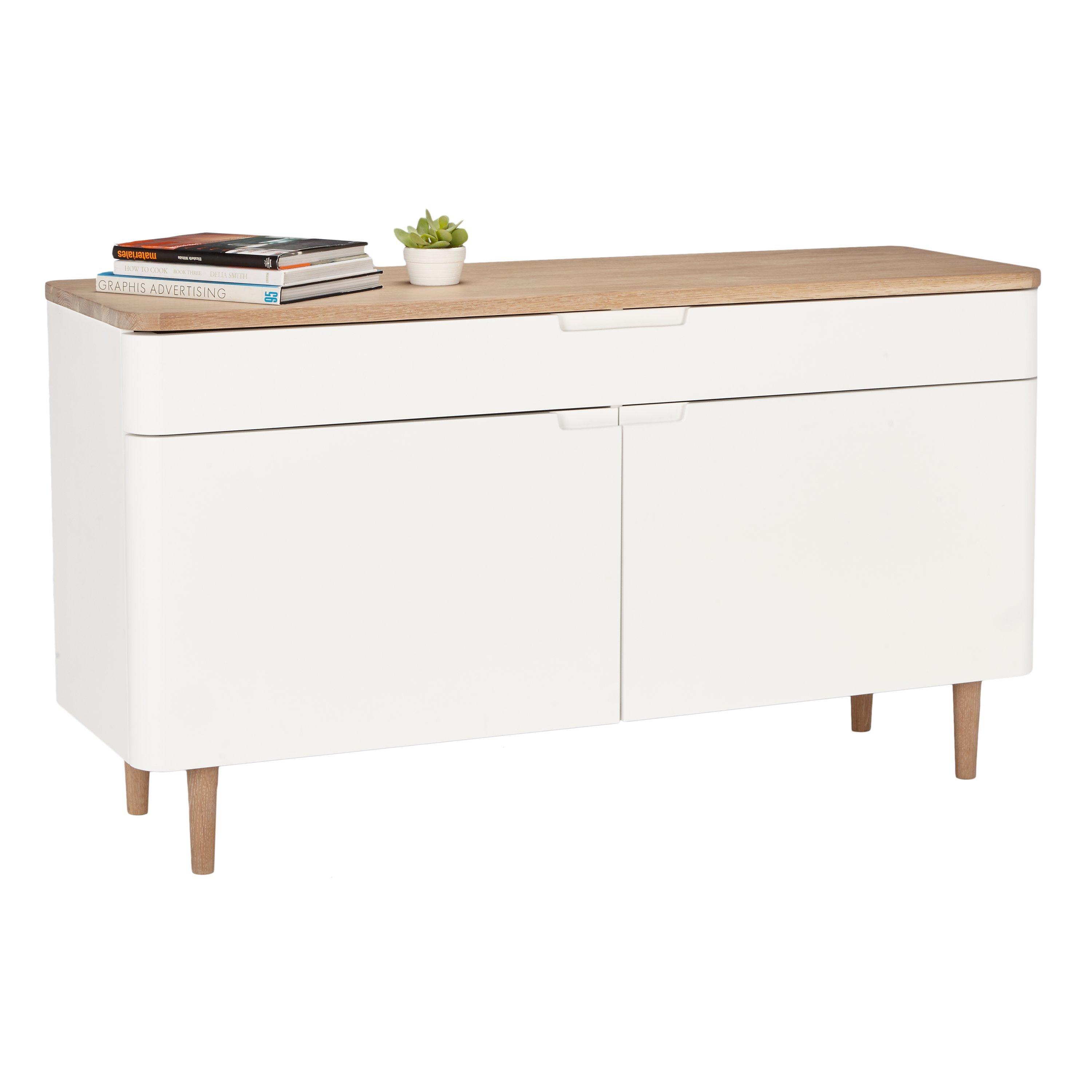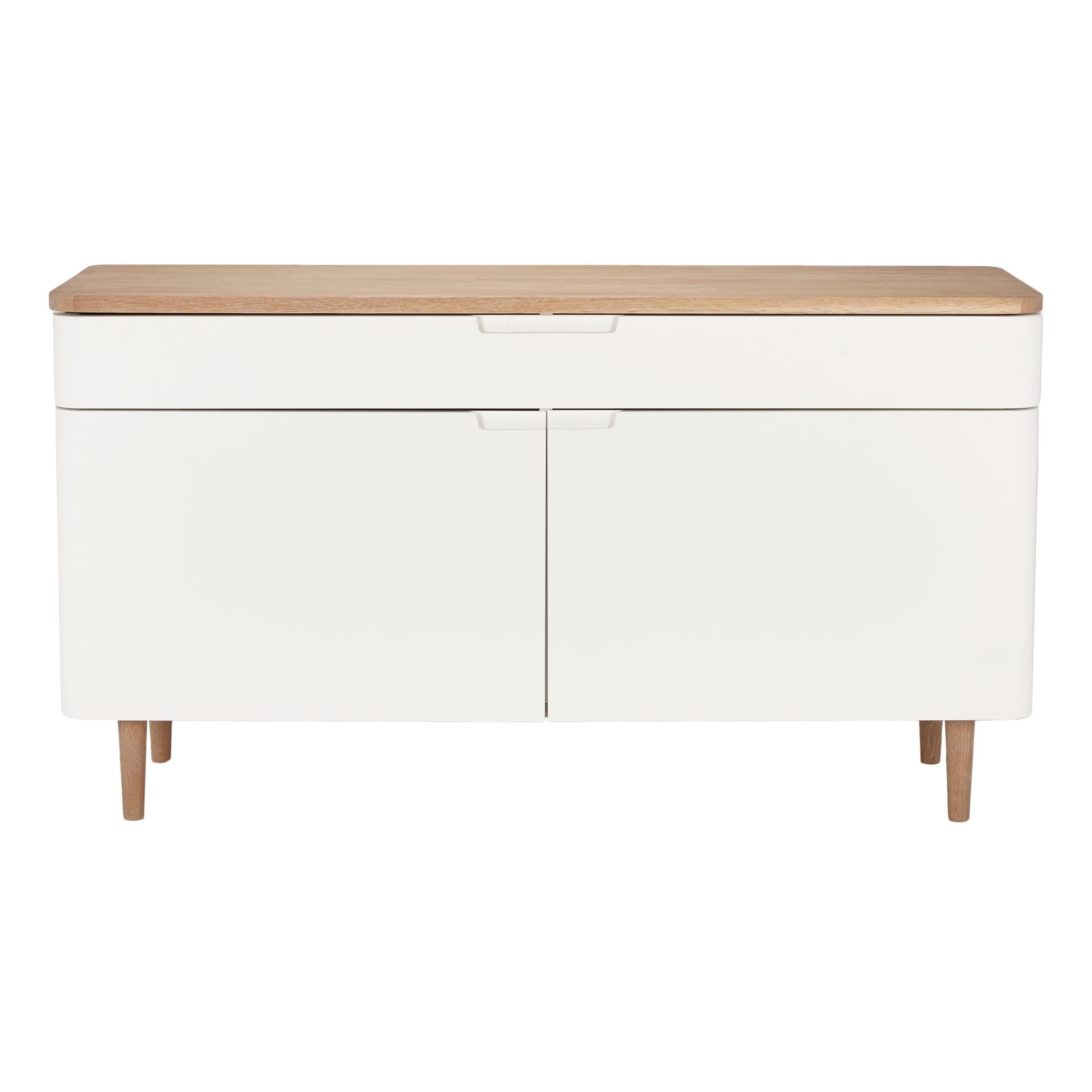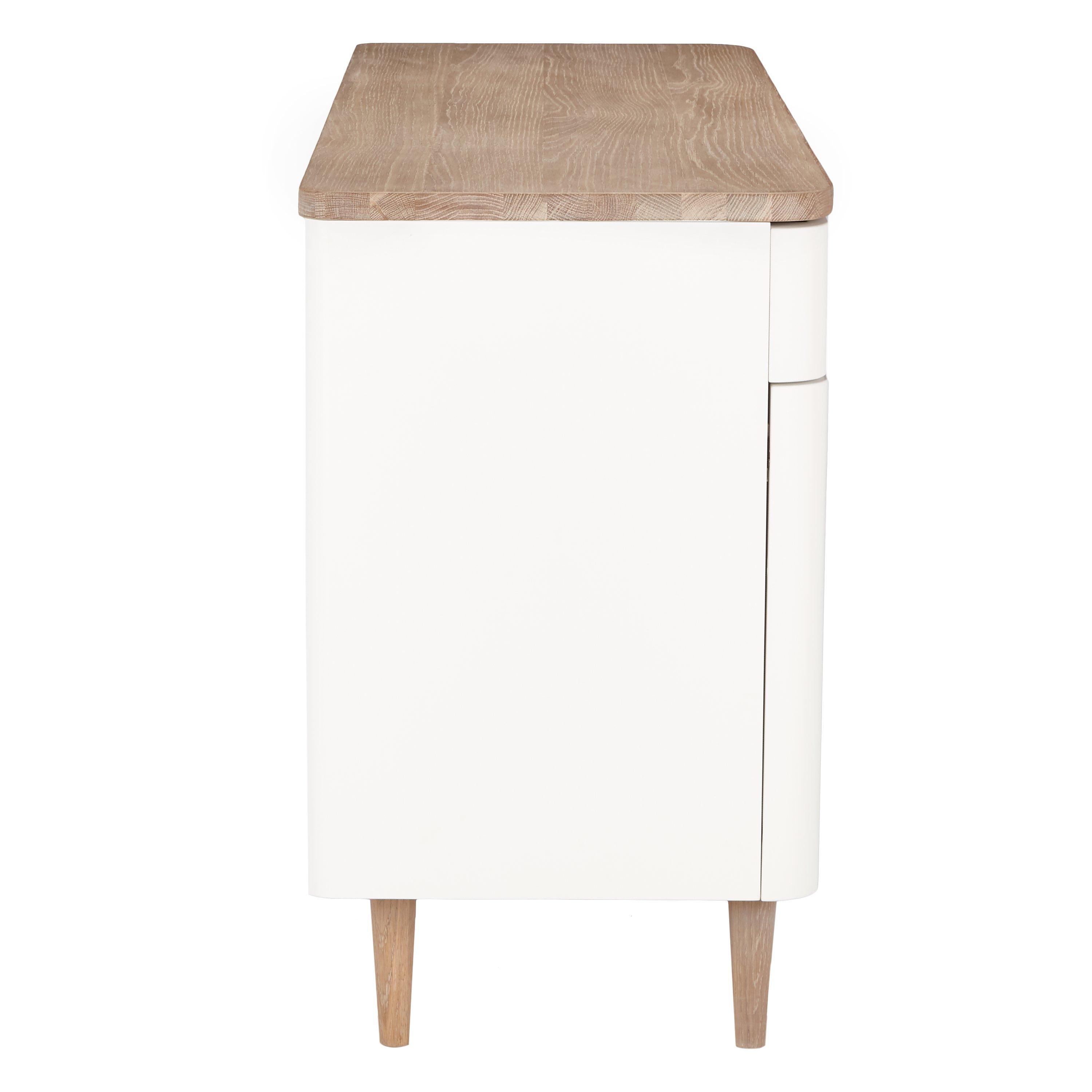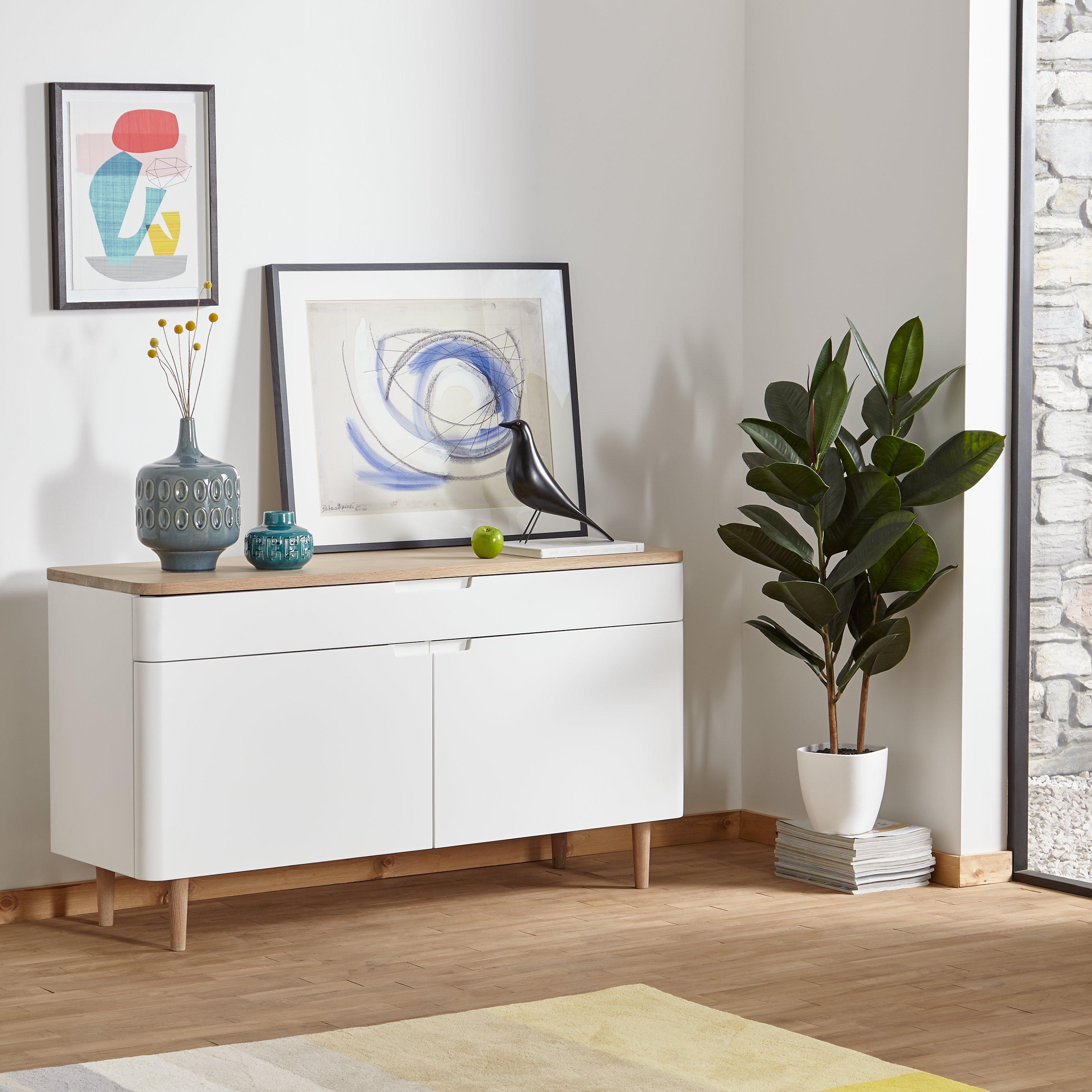 With a simple design that blends both Mid-Century and Scandi-inspired styles, this spacious sideboard will draw the eye. It's made from hard-wearing solid oak with the addition of MDF and oak veneers and there's plenty of storage space thanks to a divided draw and cupboard section. We like the sleek, tapered legs and rounded edges as it gives the frame a softer look. Plus, the painted front adds a modern contrast.