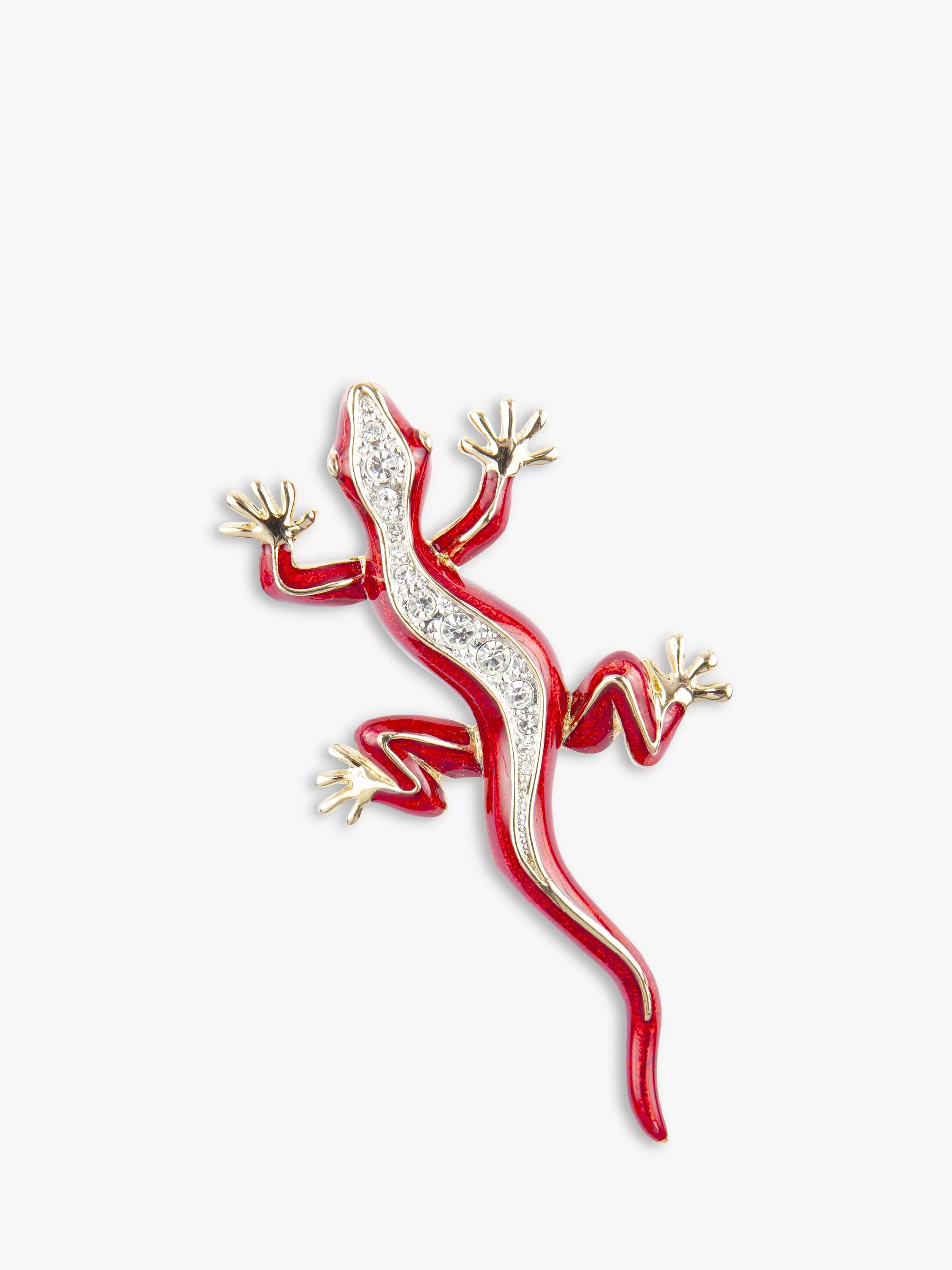 EclecticaPre-Loved 18ct Gold Plated Enamel & Swarovski Crystal Lizard Brooch, Gold/Red