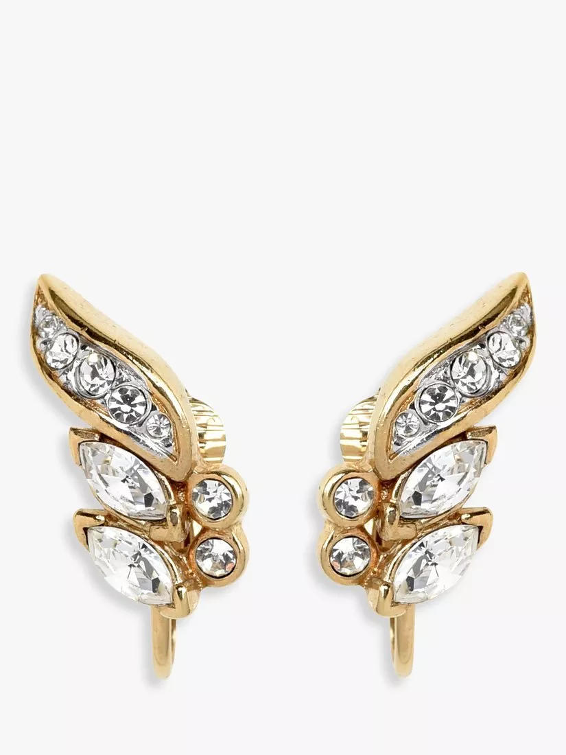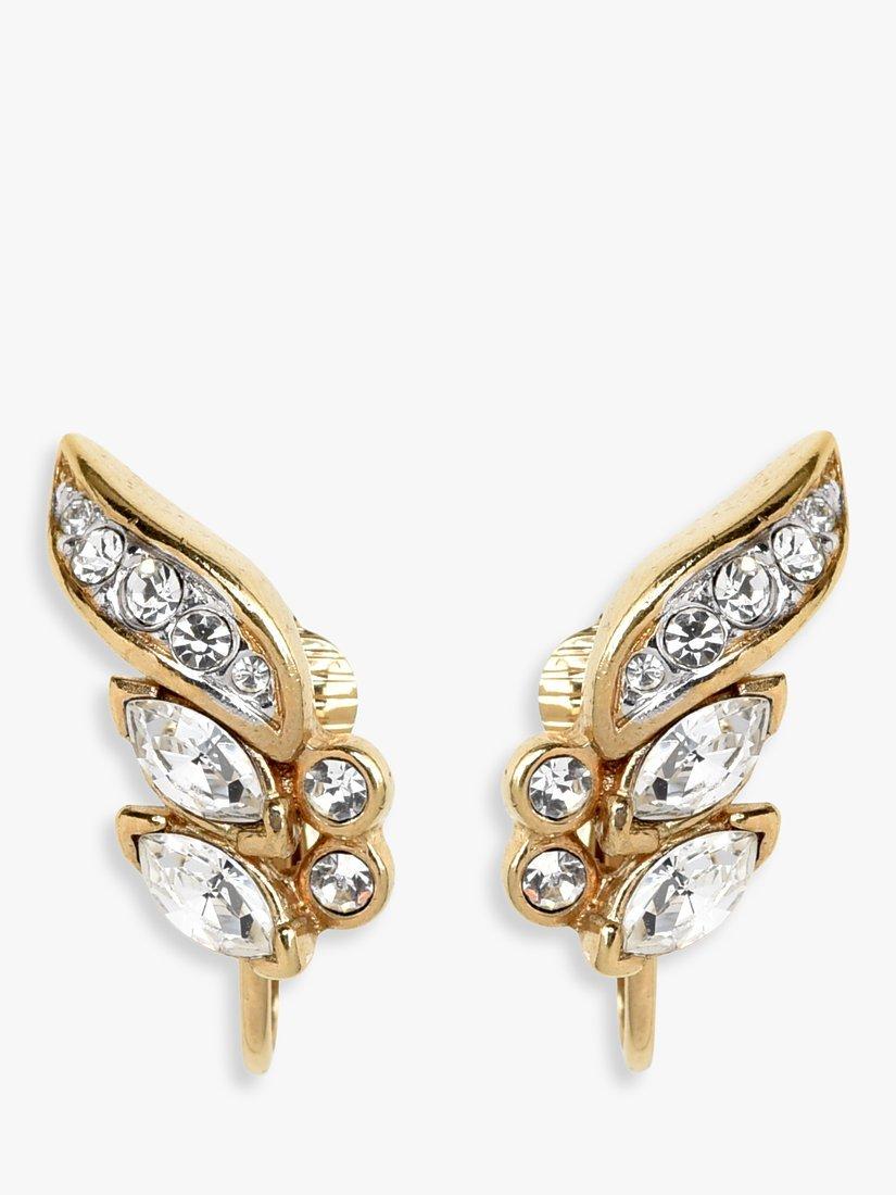 EclecticaPre-Loved Attwood & Sawyer Navette Swarovski Crystal Clip On Earrings, Dated Circa 1980s, Gold