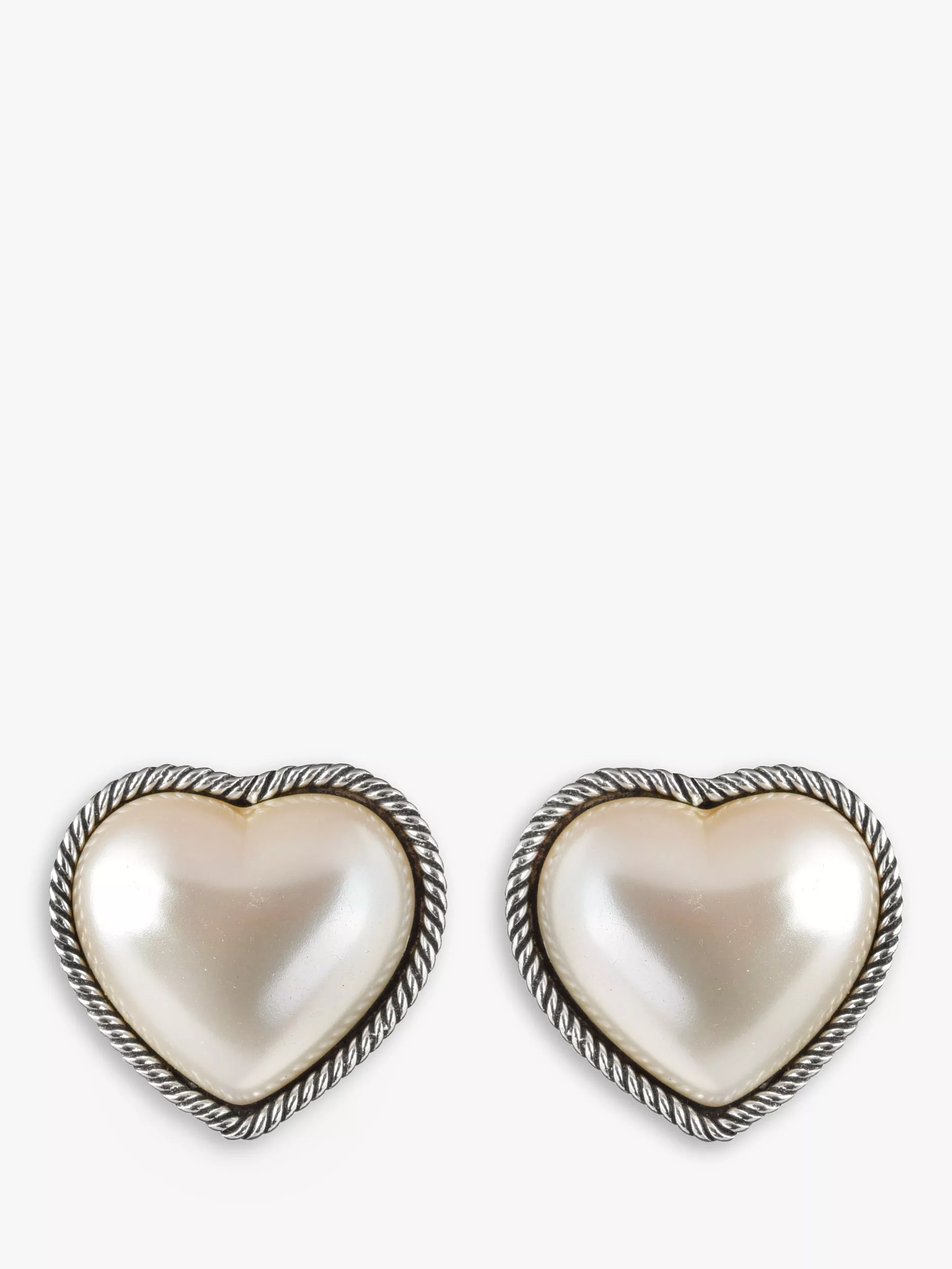 EclecticaPre-Loved Faux Pearl Heart Clip-On Earrings, Dated Circa 1980s
