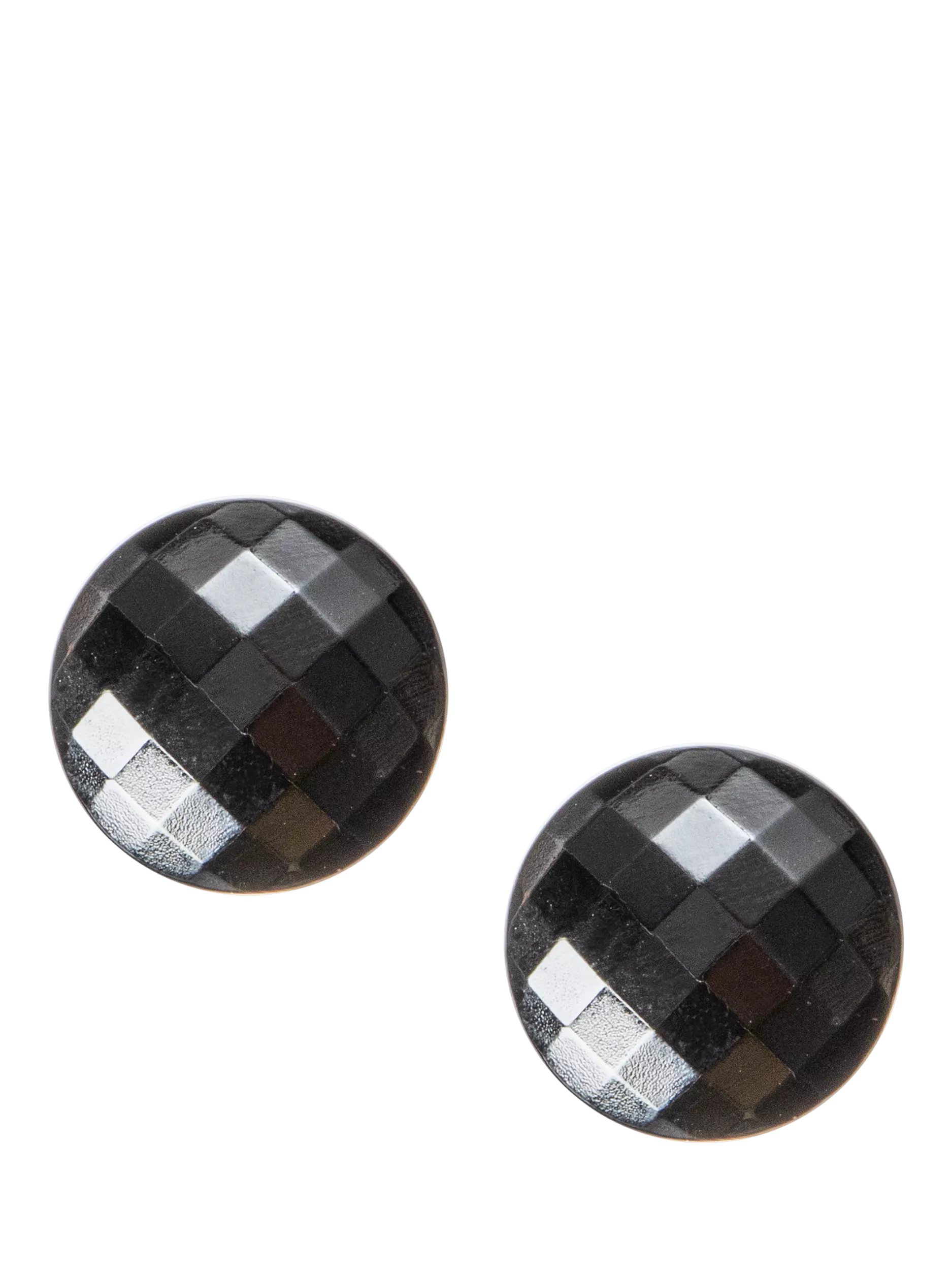 Classic black faceted black glass clip-on button earrings from the 1980s.