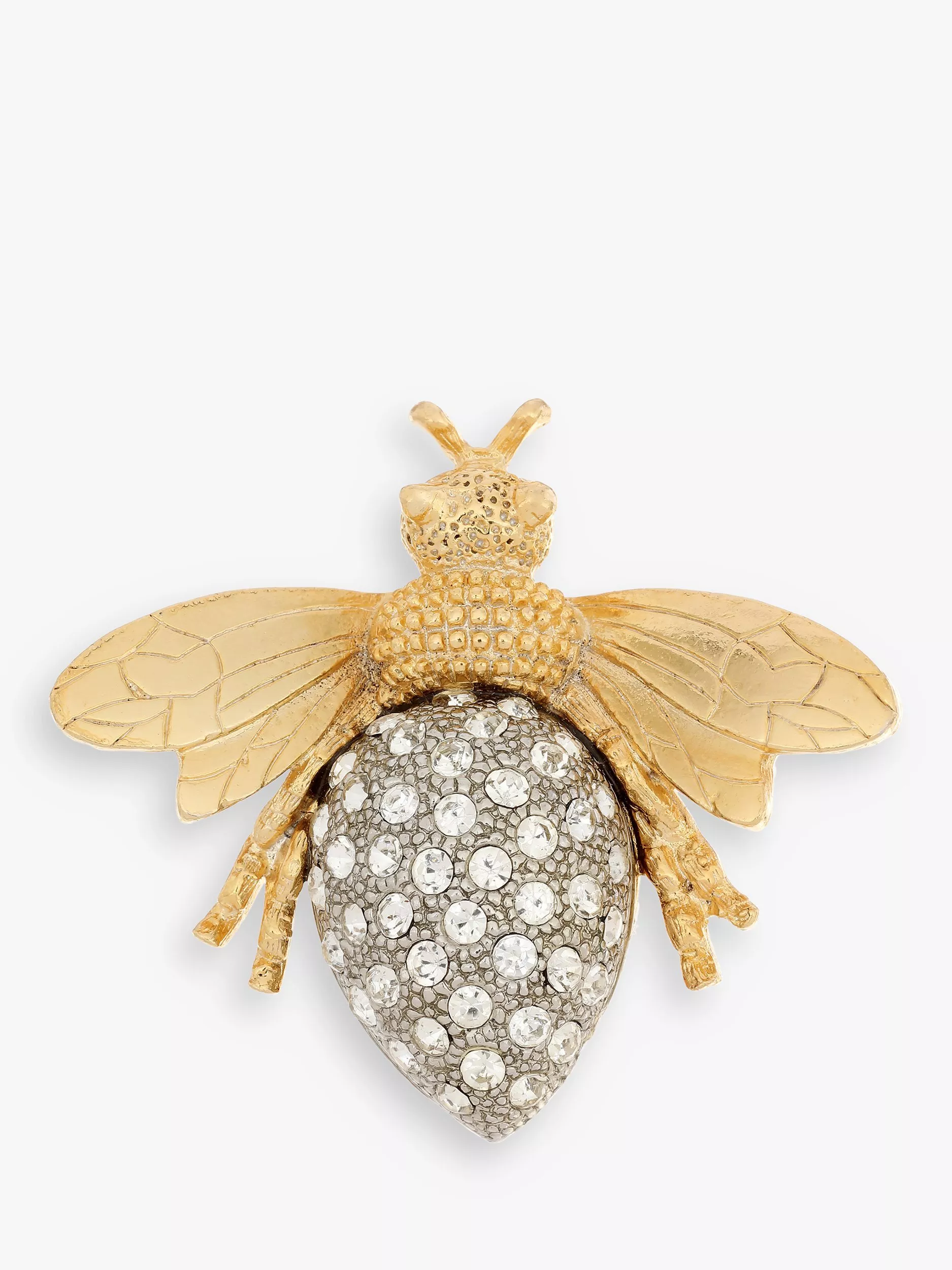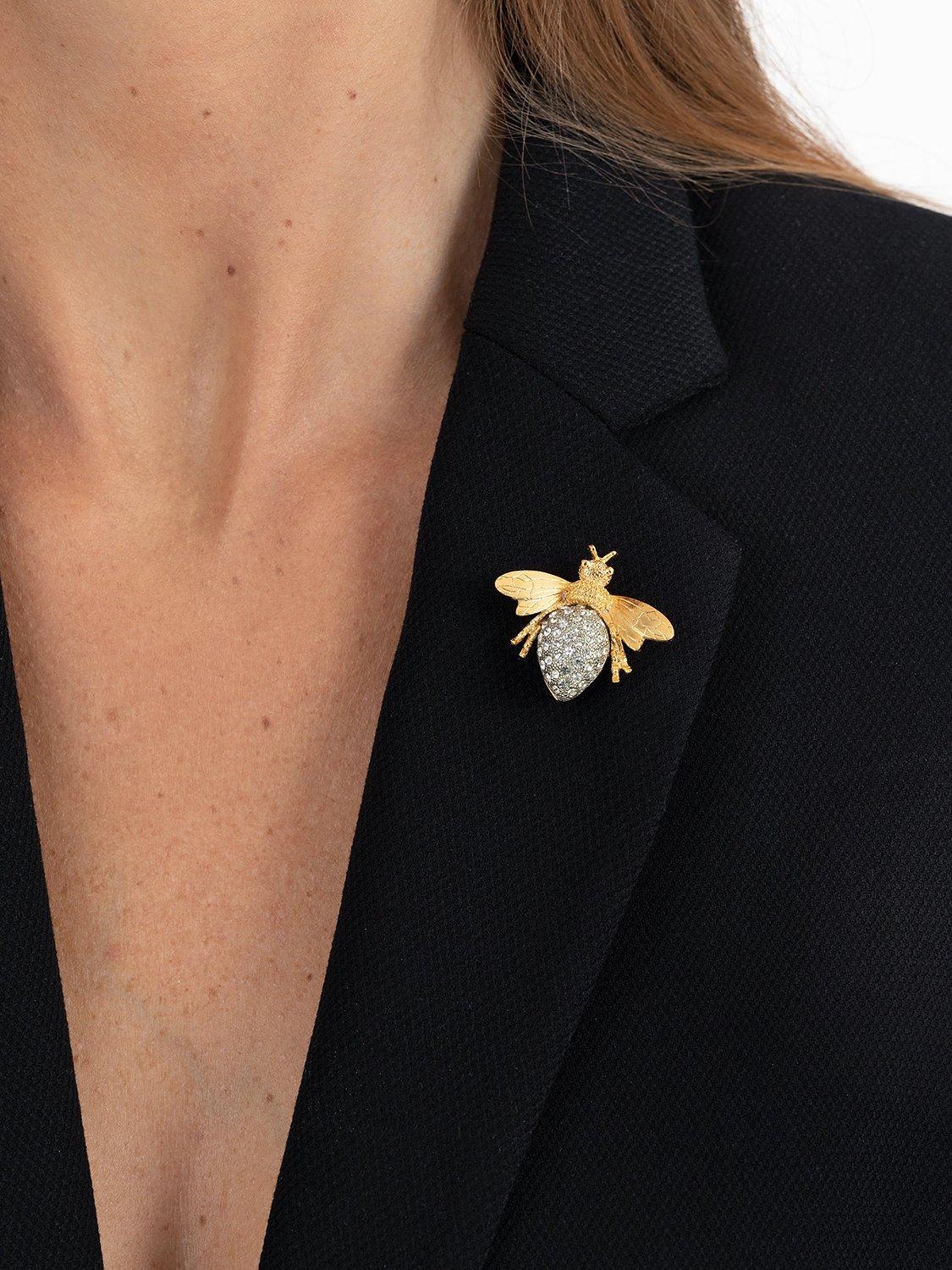 Gold-plated Bumble bee brooch with a Swarovski crystal-encrusted body.