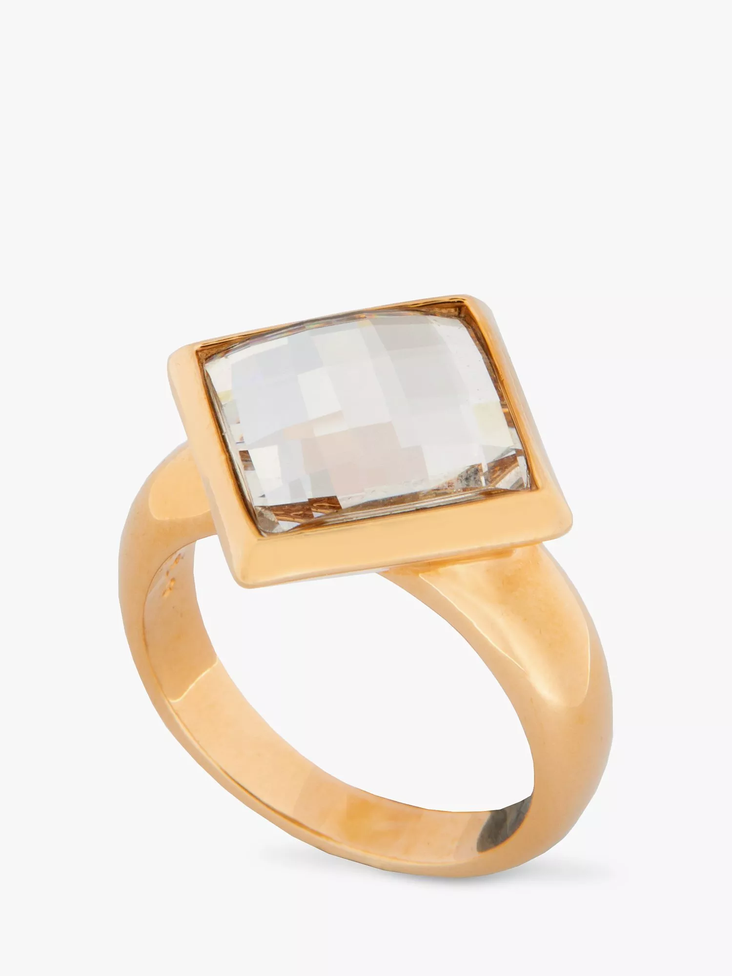 Add a sophisticated touch to your look with this 22ct gold plated ring. The style features a flat square-shaped Swarovski crystal stone in a rub-over setting.