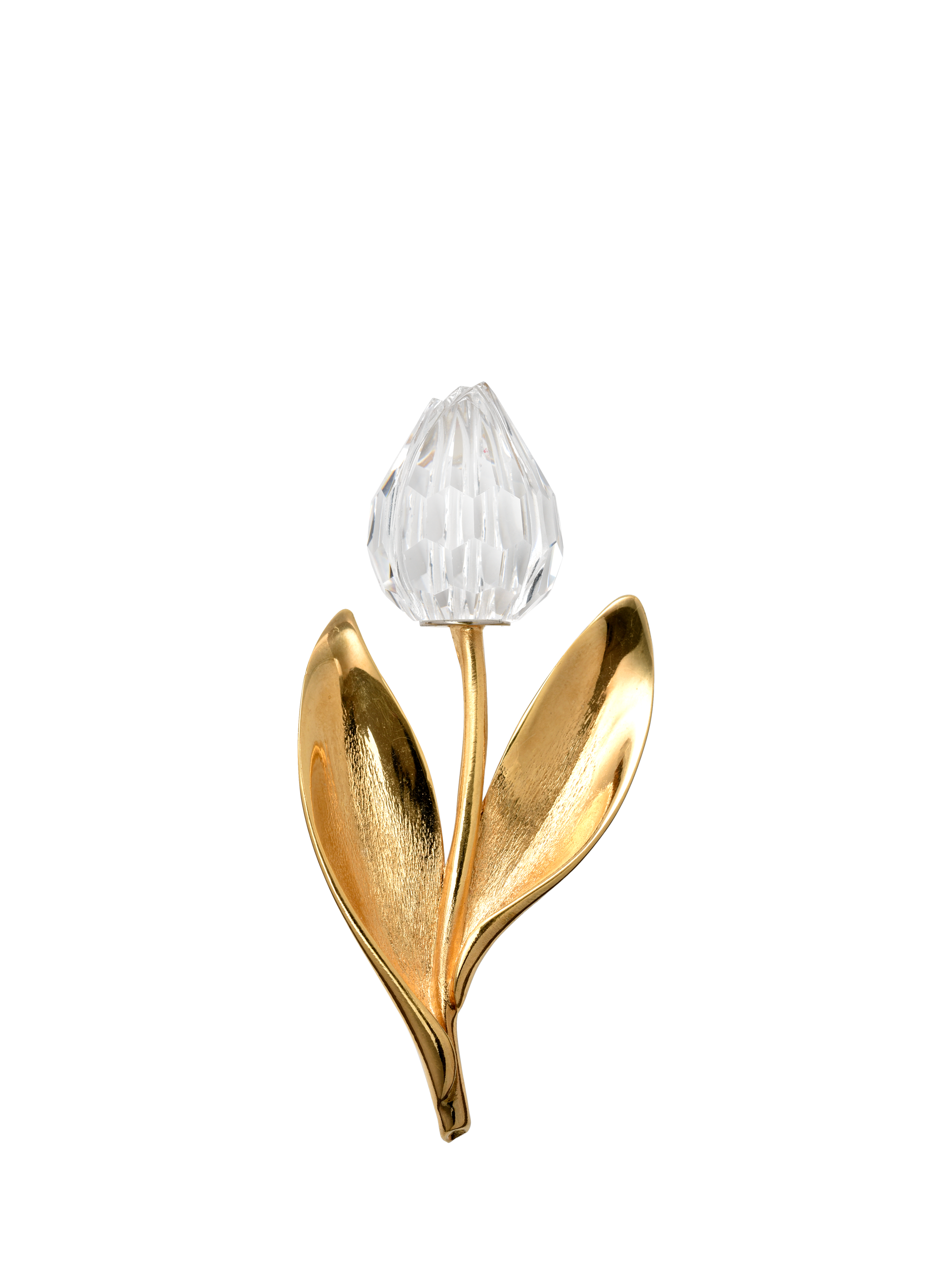 Preloved 22ct gold plated tulip brooch with a large colourless Swarovski crystal bud by Swarovski from the 1980s. The Swarovski swan emblem is stamped on the reverse.