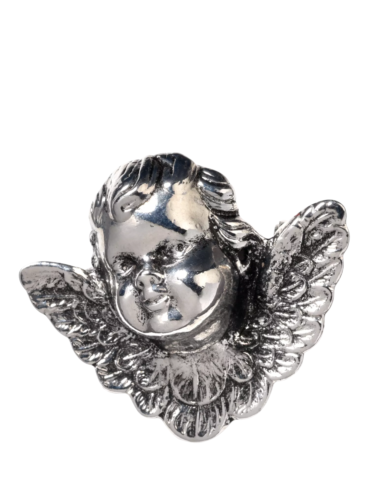This cheerful Vintage Cherub brooch will brighten the lapel of any winter coat! This large detailed Vintage brooch is from the 1980s and features a dark silver plate finish.