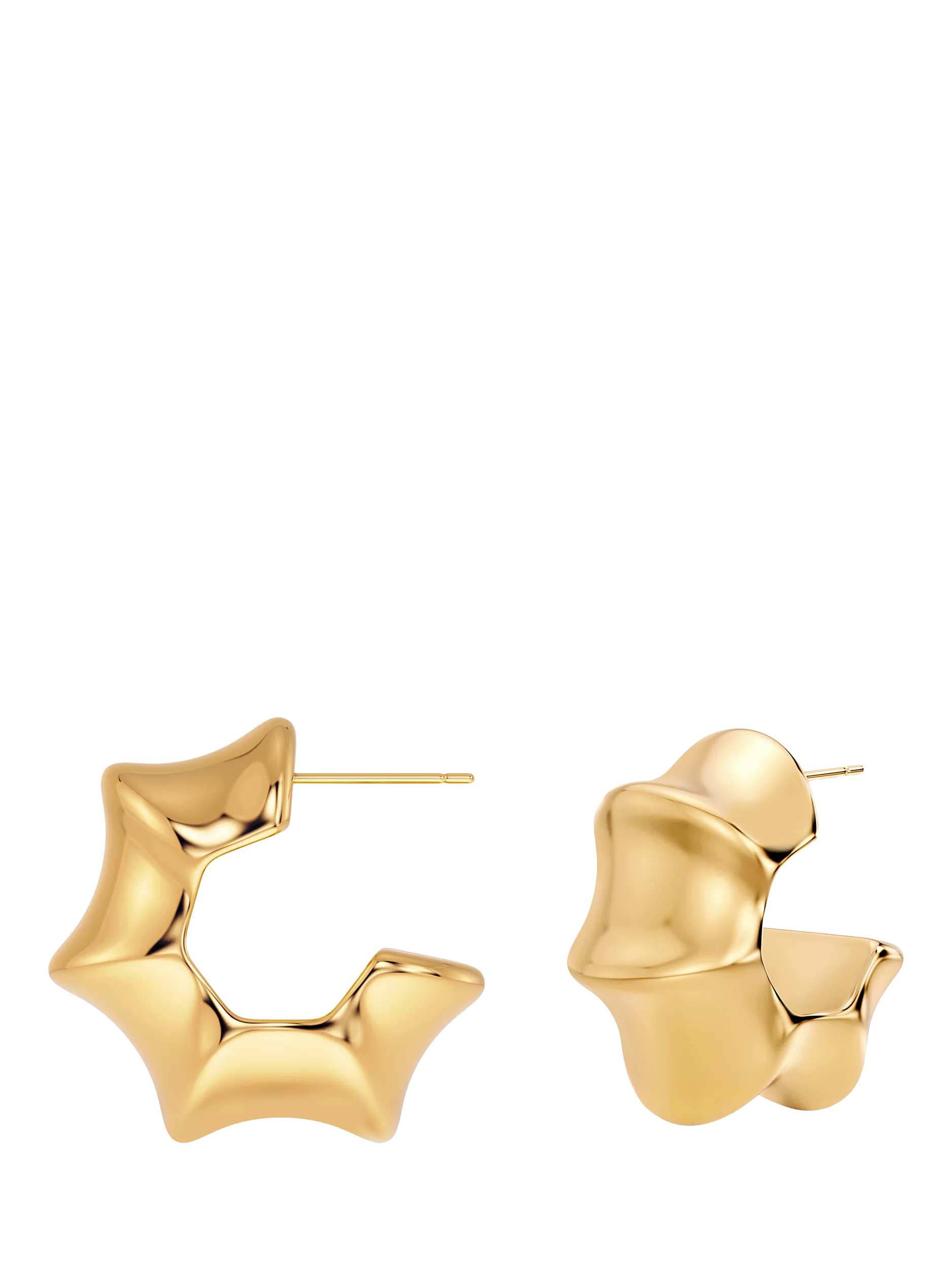 The undulating form of bamboo is the inspiration for Cane, which delicately balances the peaks and troughs of the pattern. The slightly larger hoops, seen here in 14ct gold plating, sit snugly on the ear. Nickel safe and water-resistant. Suitable for pierced ears only.