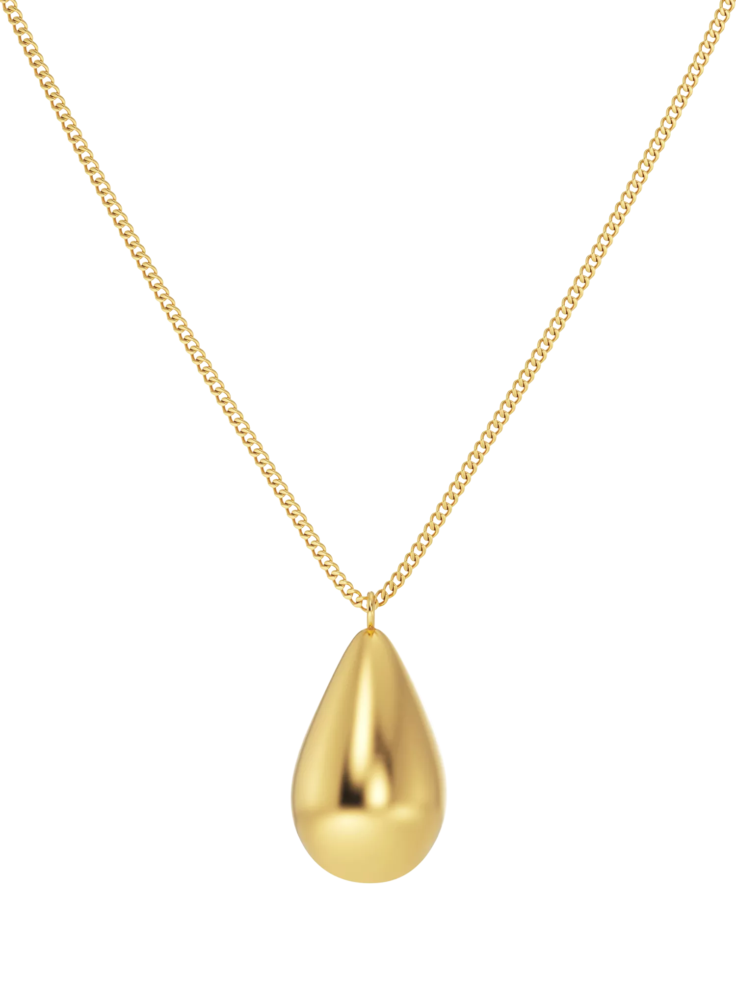 the Drop necklace is a popular Edblad classic and can be seen here with a gorgeous armour chain that holds the droplet in place. It's available in a choice of stainless steel or gold plated steel finishes.