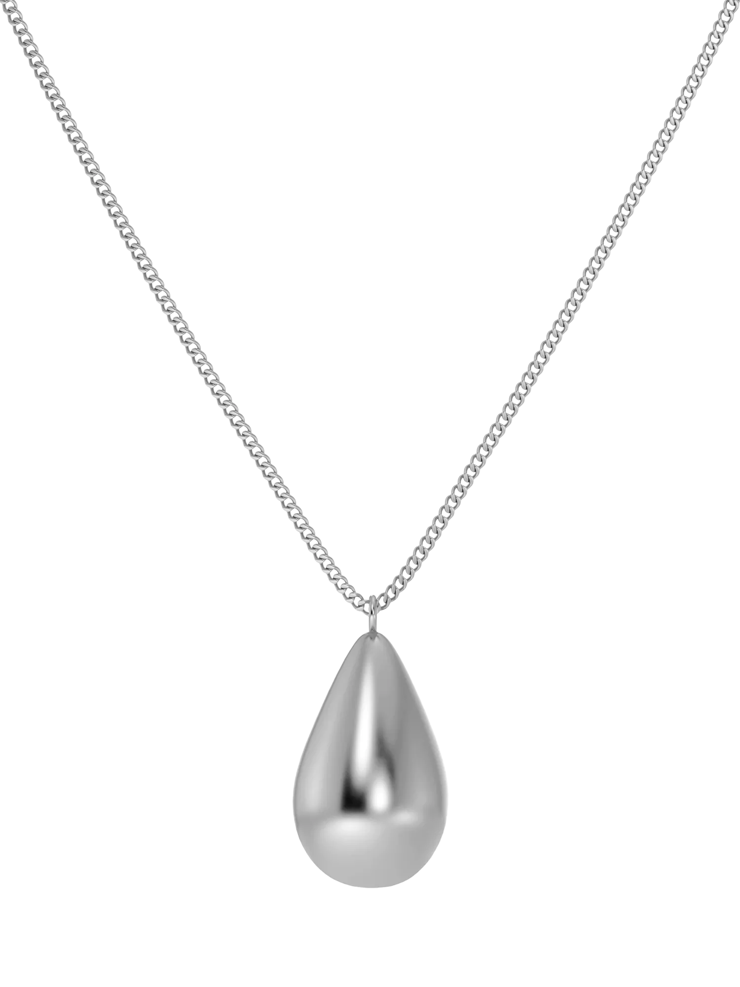 the Drop necklace is a popular Edblad classic and can be seen here with a gorgeous armour chain that holds the droplet in place. It's available in a choice of stainless steel or gold plated steel finishes.