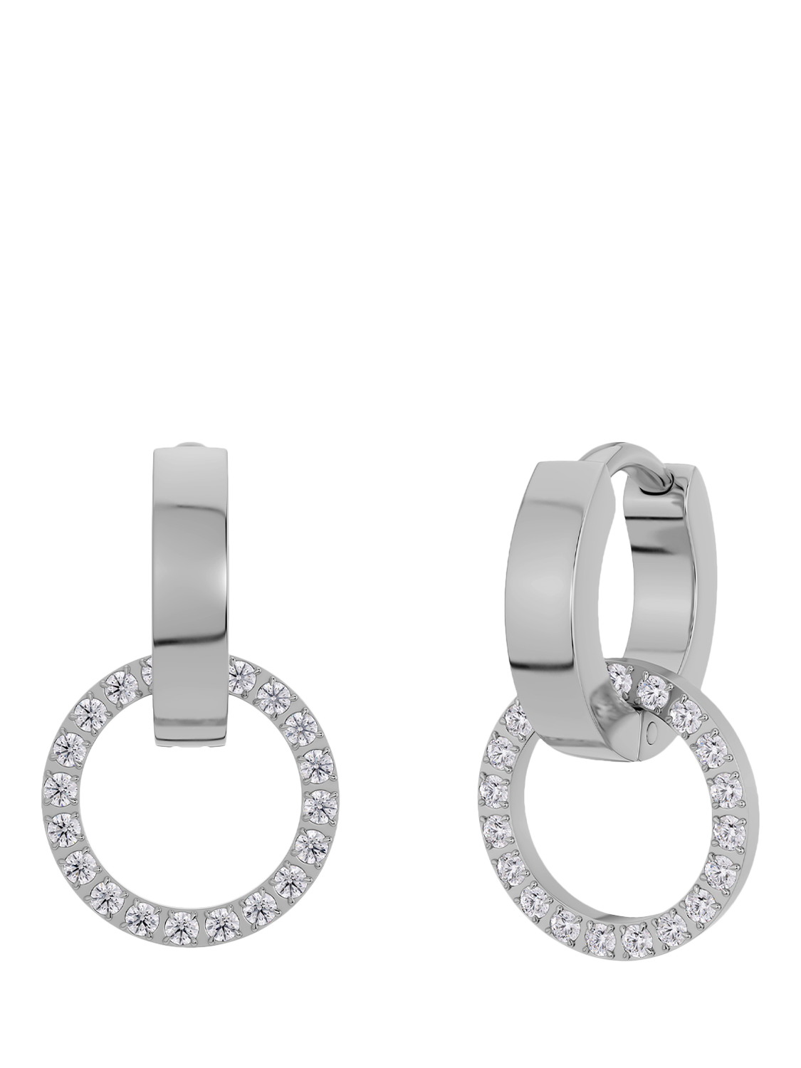 The Eternal Orbit series draws its inspiration from Edblad's classic Eternity series. These beautiful earrings feature a smaller creole that holds a larger ring, with clear stones adorning around the entire outer ring. Wonderfully elegant earrings, they are available in a choice of stainless steel or gold plated steel finishes.