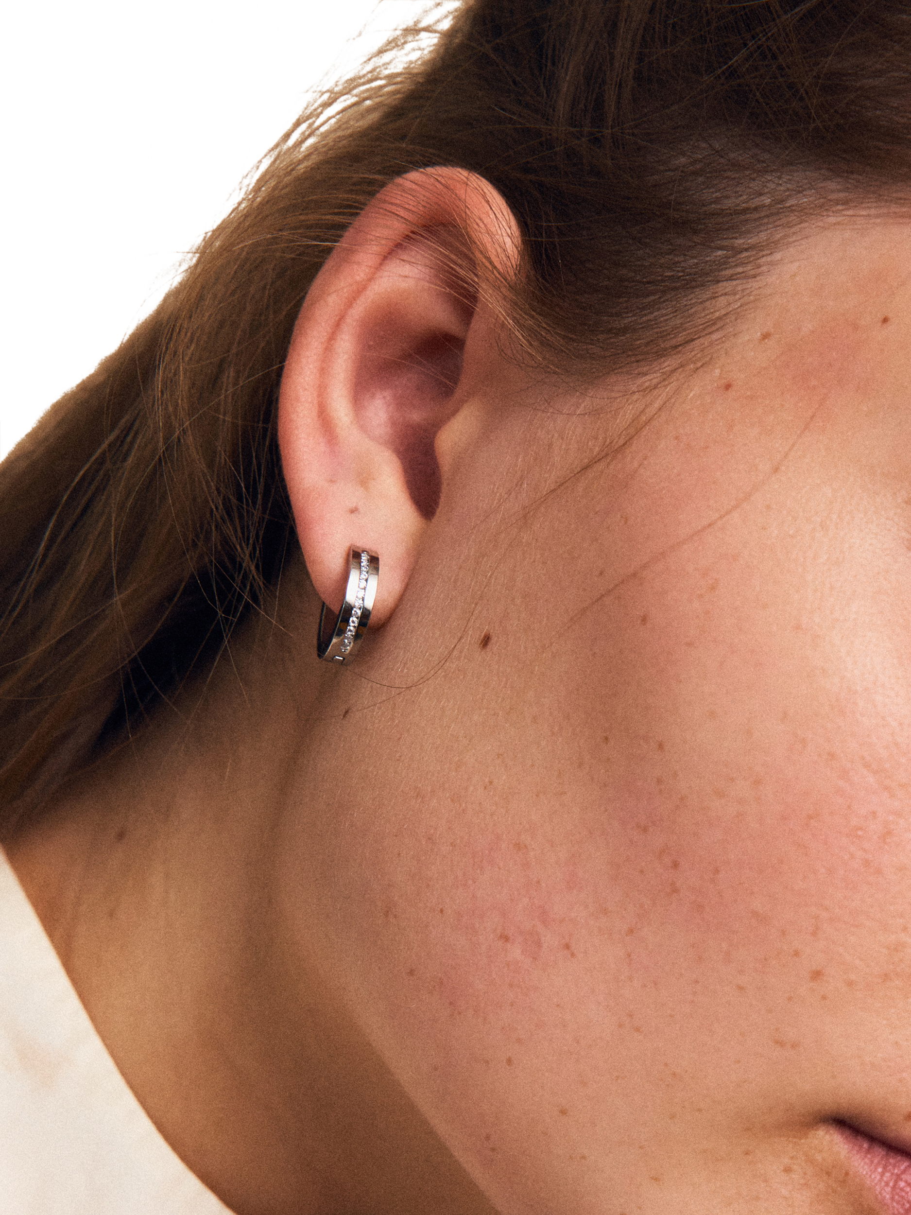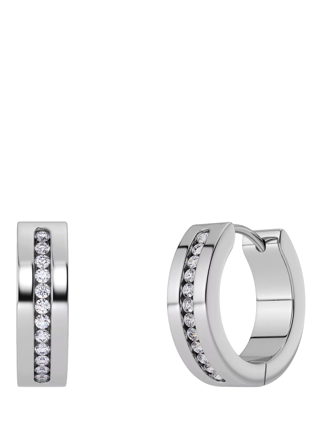 The classic Josefin line hoop features clear stones in a narrow recessed stripe on shiny metal. Josefin hoops are a must-have for any jewellery collection.