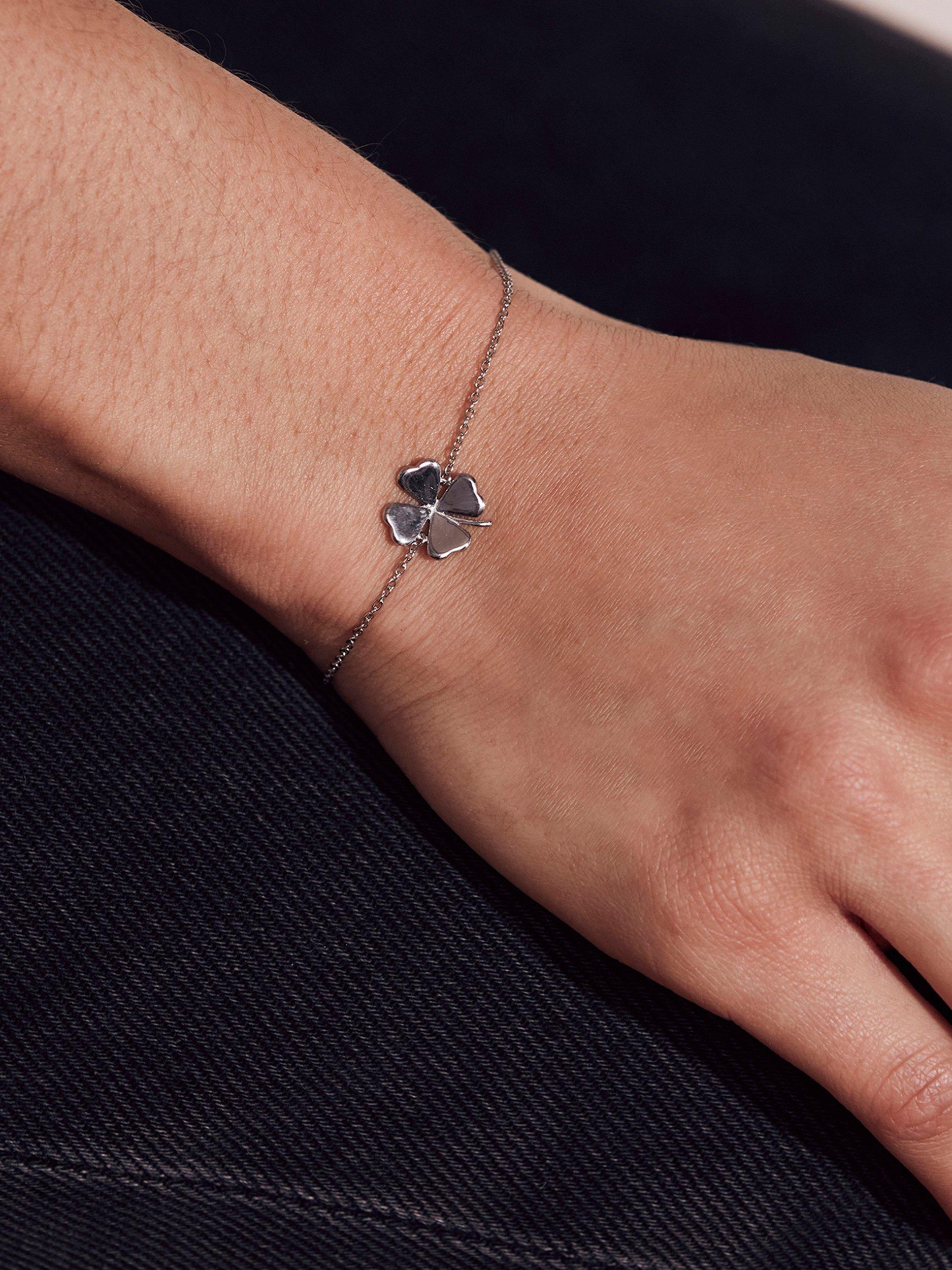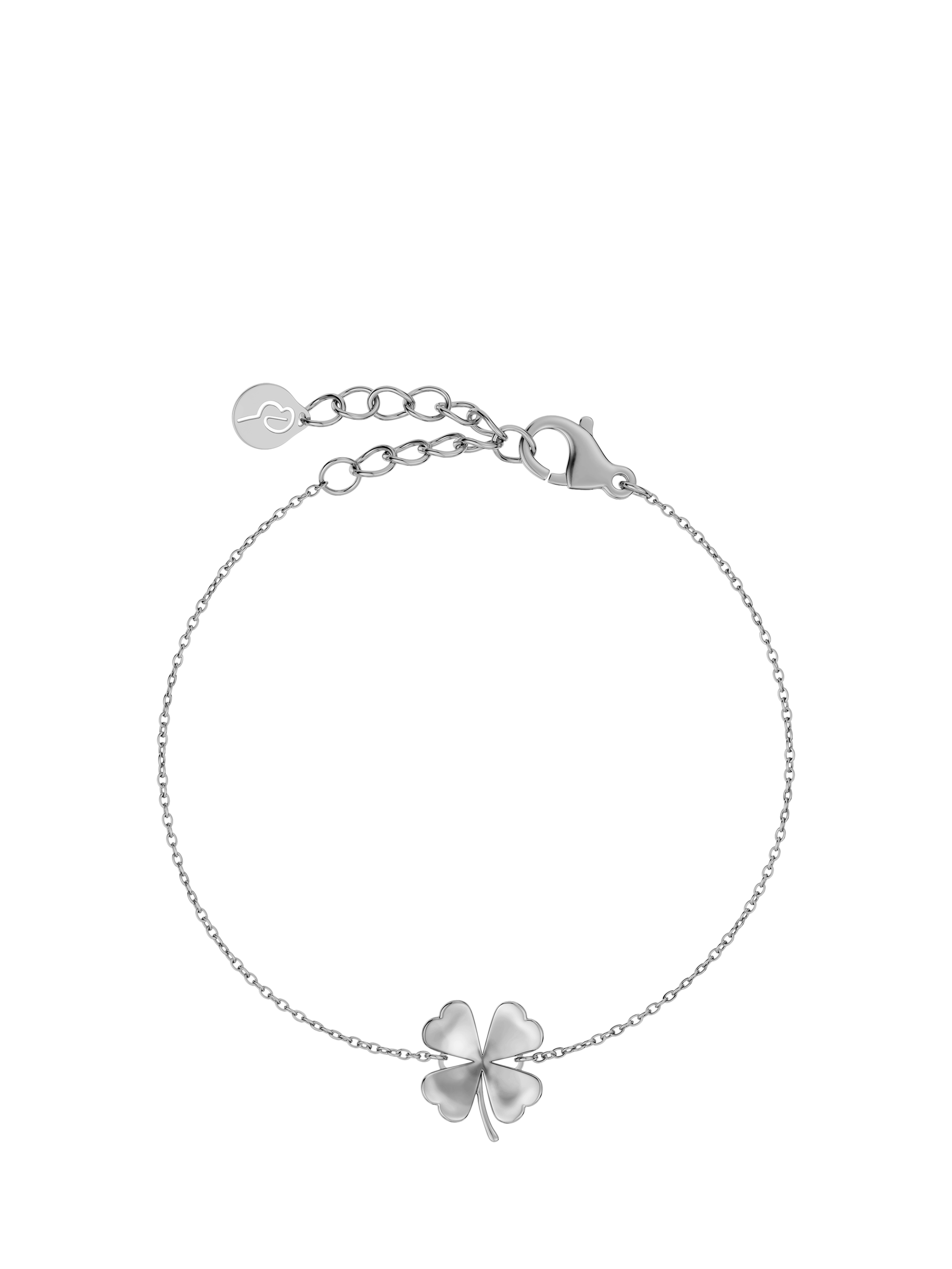 Lucky is a gorgeous four-leaf clover with slightly arched leaves and a small, short stalk. Available in a choice of stainless steel or gold plated steel finishes, this bracelet comes with in extender chain for the perfect fit.
