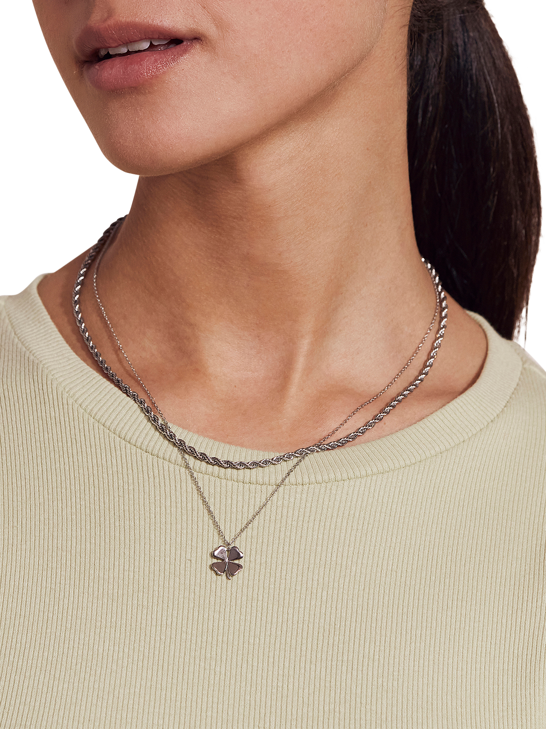 Lucky is a gorgeous four-leaf clover with slightly arched leaves and a small, short stalk. Available in a choice of stainless steel or gold plated steel finishes, this necklace comes with in extender chain for the perfect fit.