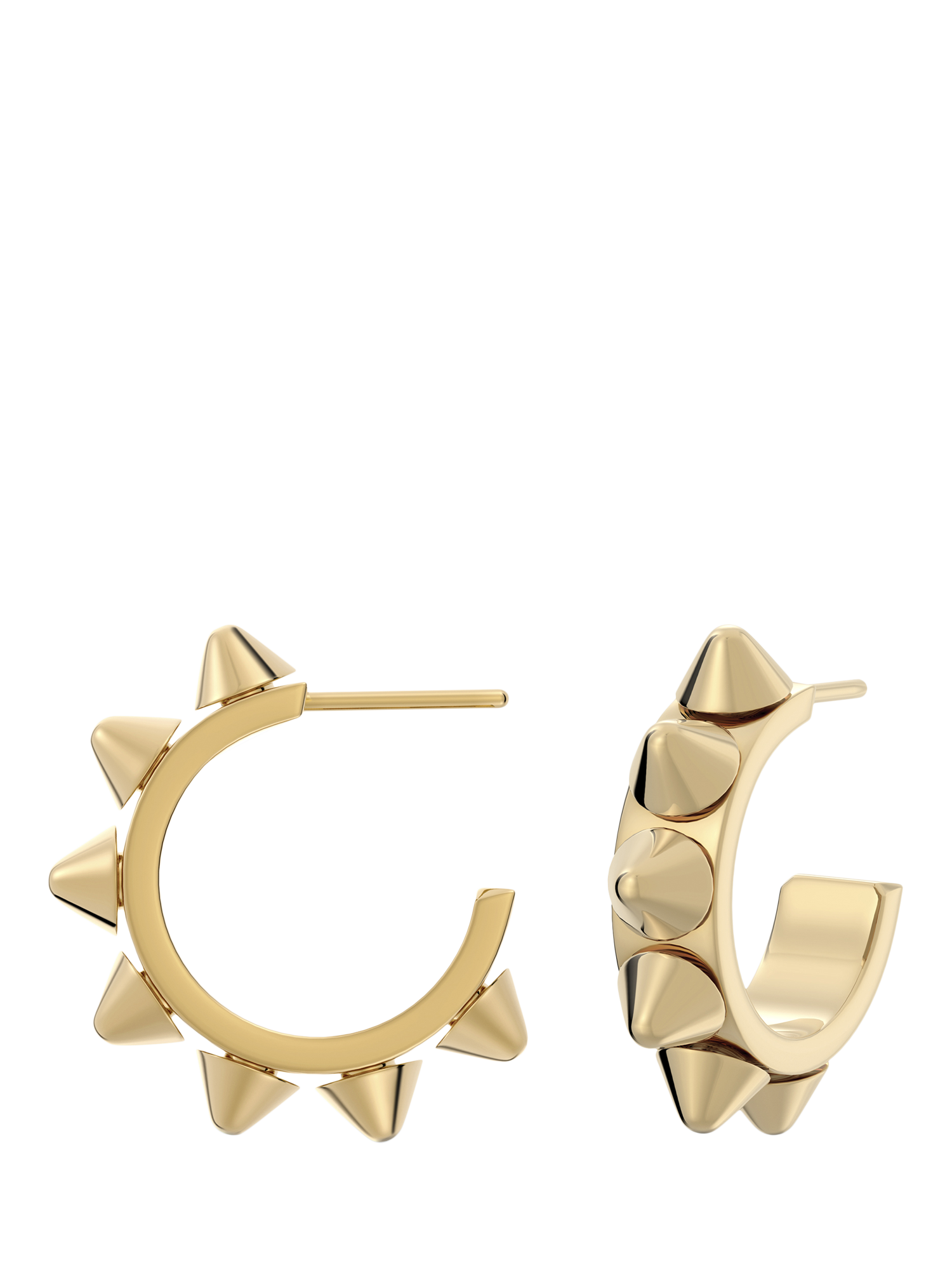 Peak features stylised mountain tops that resemble punk-like spikes. Peak creoles look great on the ear and are available in shiny or gold plated stainless steel.
