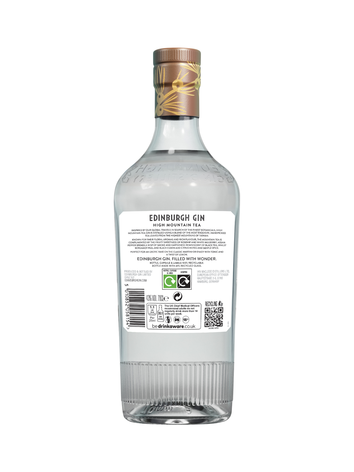 Inspired by their global travels in search of the most wondrous botanicals, Edinburgh Gin High Mountain Tea is a premium gin distilled from a blend of High Mountain Tea leaves, hand-picked from the mountains of Central Taiwan.