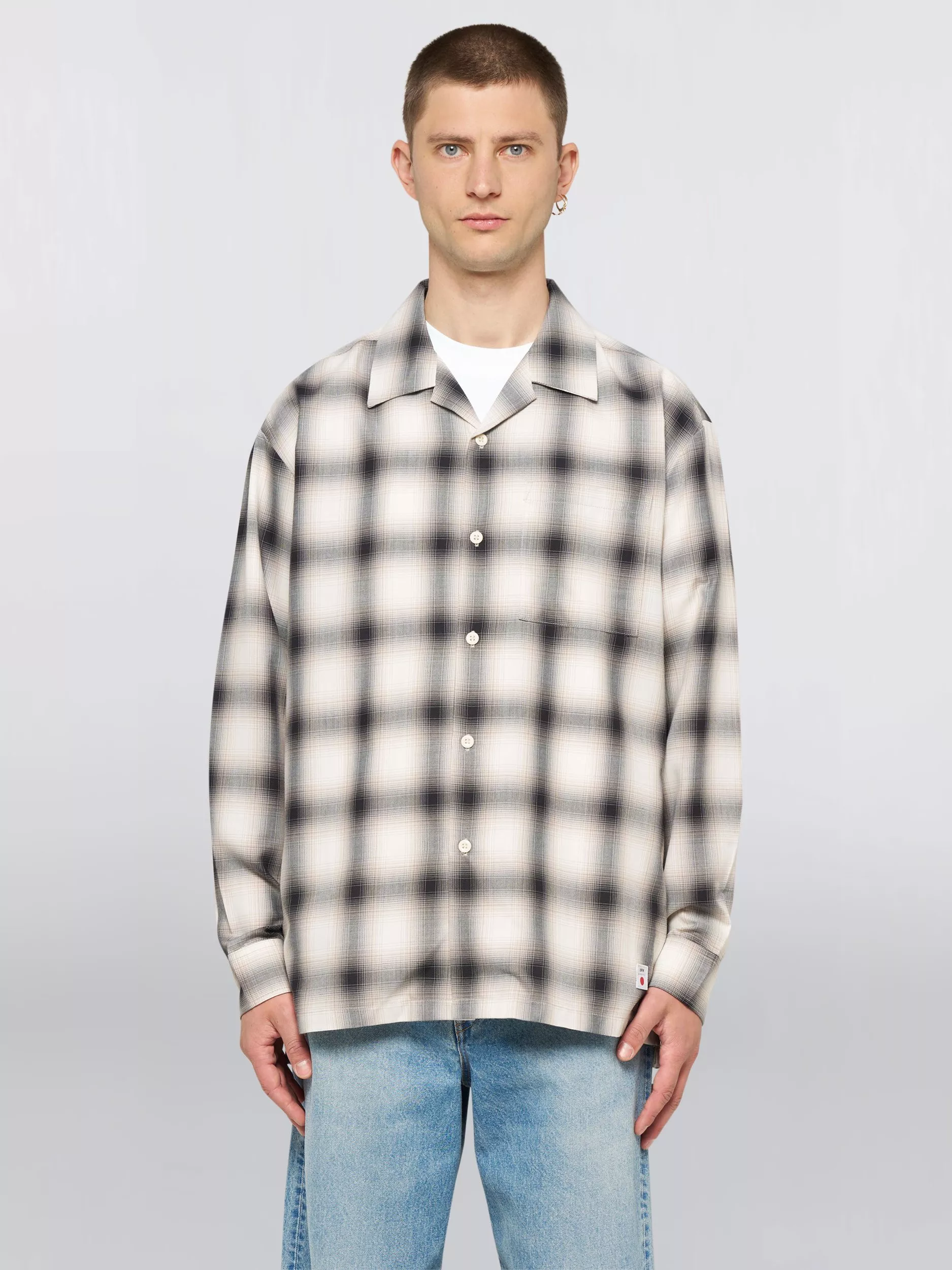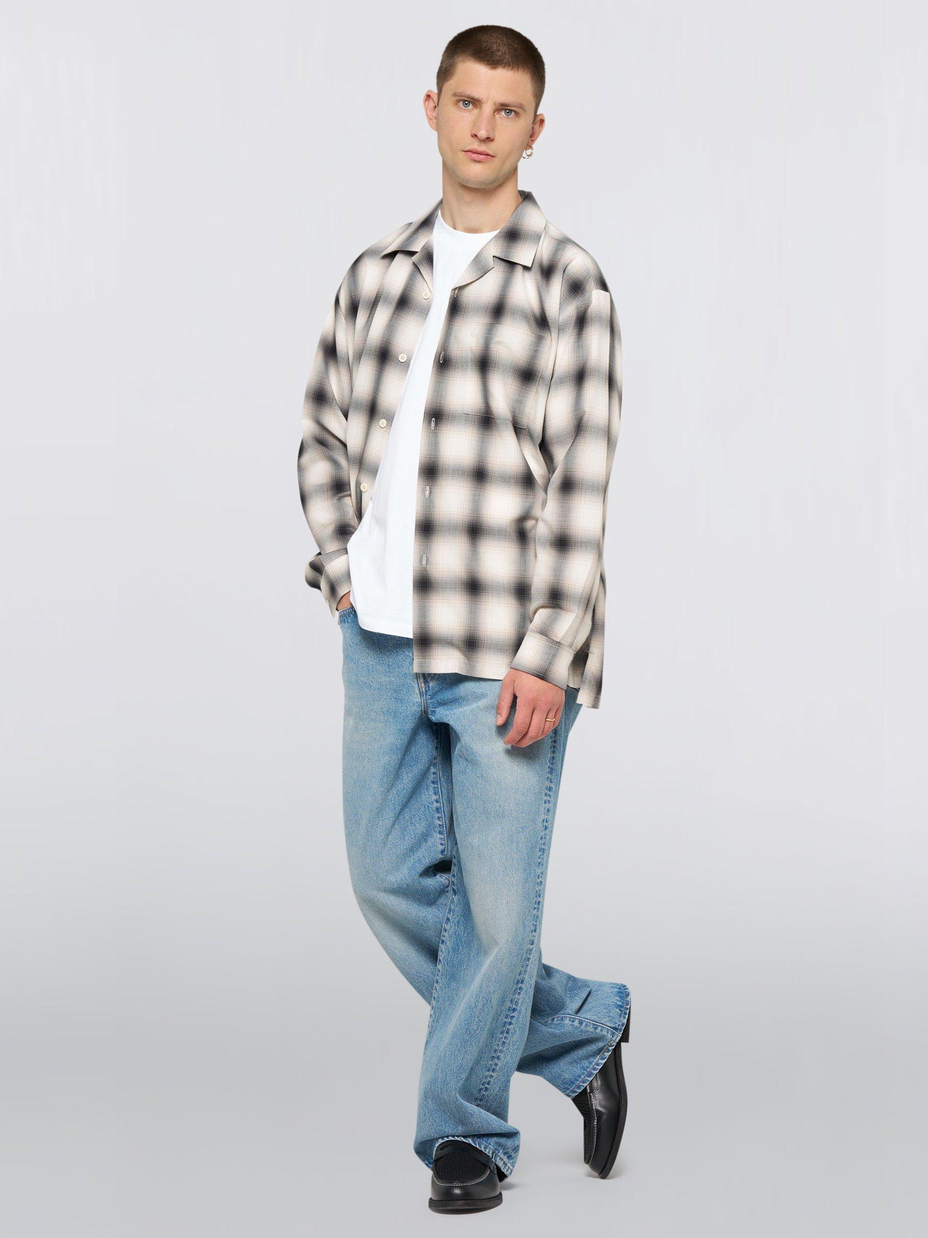 A relaxed fit open collar shirt in a smart casual check pattern.