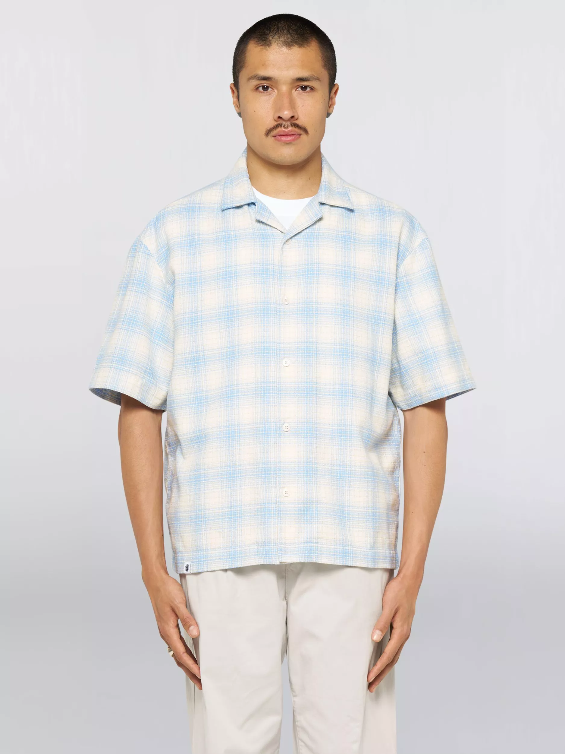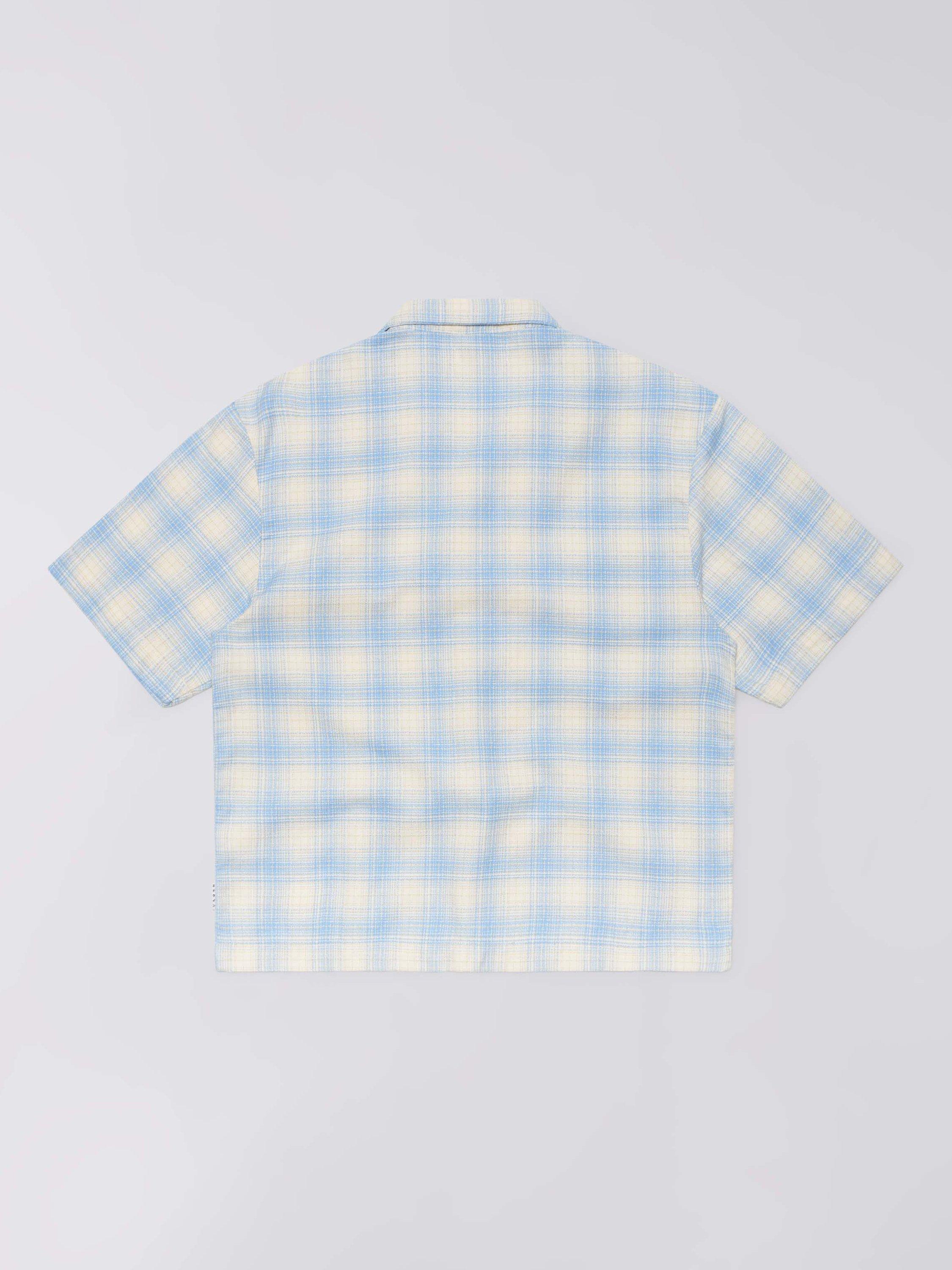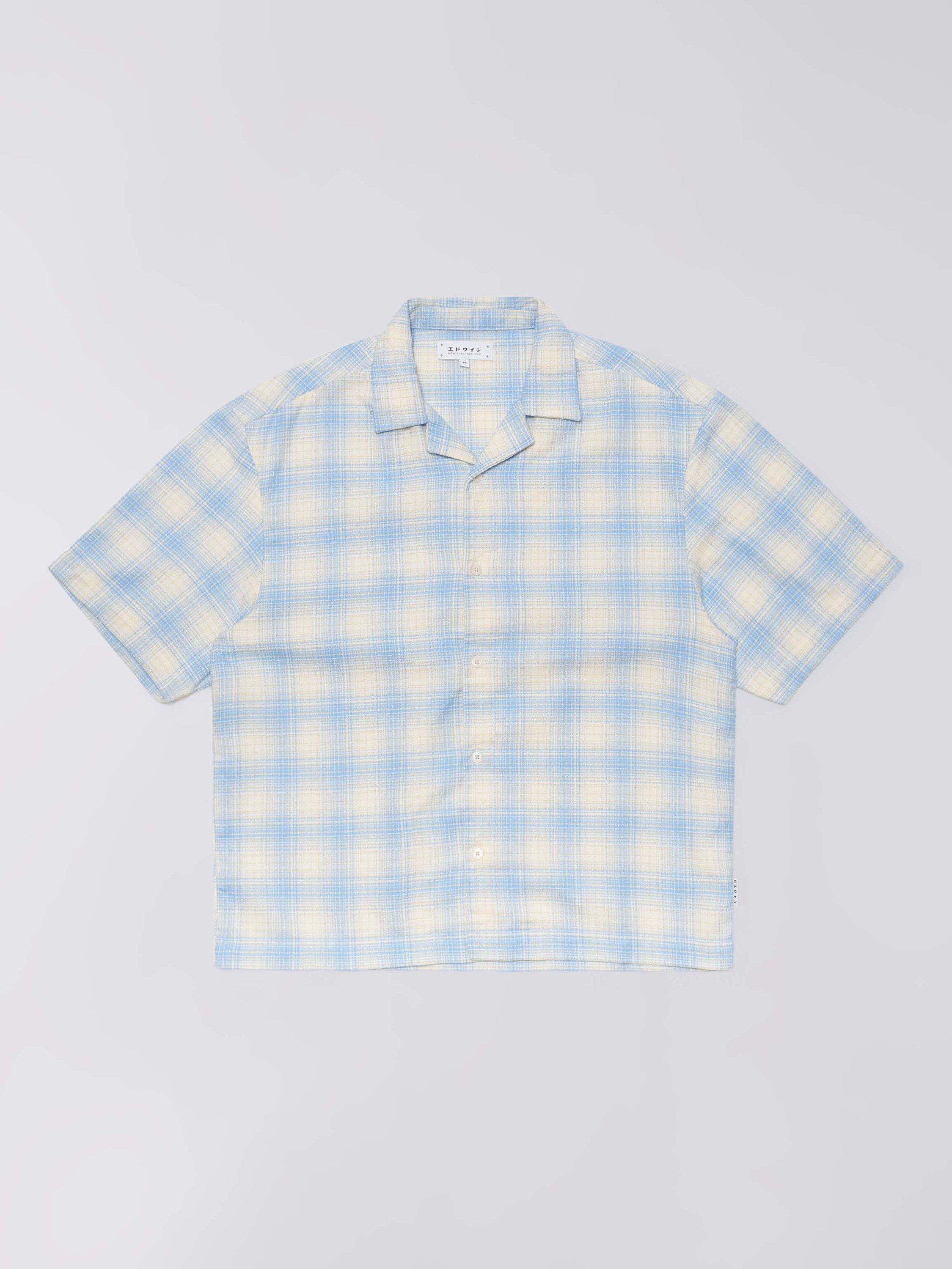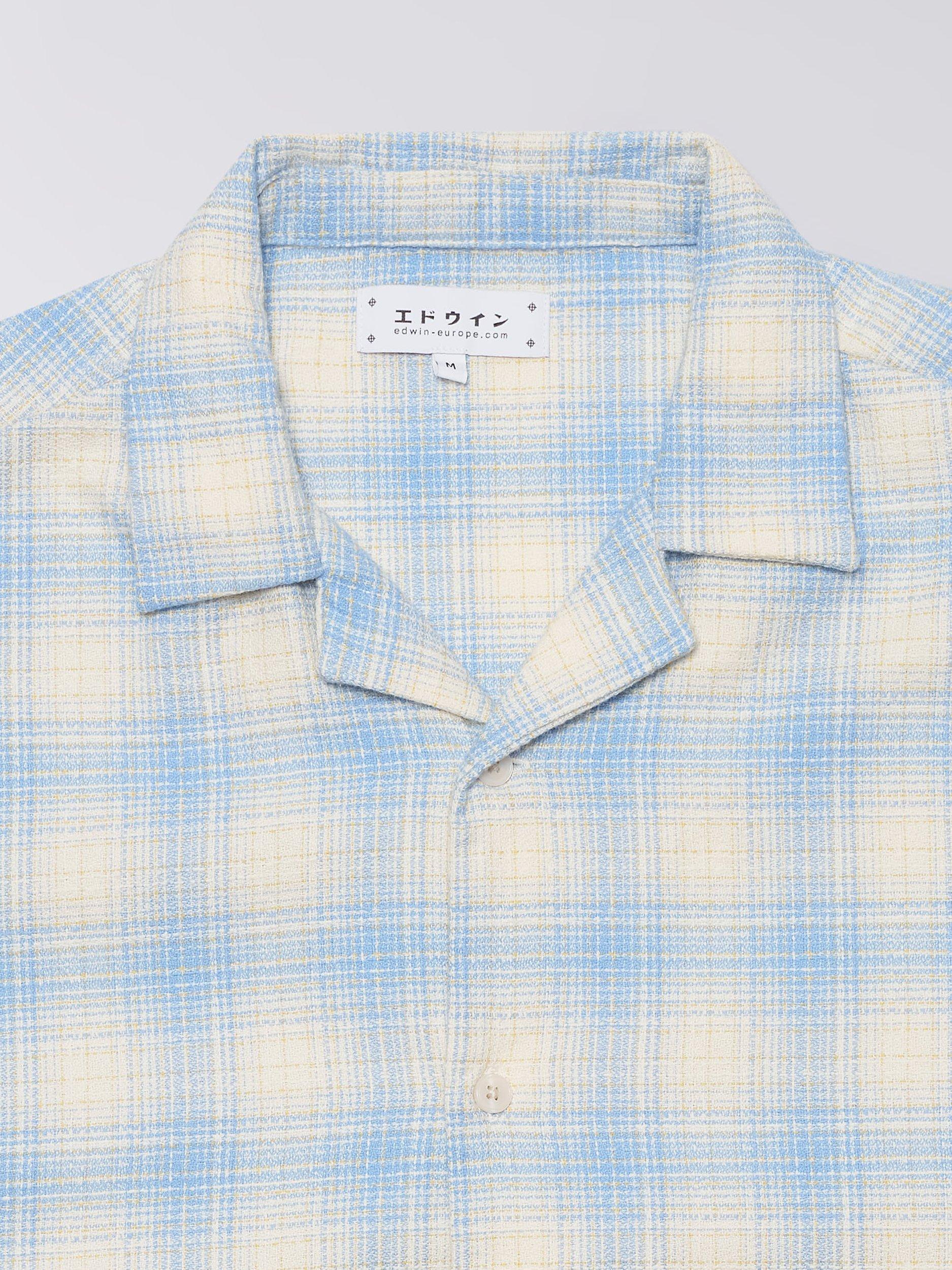 Edwin's open collar Saga shirt is crafted from soft textured cotton, and finished with a subtle soft check design.