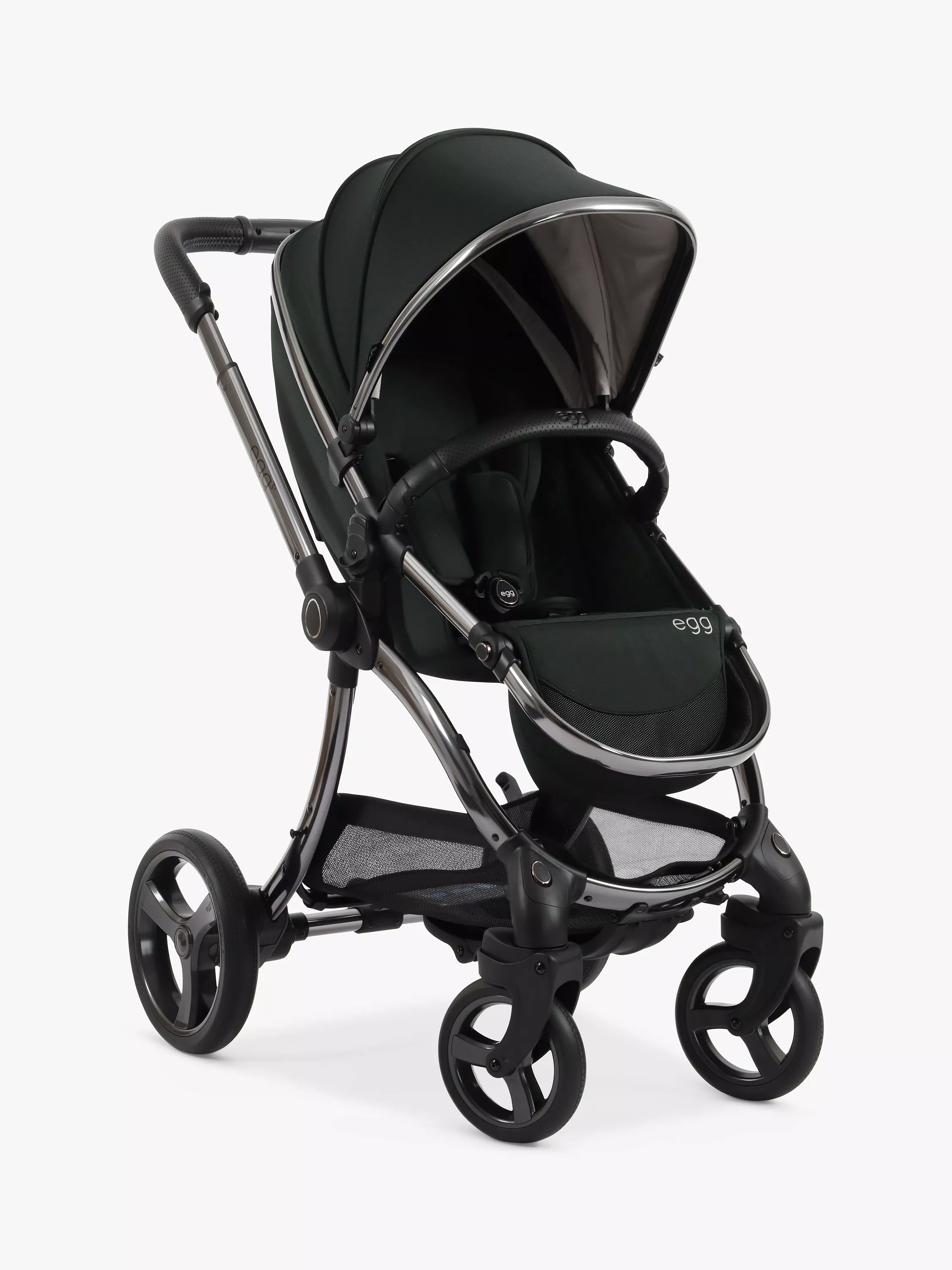 Featuring a 'one-hand fold' the egg3® chassis is compact when folded and free-stands, with the handle clear from the ground.